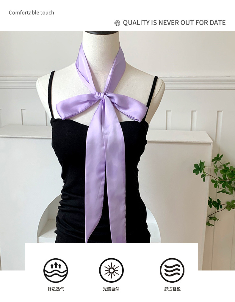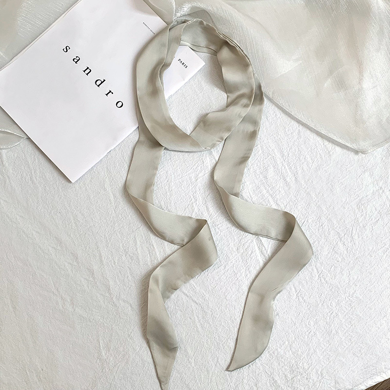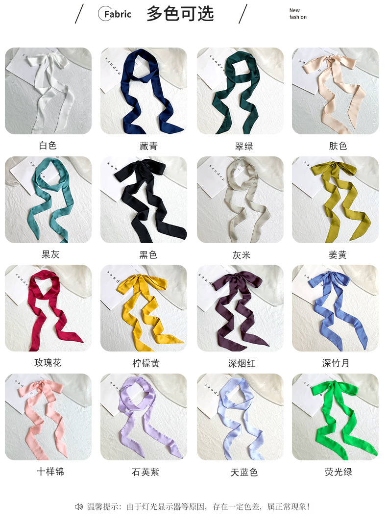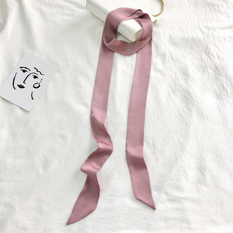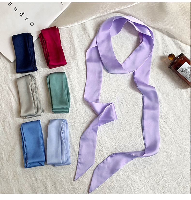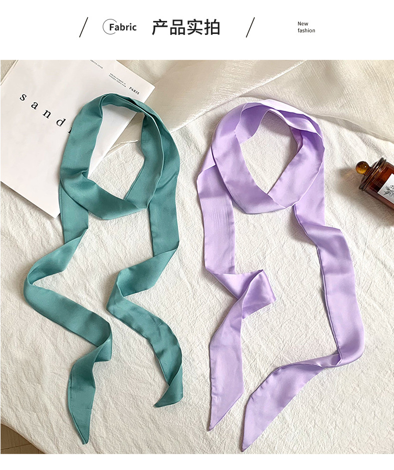 긴 실크 스카프, 고급스러운 새로운 스타일, 캔디 컬러, 단색, 얇고 좁은 다용도 스카프, 장식용 머리띠, 리본, 가방 묶음 리본
