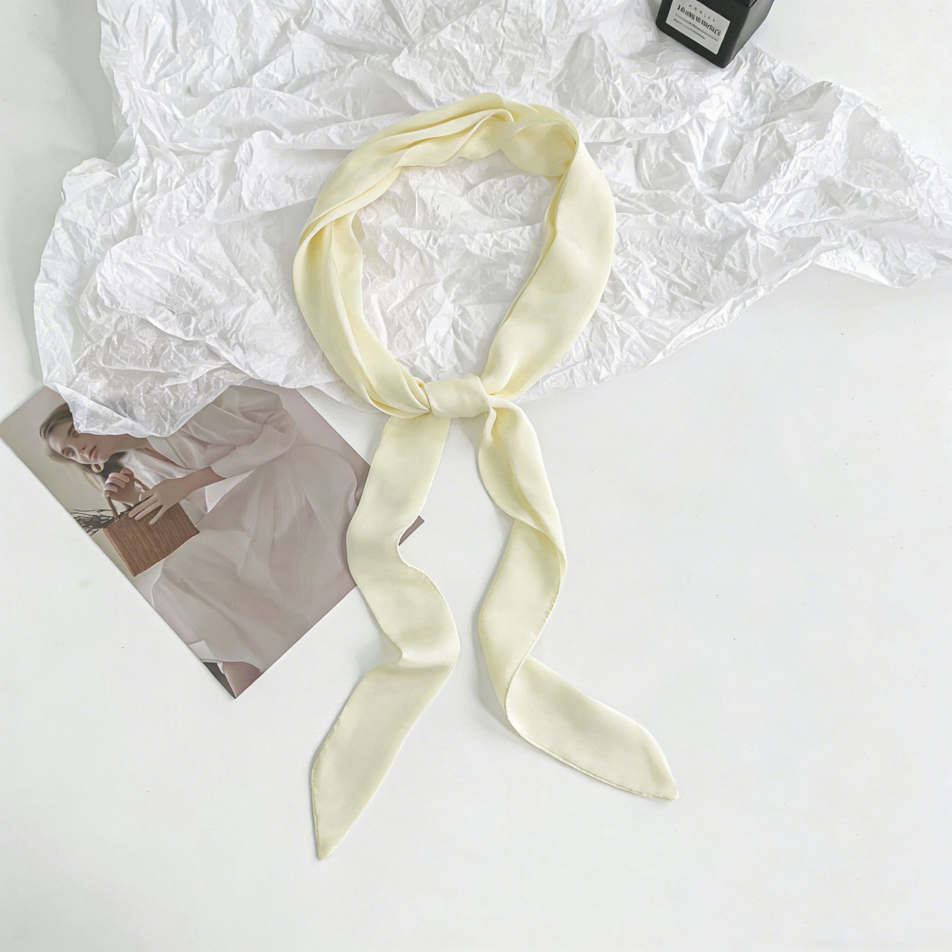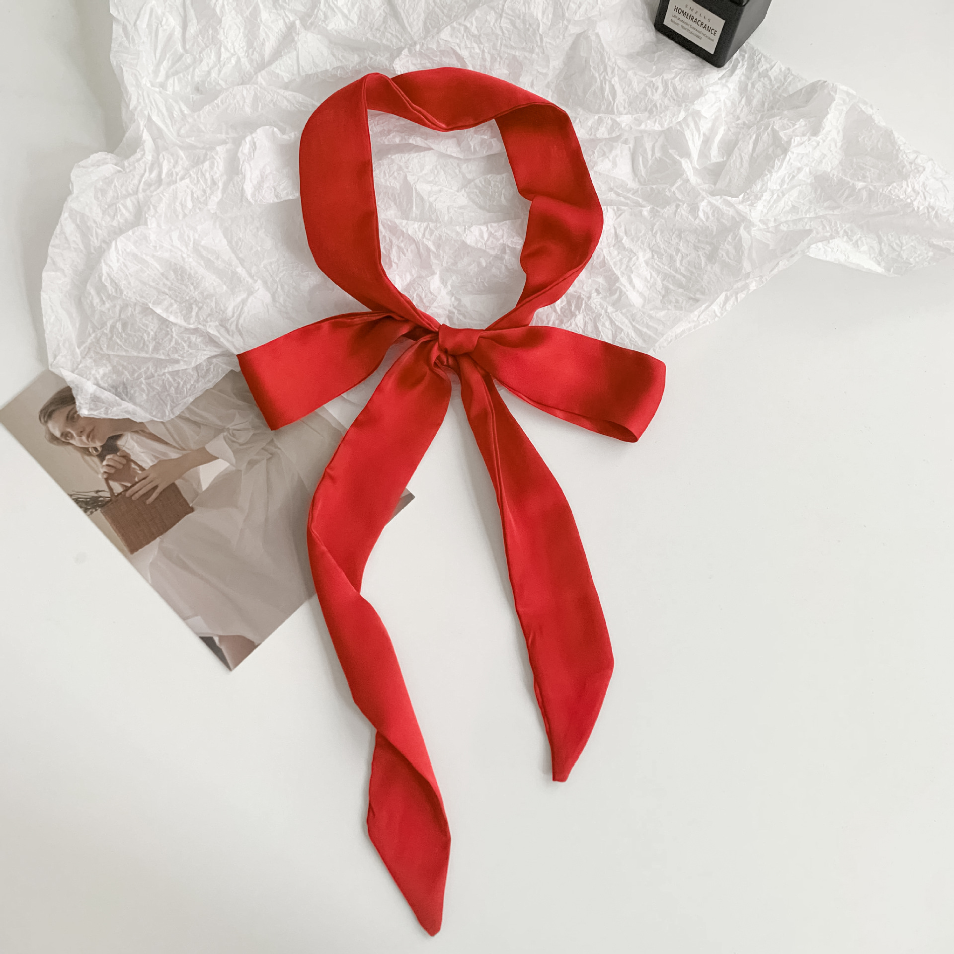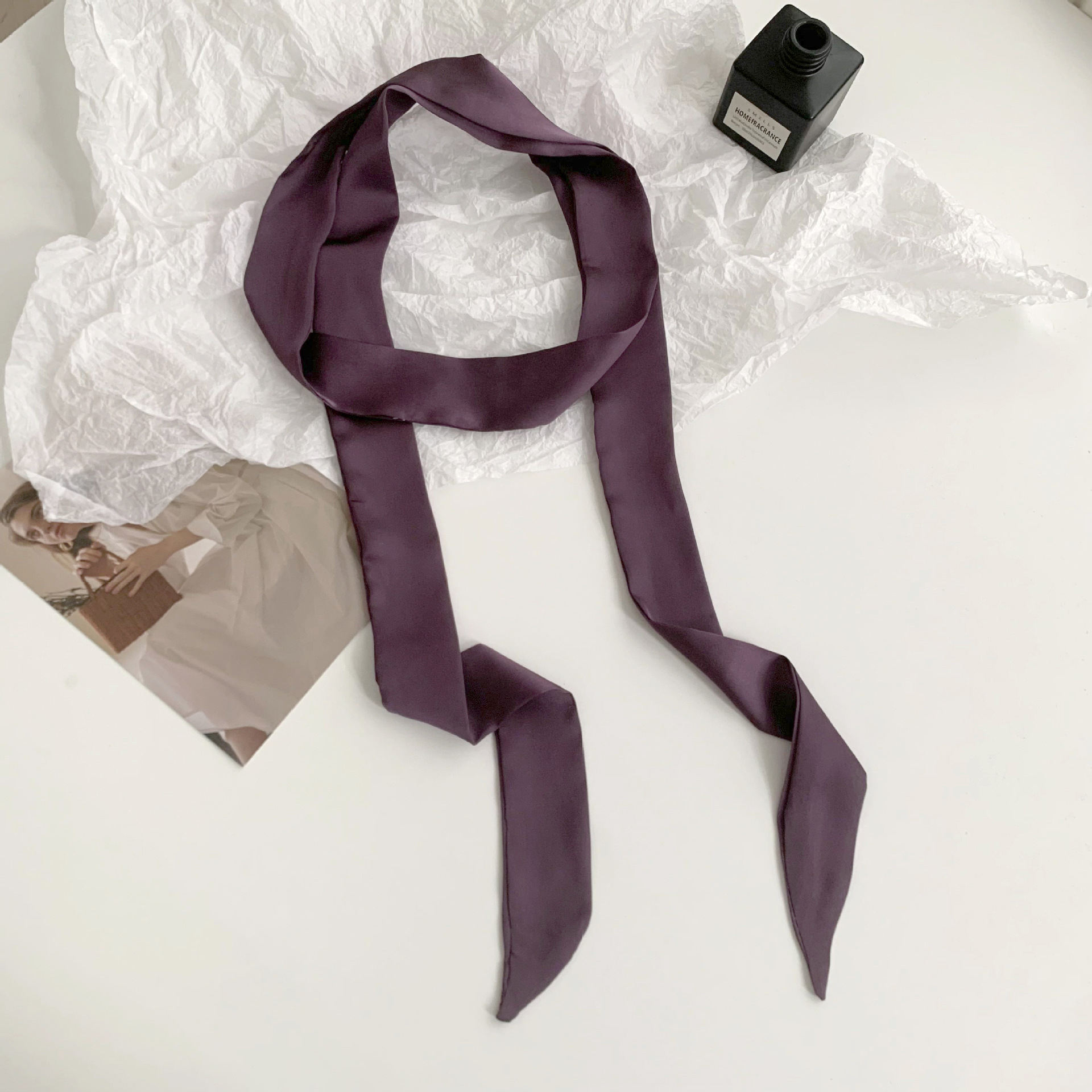 긴 실크 스카프, 고급스러운 새로운 스타일, 캔디 컬러, 단색, 얇고 좁은 다용도 스카프, 장식용 머리띠, 리본, 가방 묶음 리본