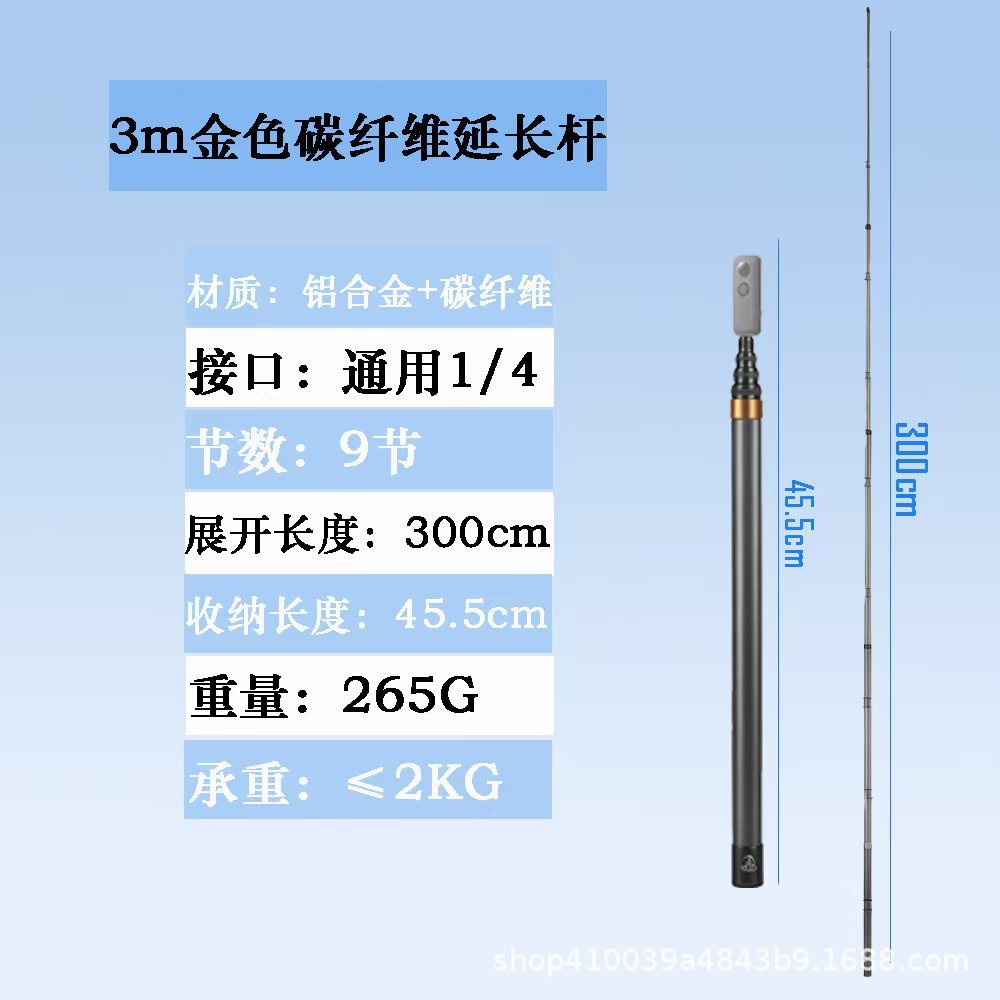 • 골든 9섹션 3m 탄소섬유 텔레스코픽 폴