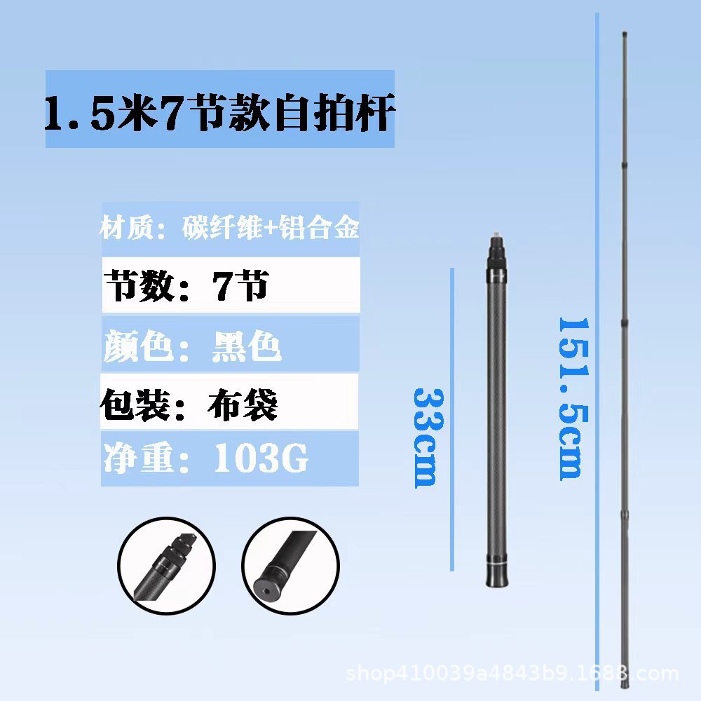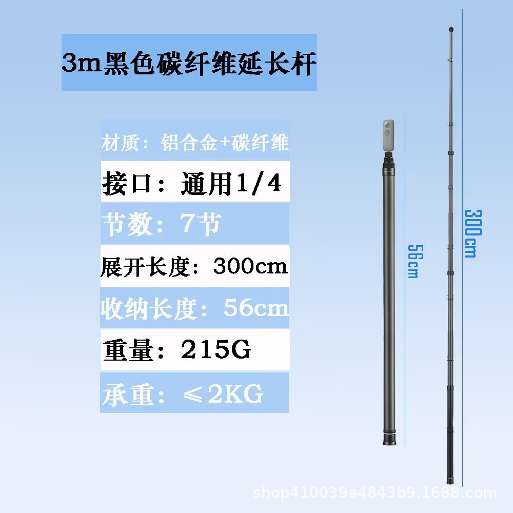 • 검정색 7섹션 3m 탄소 섬유 텔레스코픽 폴