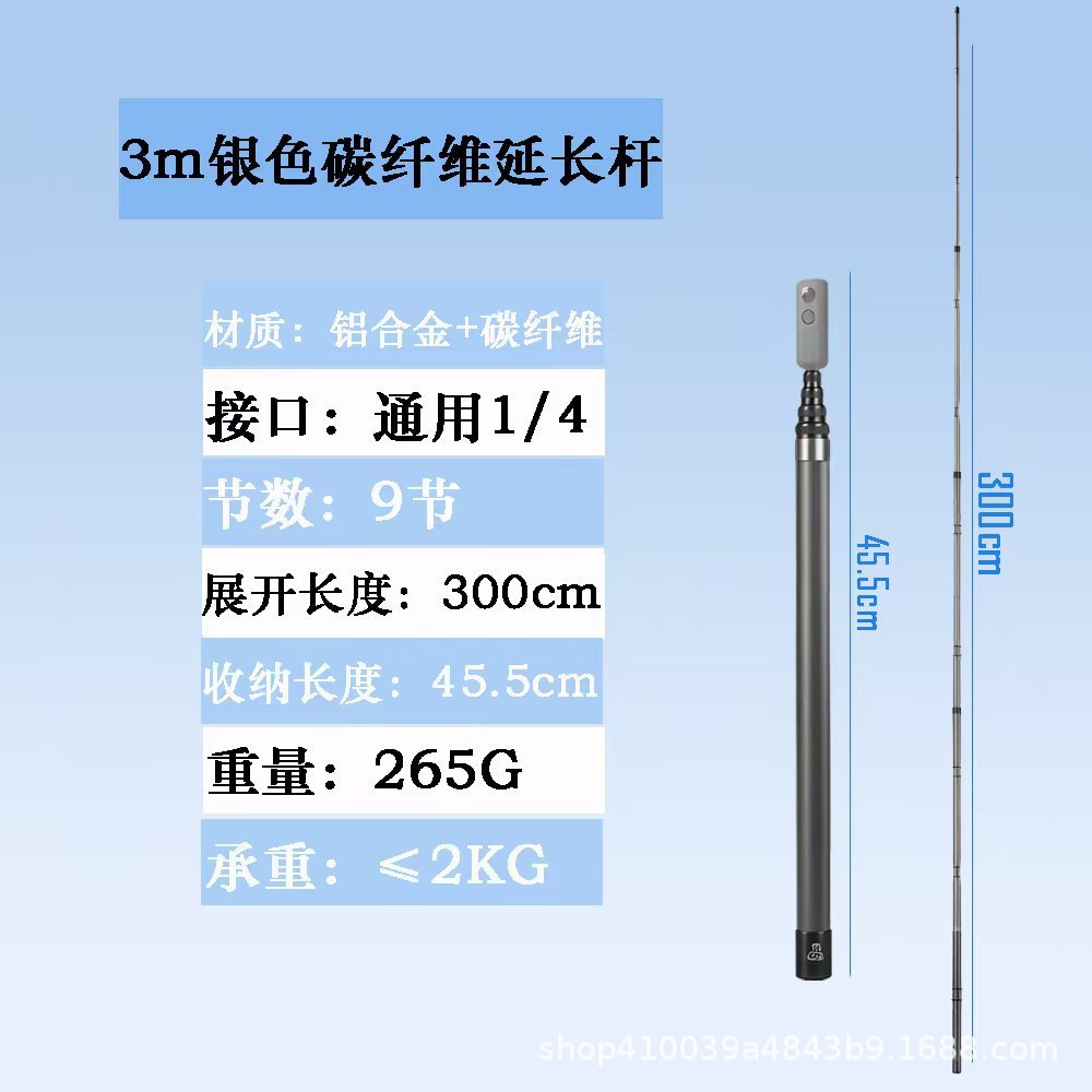 • 실버 9섹션 3m 탄소 섬유 텔레스코픽 폴