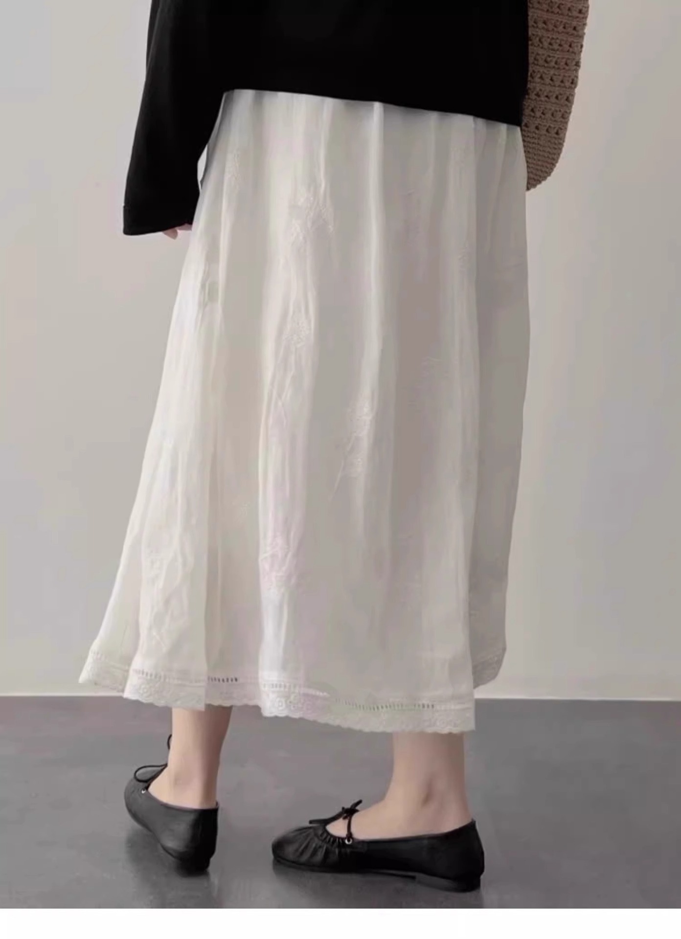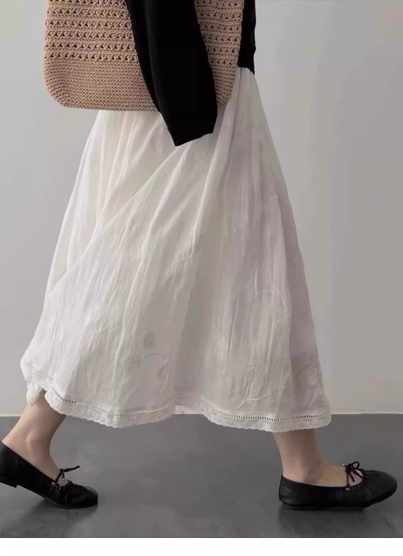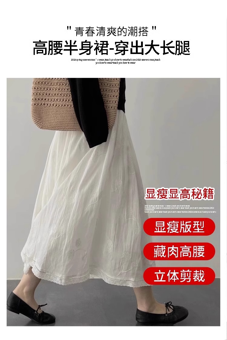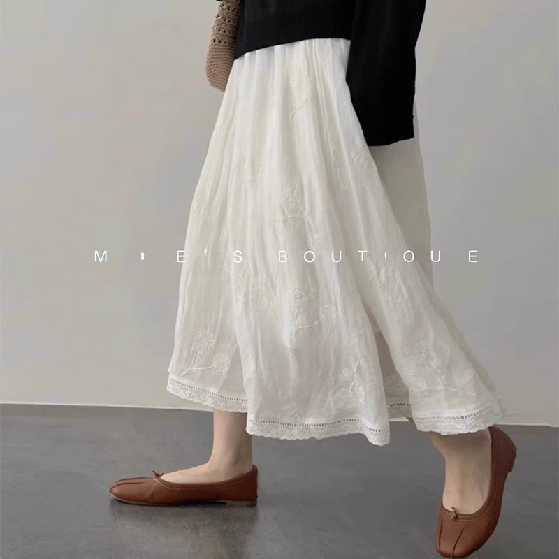 여성을 위한 화이트 레이스 스커트 봄 신상품 배꼽을 커버하고 날씬해 보이는 A라인 대형 펜치 스커트 롱 스커트스토어 가기