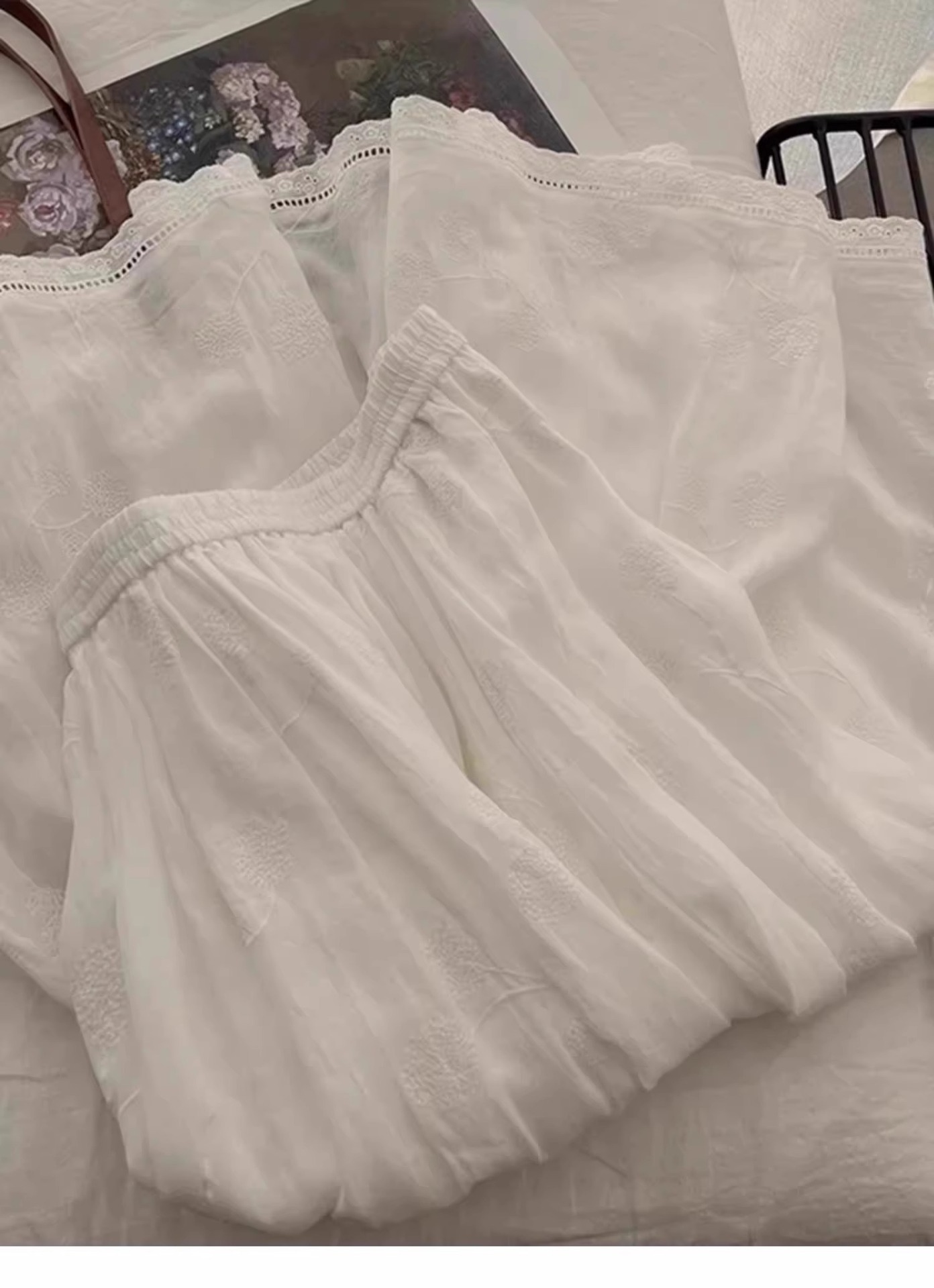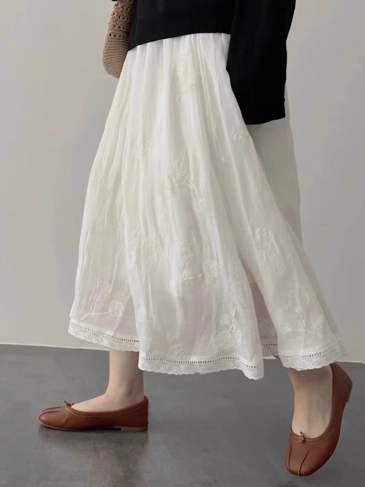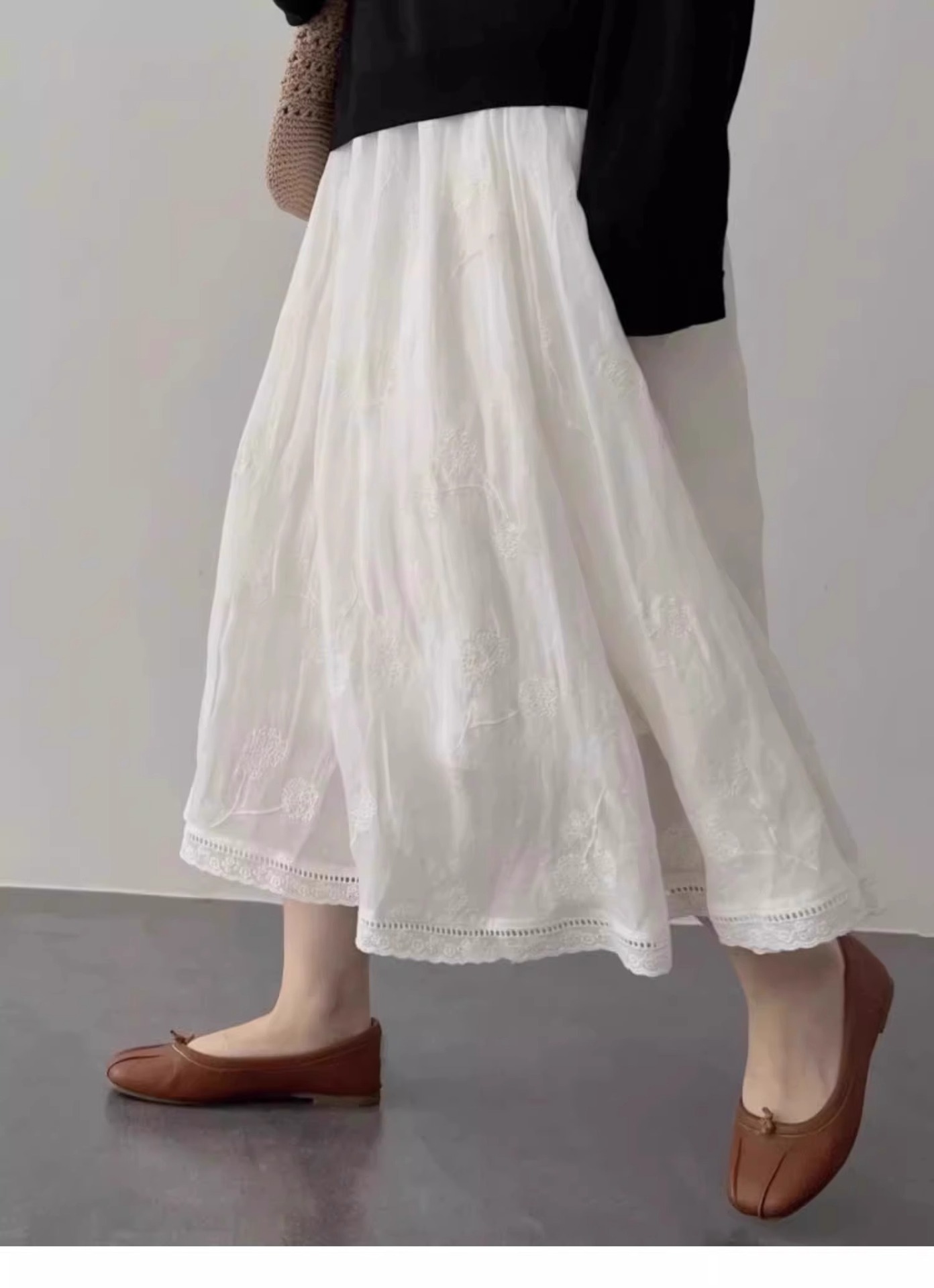 여성을 위한 화이트 레이스 스커트 봄 신상품 배꼽을 커버하고 날씬해 보이는 A라인 대형 펜치 스커트 롱 스커트스토어 가기