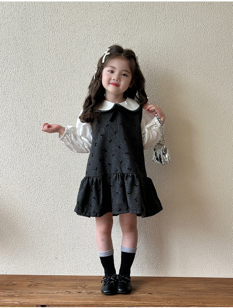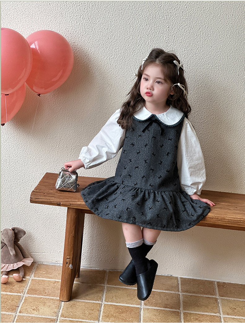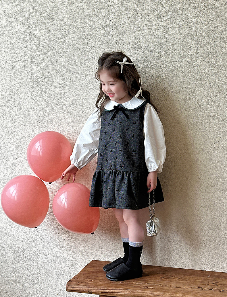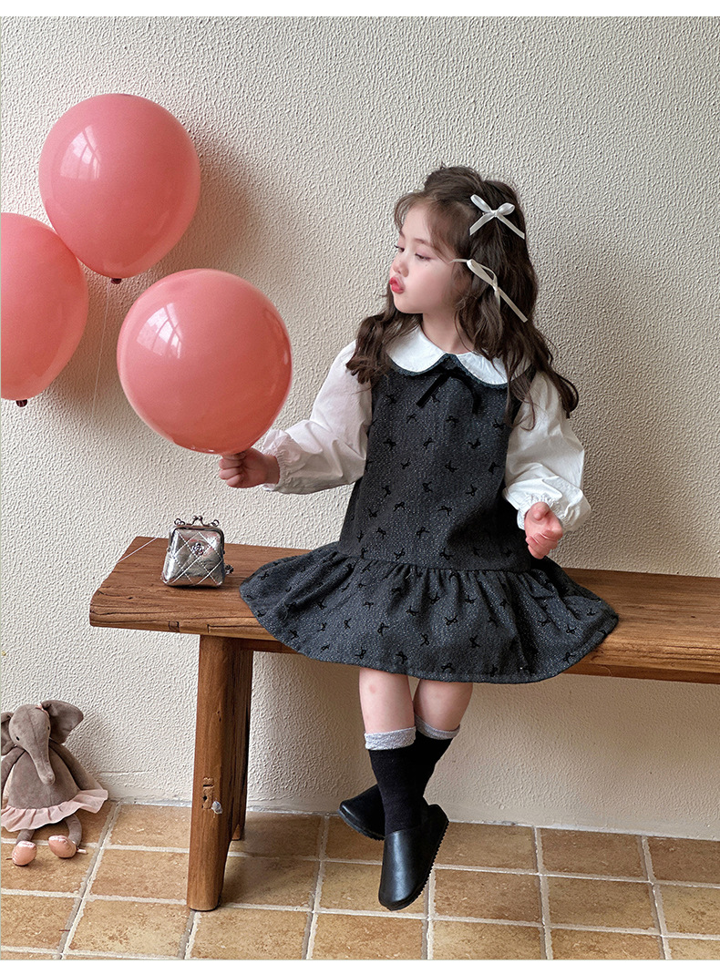 여자 봄, 가을 조끼 스커트 2025 새로운 어린이 달콤한 인형 셔츠 아기 소녀 가을 서스펜더 드레스스토어 가기