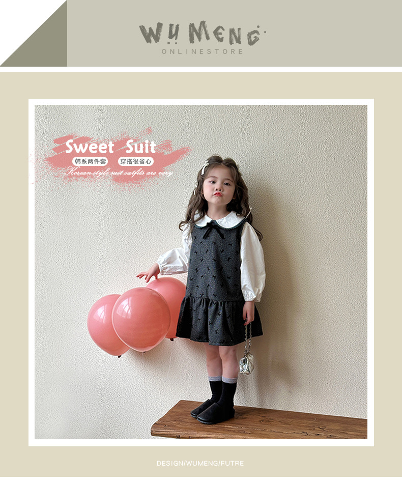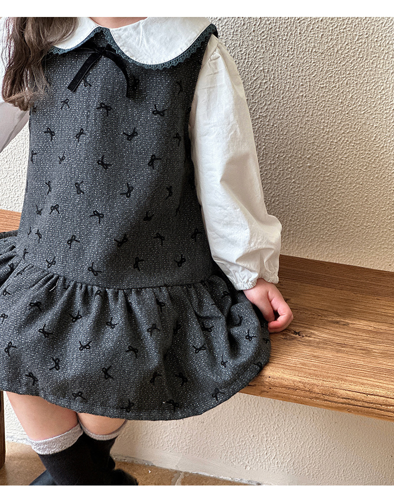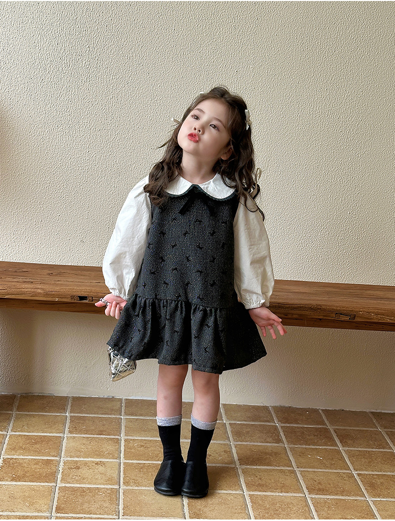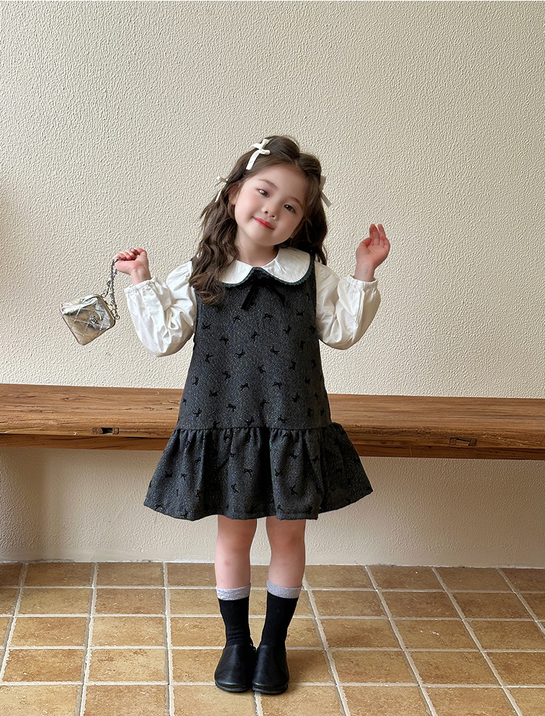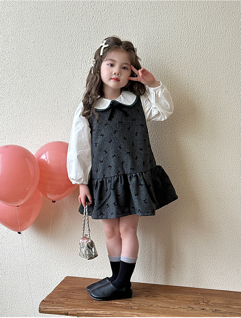 여자 봄, 가을 조끼 스커트 2025 새로운 어린이 달콤한 인형 셔츠 아기 소녀 가을 서스펜더 드레스스토어 가기