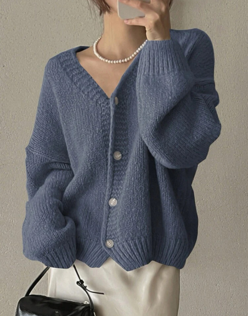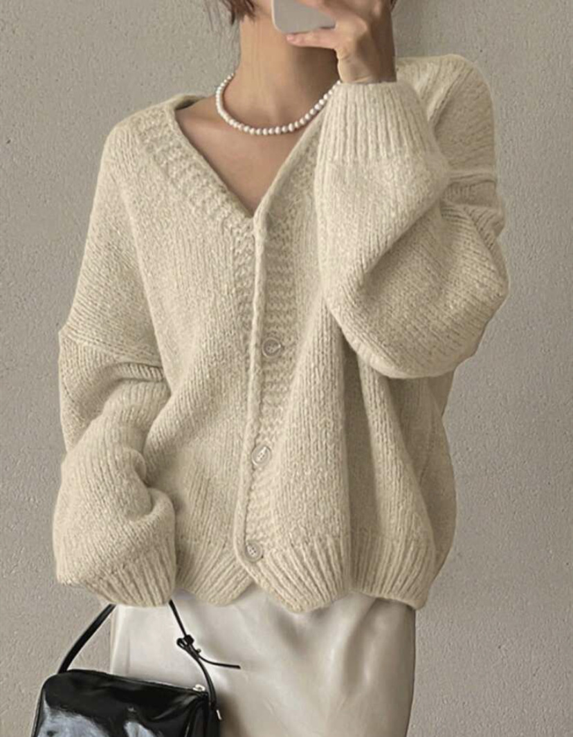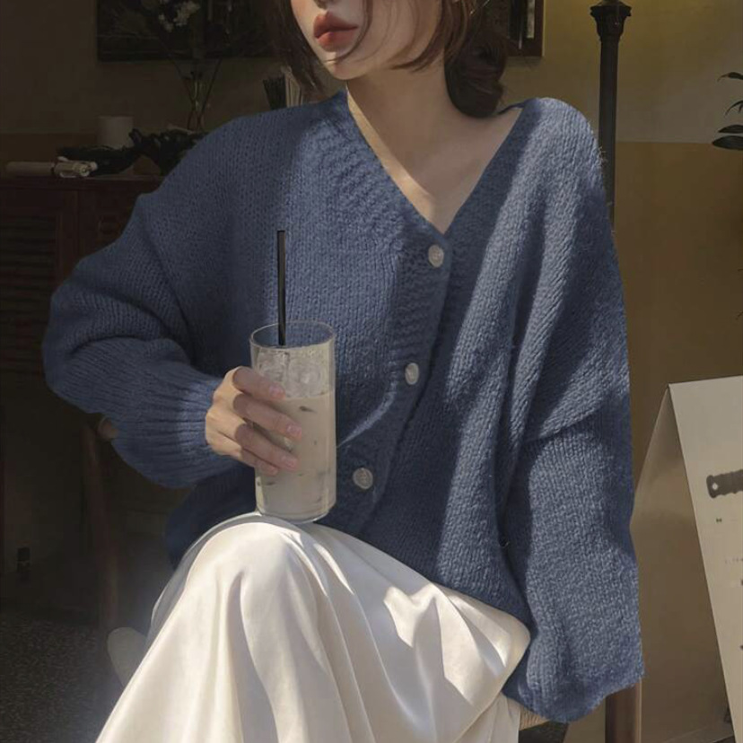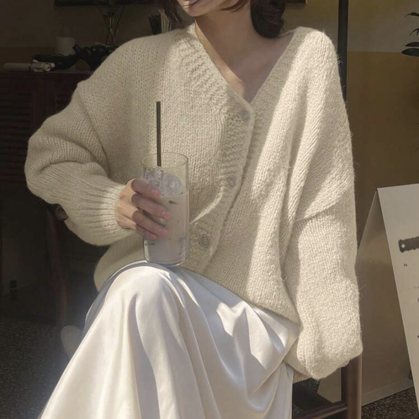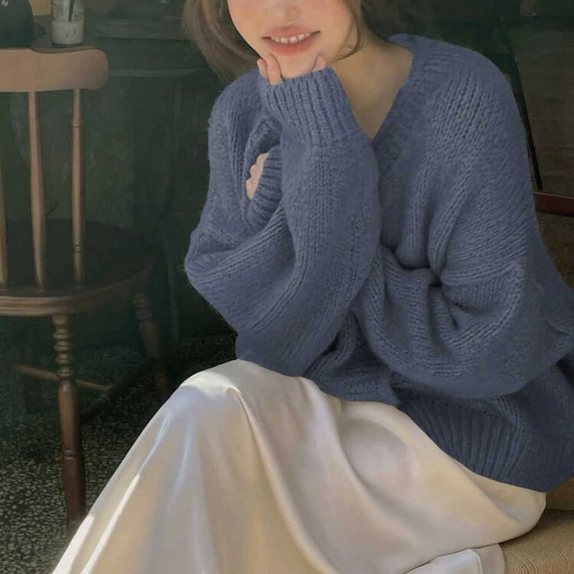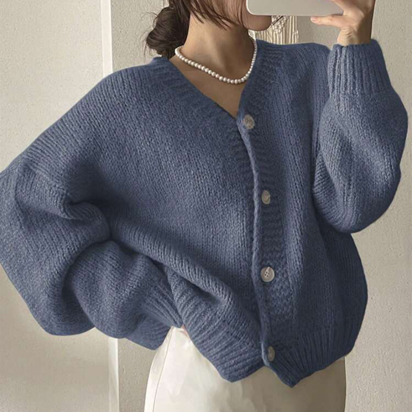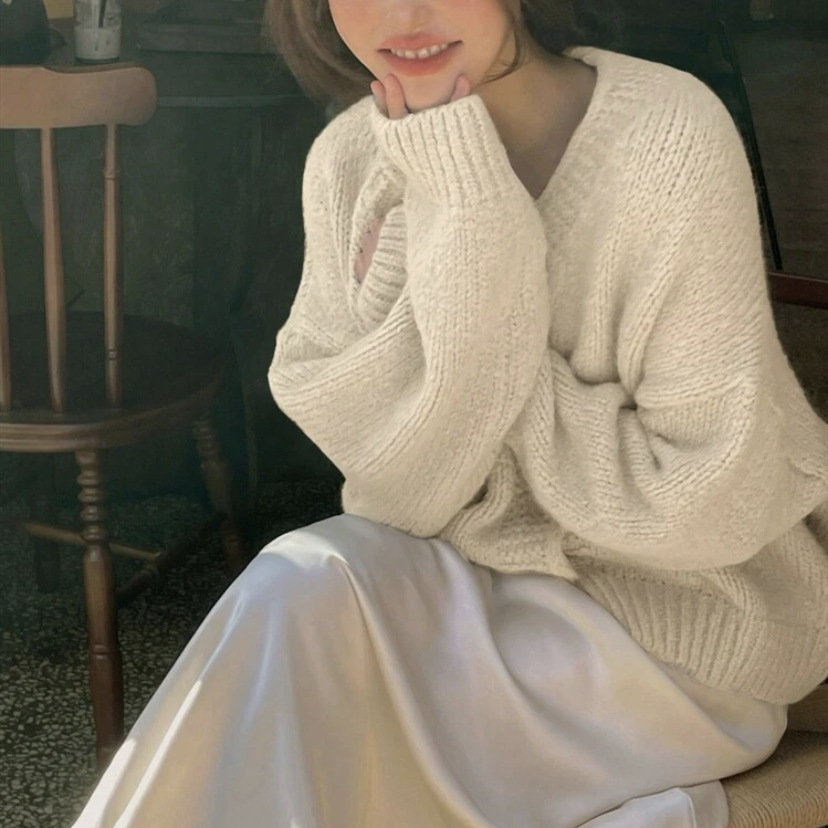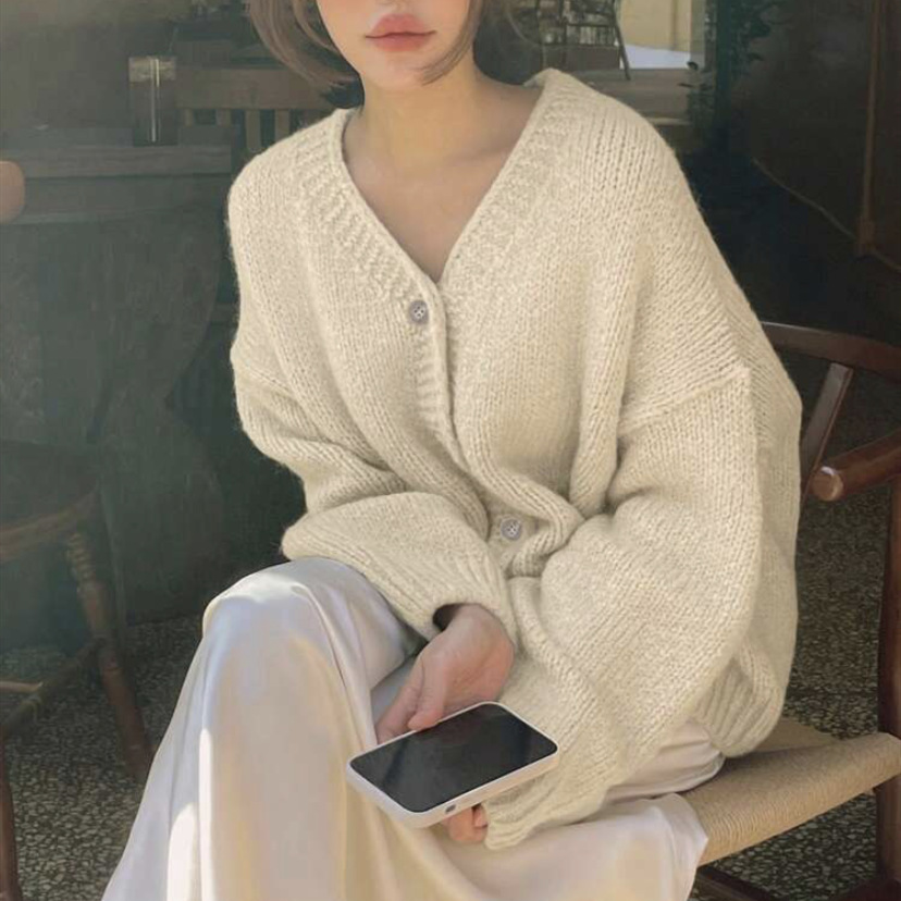 여성을위한 니트 카디건 2025 가을, 겨울 새로운 캐주얼 루즈 v 넥 랜턴 슬리브 스웨터 탑 여성용 풀오버 스웨터
