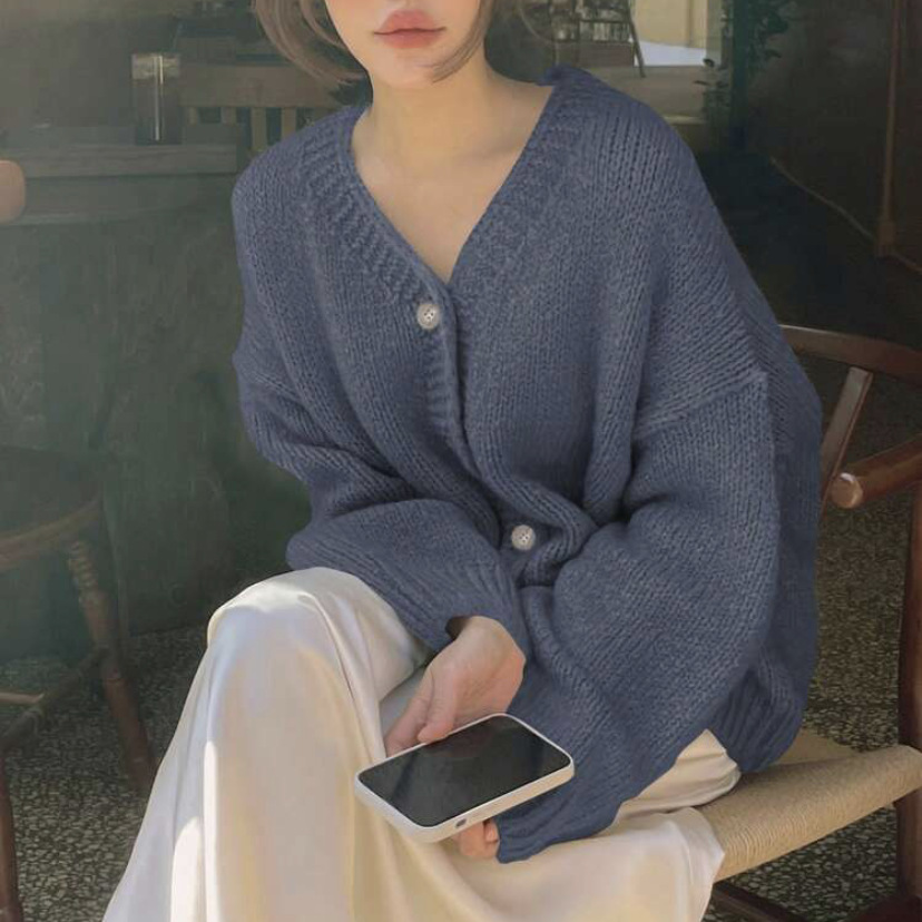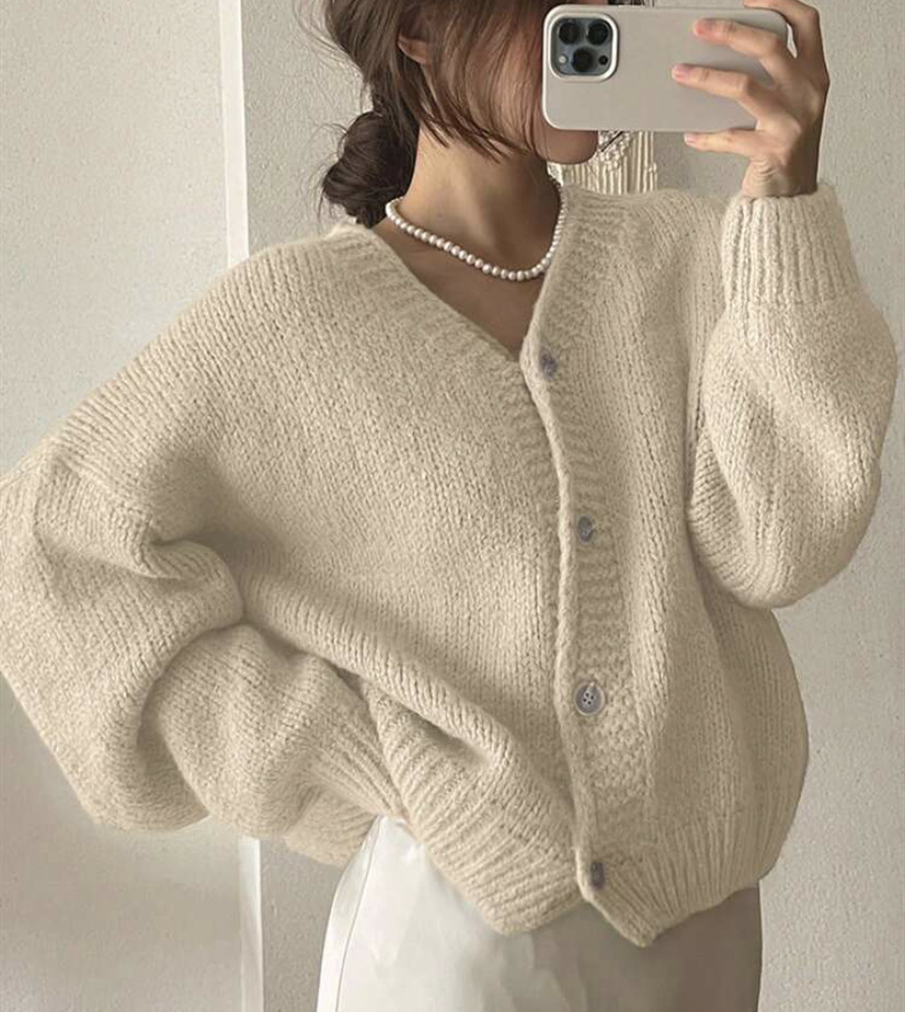 여성을위한 니트 카디건 2025 가을, 겨울 새로운 캐주얼 루즈 v 넥 랜턴 슬리브 스웨터 탑 여성용 풀오버 스웨터스토어 가기