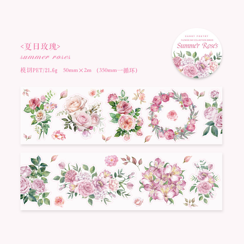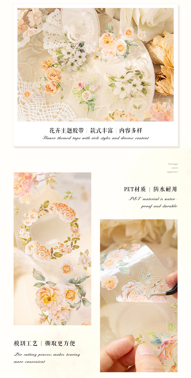설탕시 꽃 일본 컬렉션 시리즈 꽃 테이프 PET 핸드북 DIY 장식 콜라주 기본 소재 스티커 6 스타일