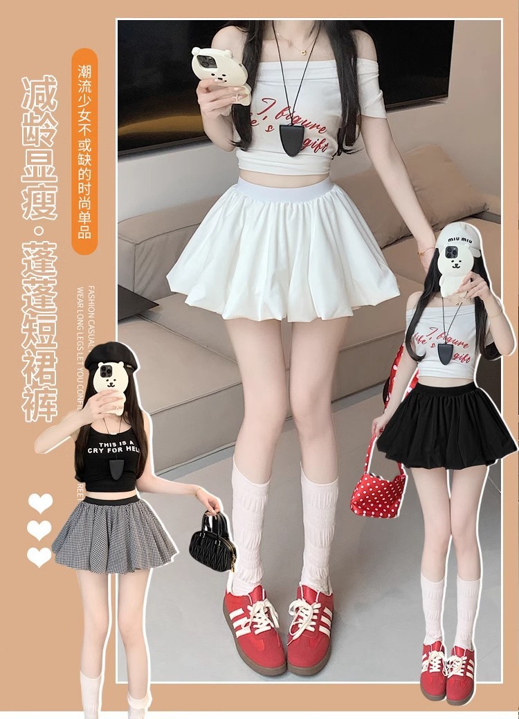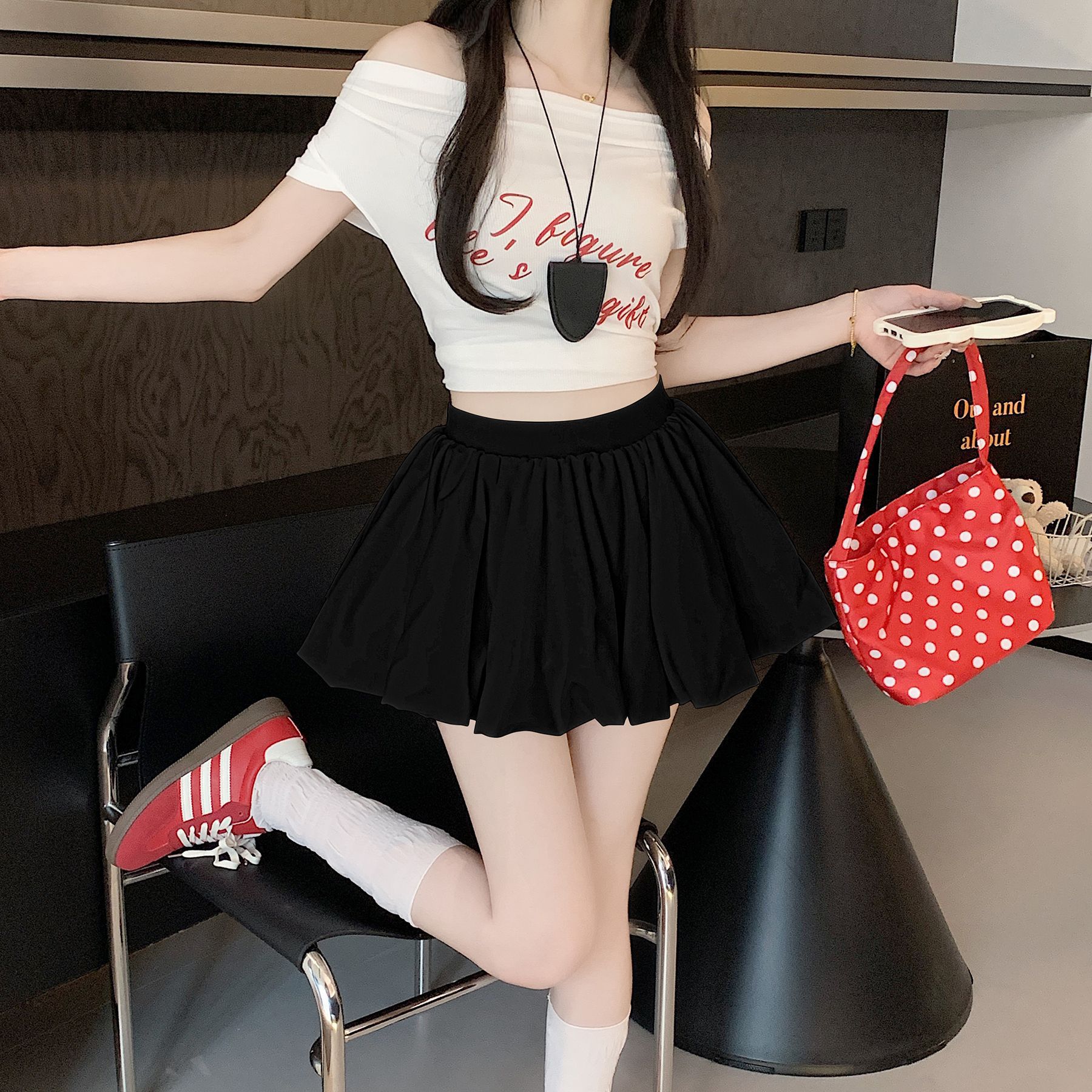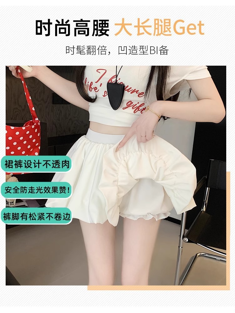 여름 여성용 화이트 버드 퍼프 스커트 하이웨이스트 A라인 플리츠 스커트 노출 방지 핫걸 호박 미니 스커트