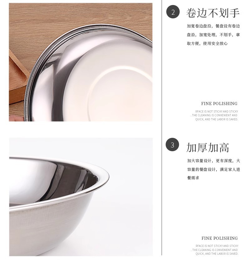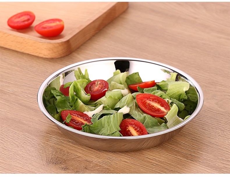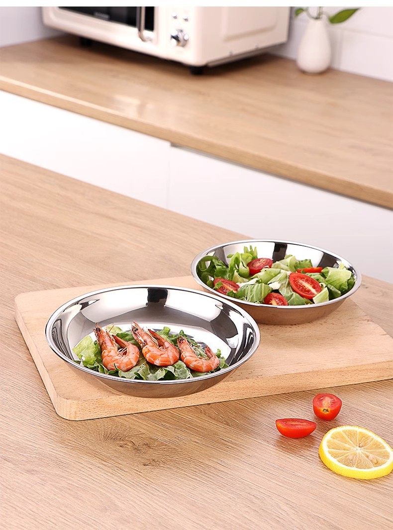 두꺼운 스테인레스 스틸 원형 접시 가정용 평면 접시 접시 식기 트레이 디너 접시 얕은 접시 철 접시 접시 바베큐 접시