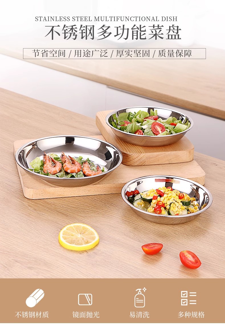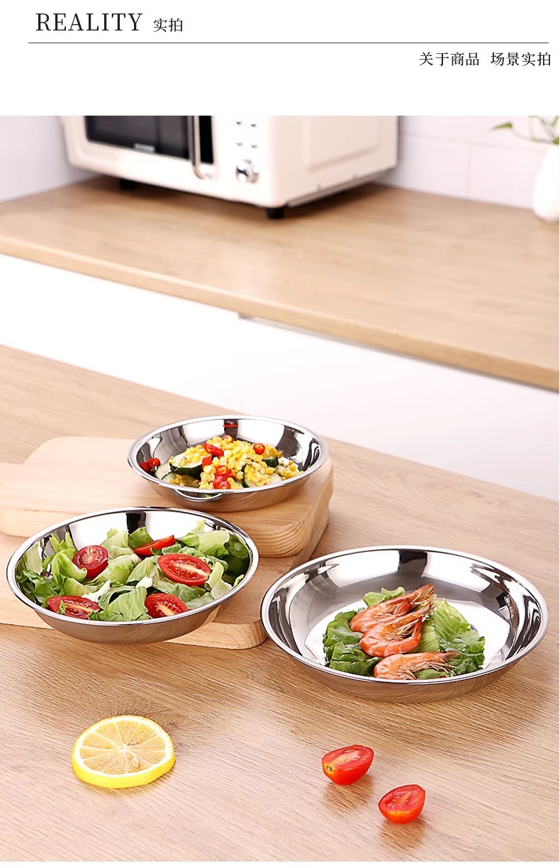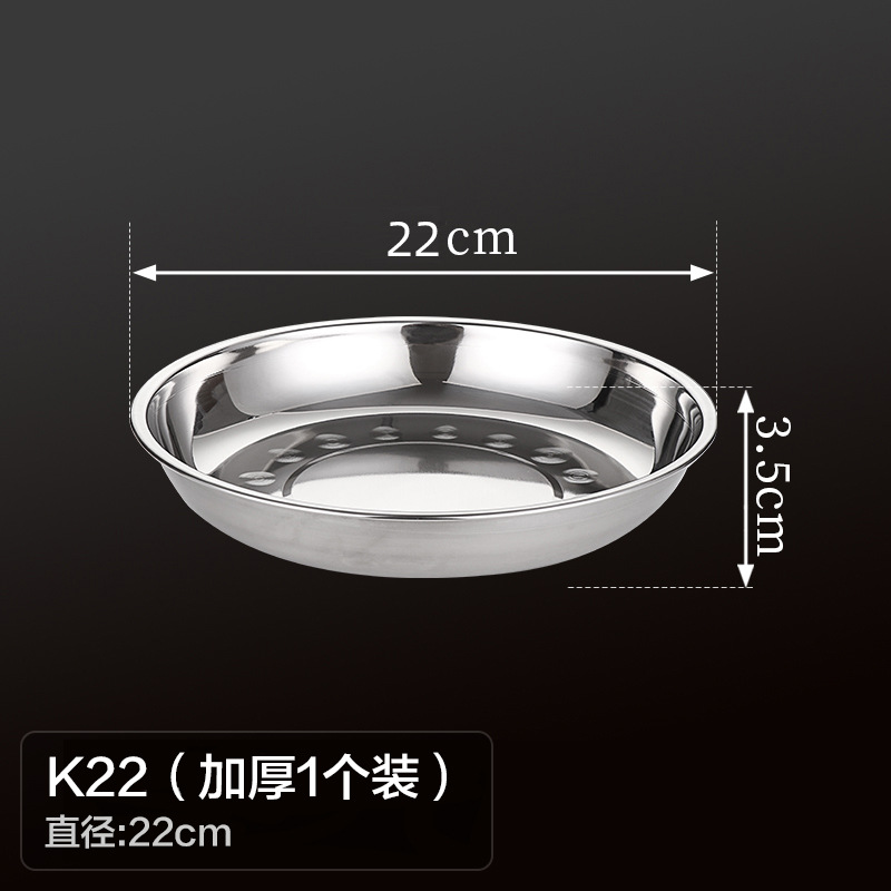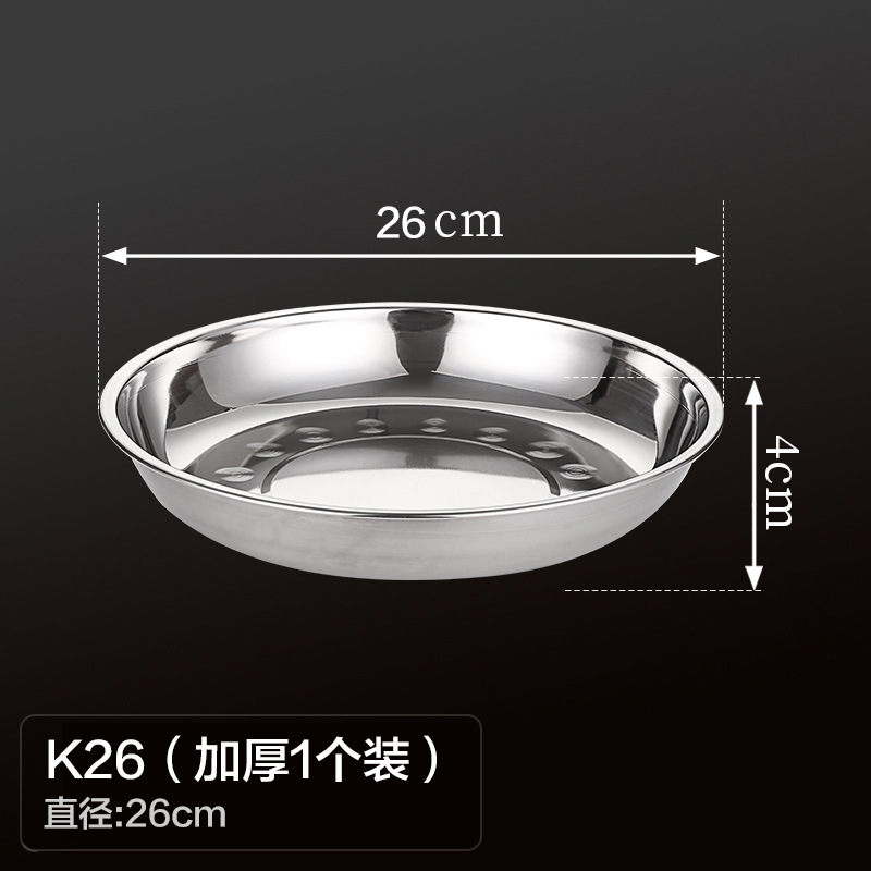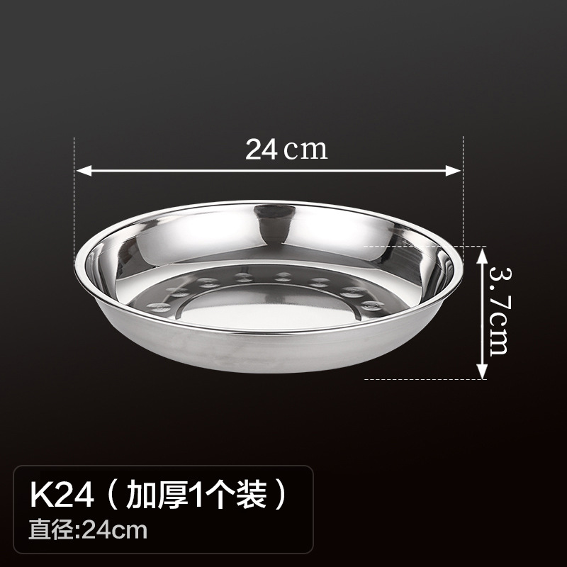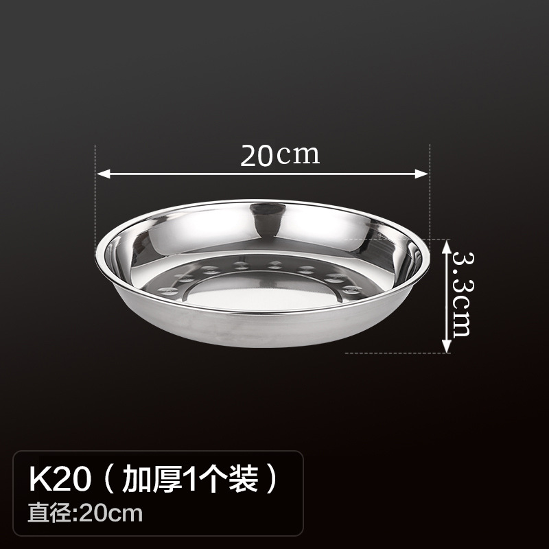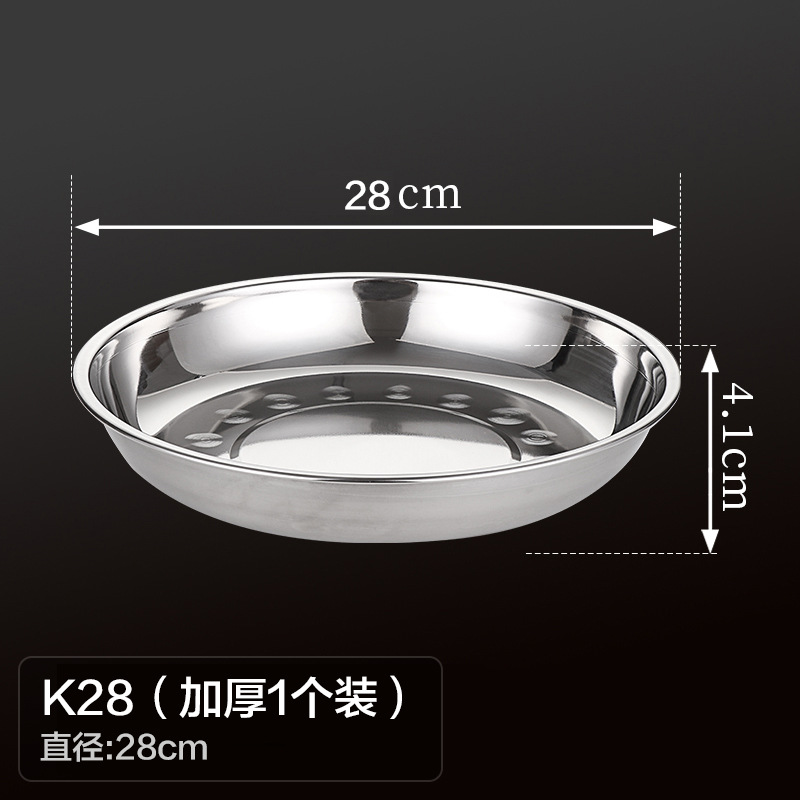 두꺼운 스테인레스 스틸 원형 접시 가정용 평면 접시 접시 식기 트레이 디너 접시 얕은 접시 철 접시 접시 바베큐 접시스토어 가기