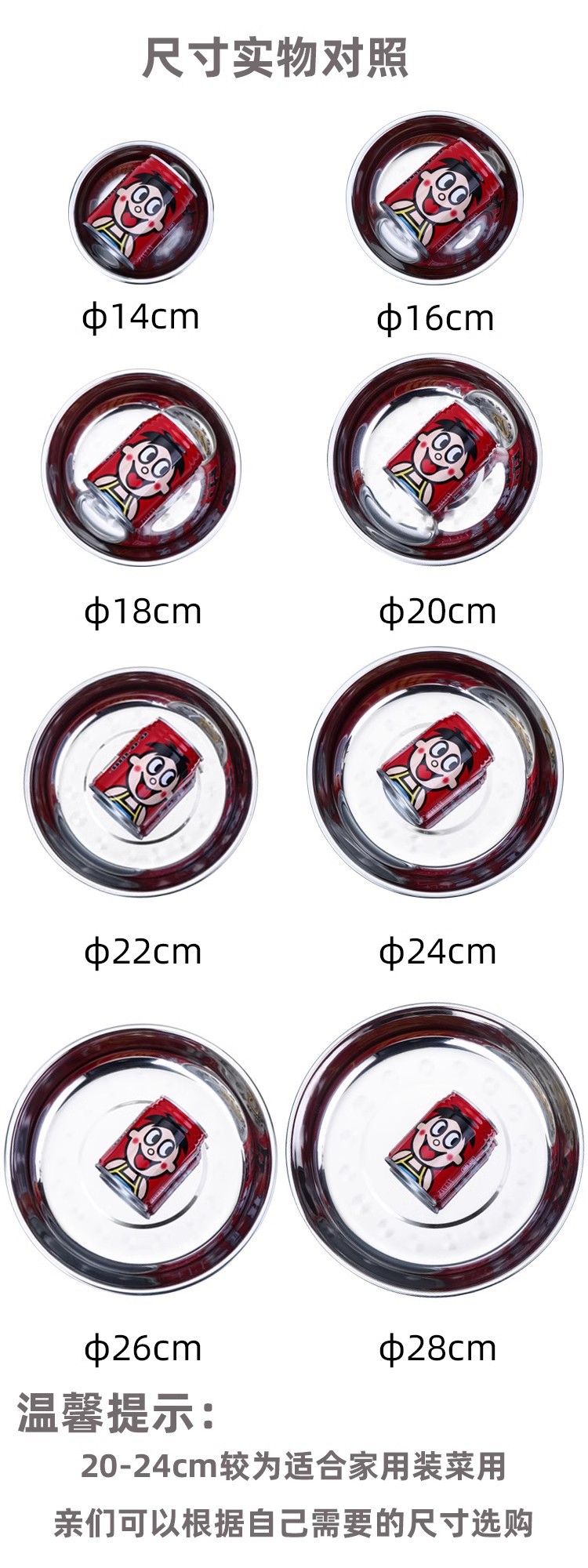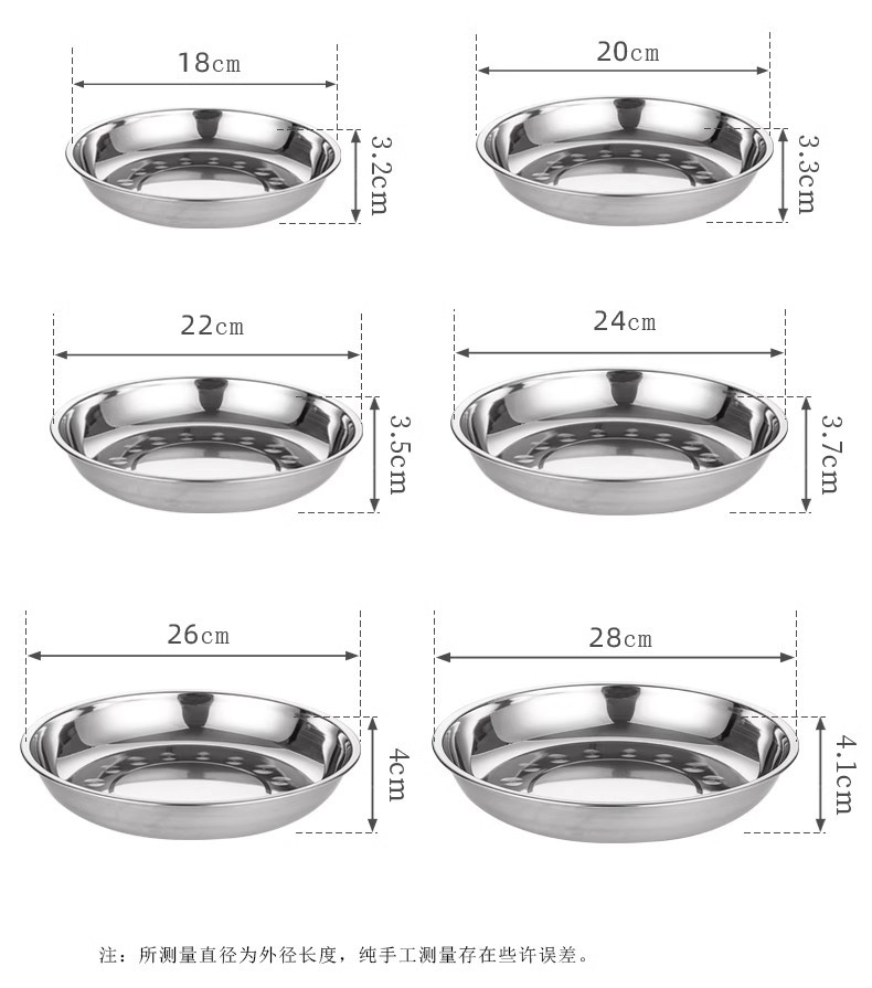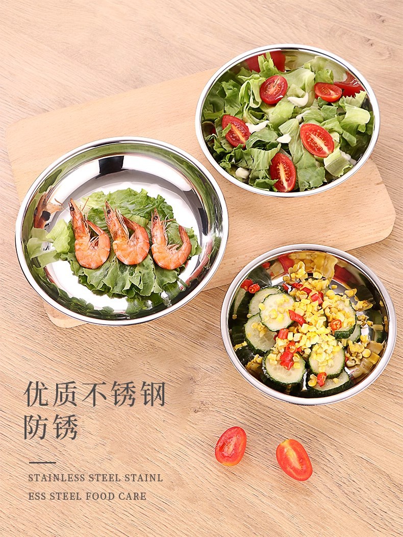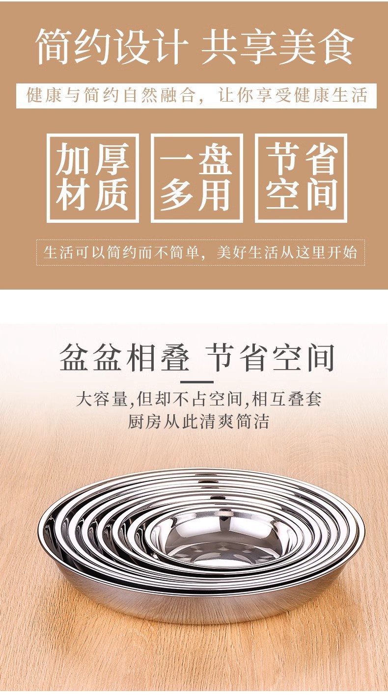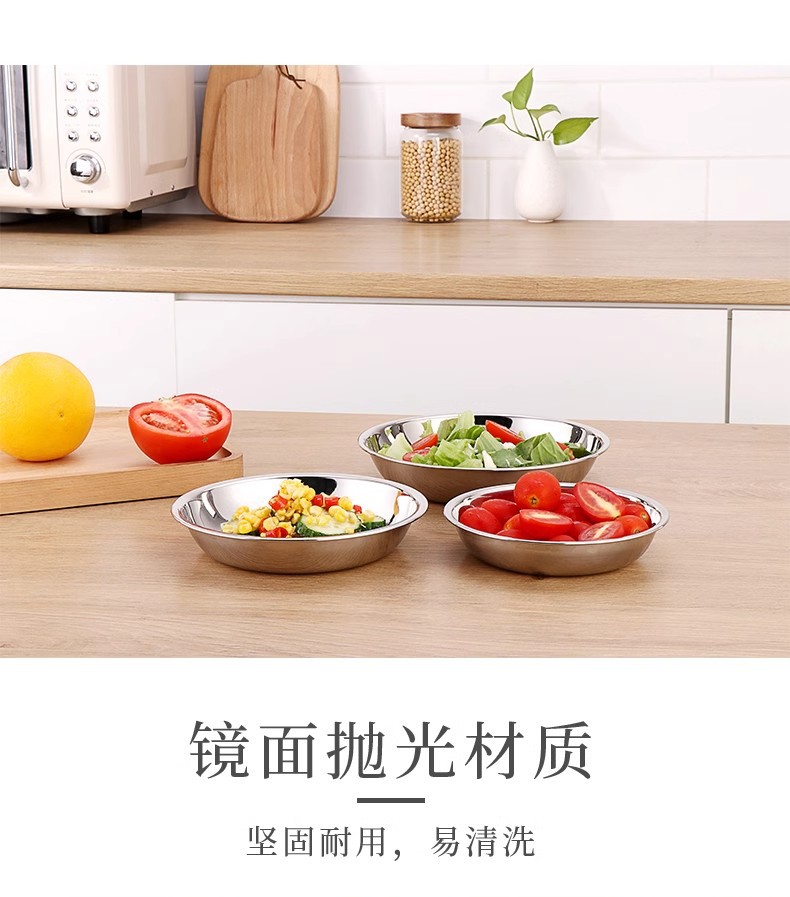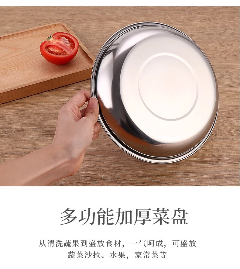 두꺼운 스테인레스 스틸 원형 접시 가정용 평면 접시 접시 식기 트레이 디너 접시 얕은 접시 철 접시 접시 바베큐 접시스토어 가기