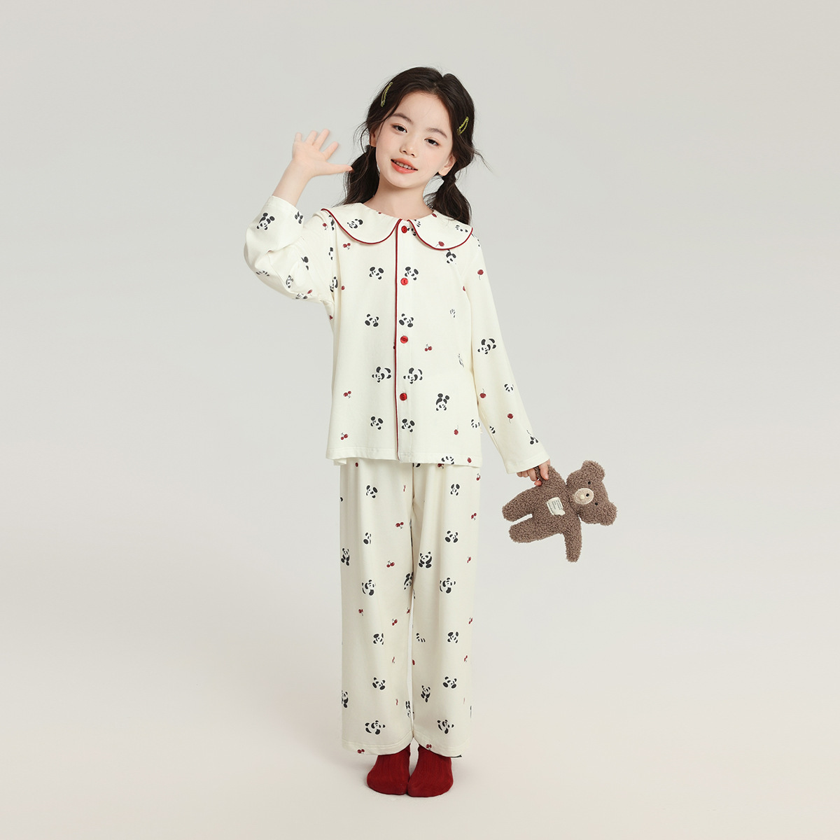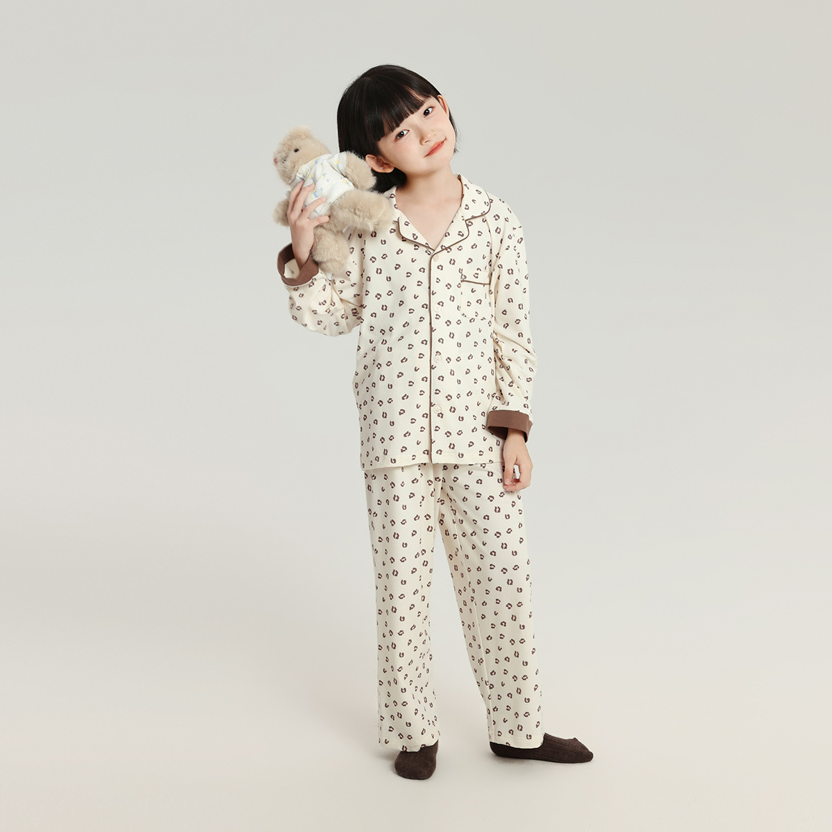 Pudding Haru 어린이 귀여운 긴팔 잠옷 2025 가을 새 여자 캐주얼 루즈 홈웨어 세트