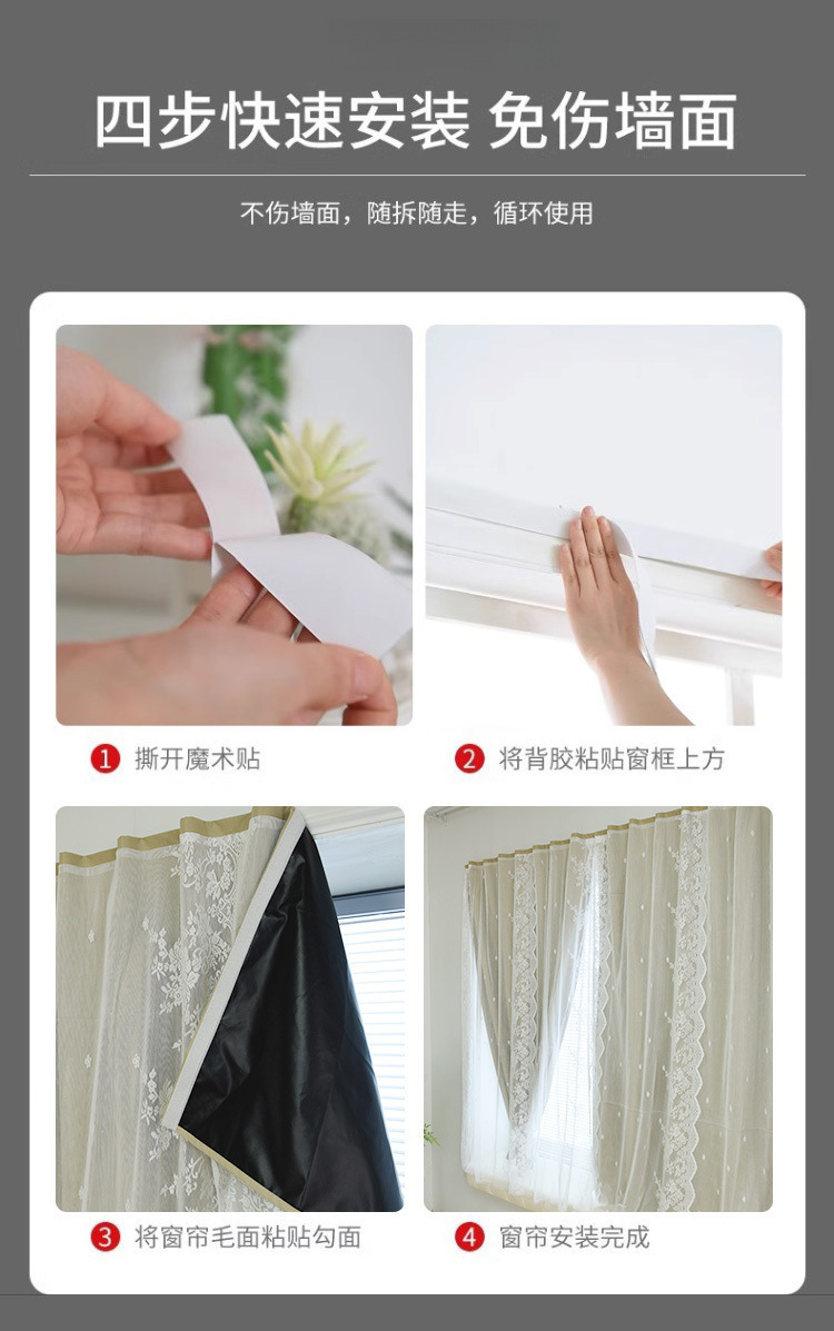 렌탈하우스 침실용 완전 암막커튼, 매직스티커로 설치가 간편한 작은창용 단창커튼