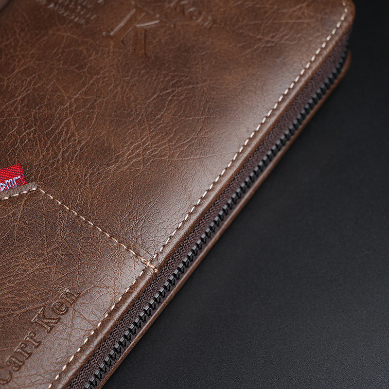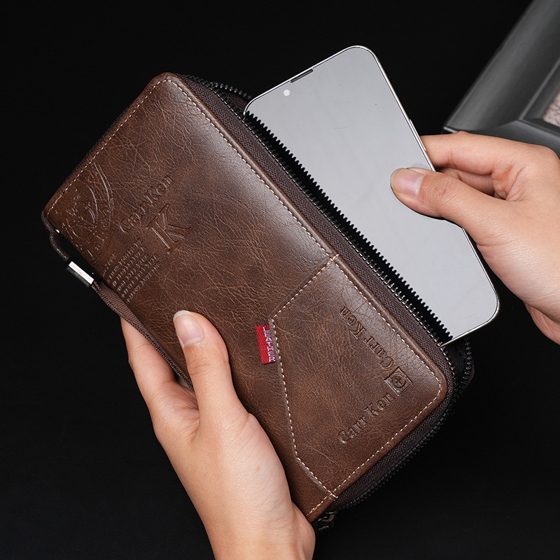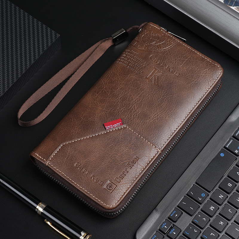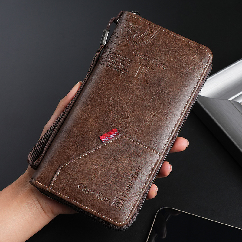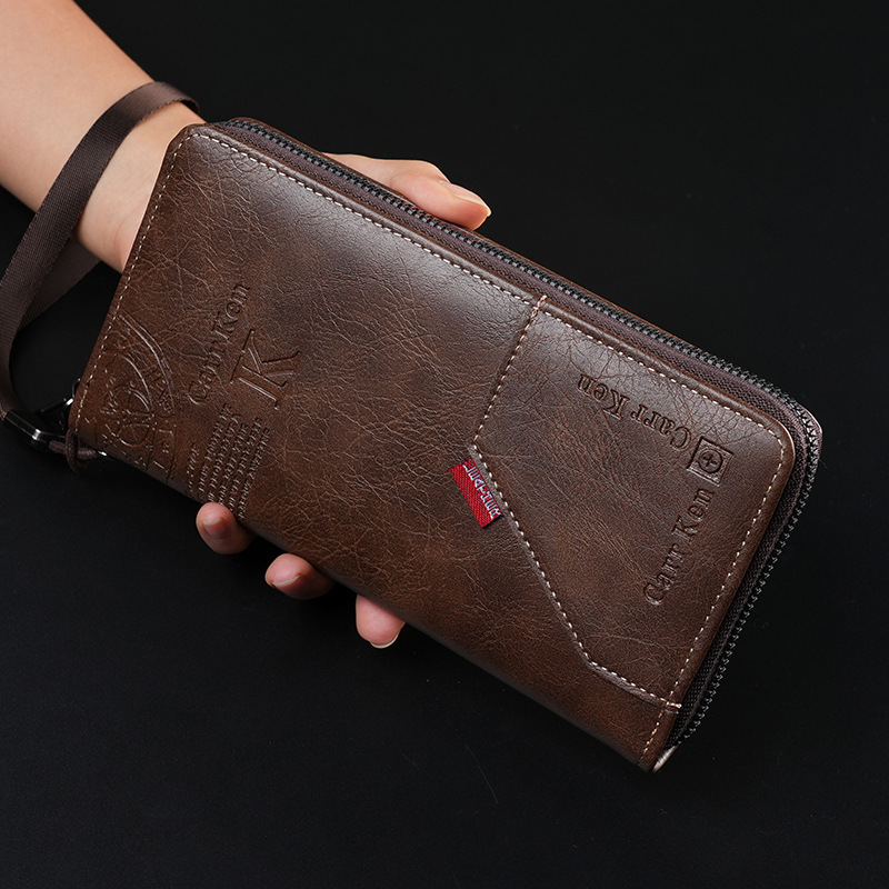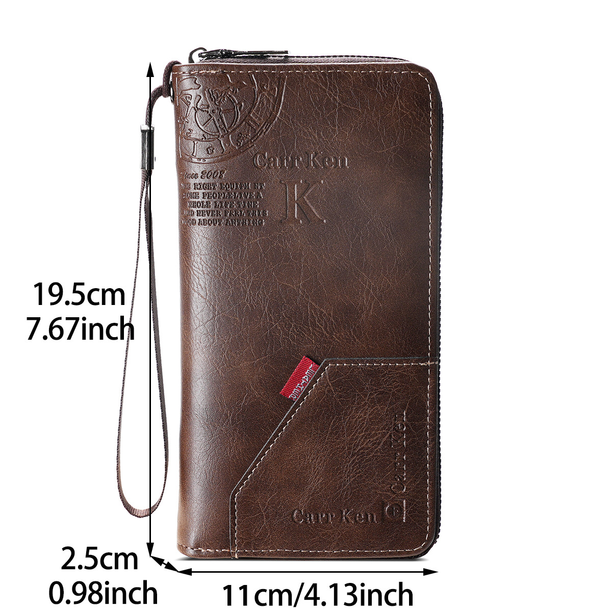 Carrken 새로운 남성 청소년 복고풍 지퍼 긴 지갑 다기능 문자 양각 스티치 클러치 백