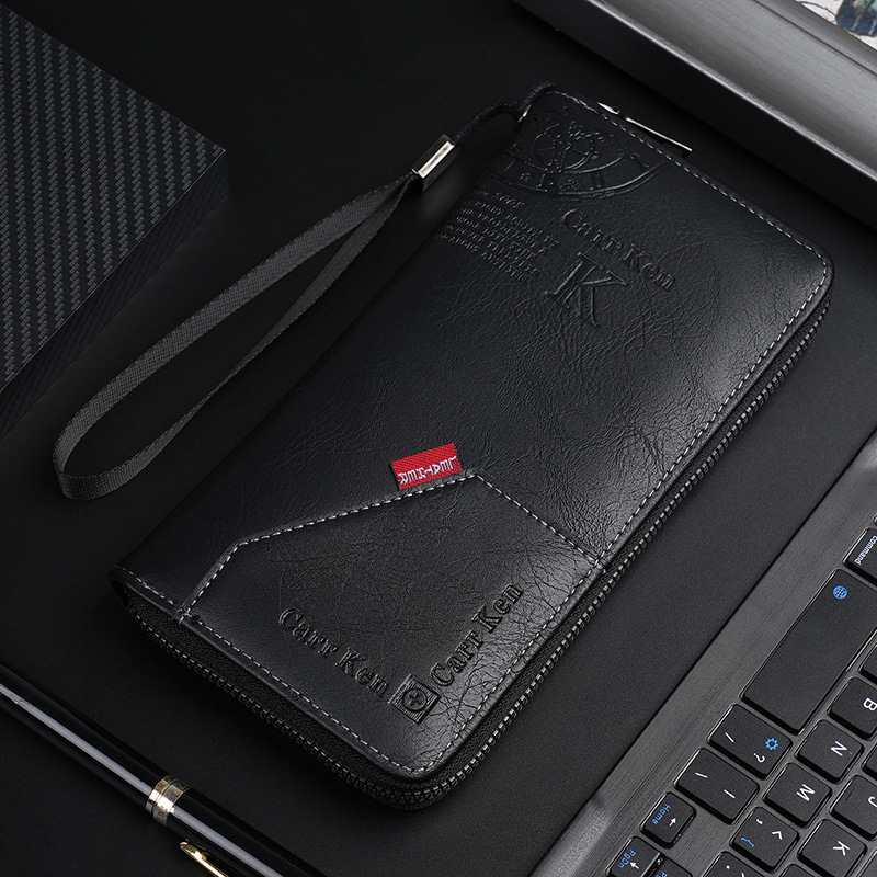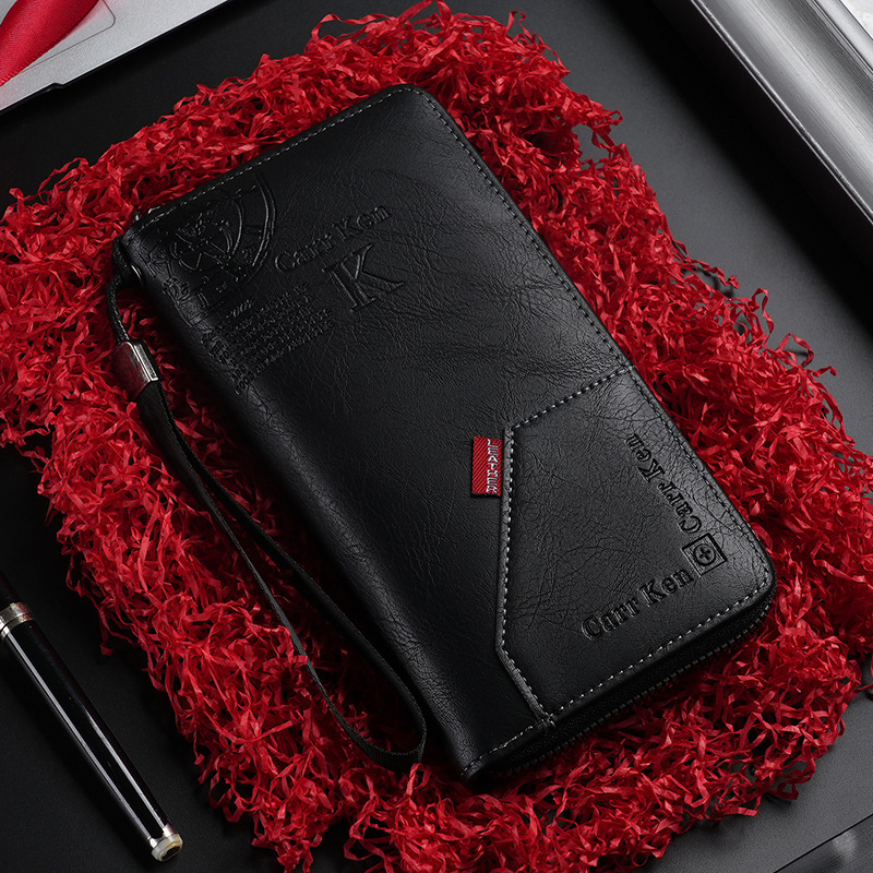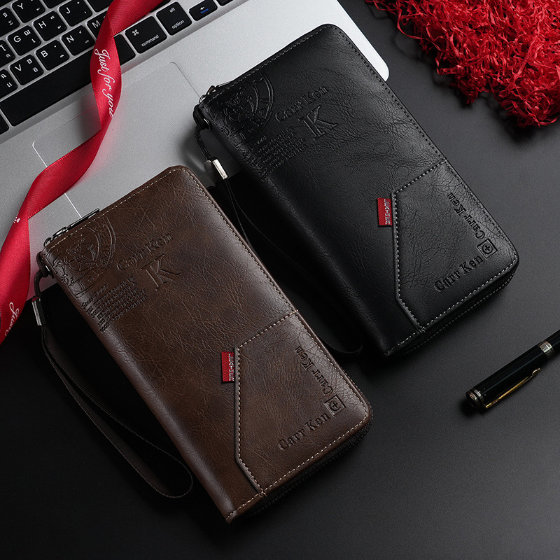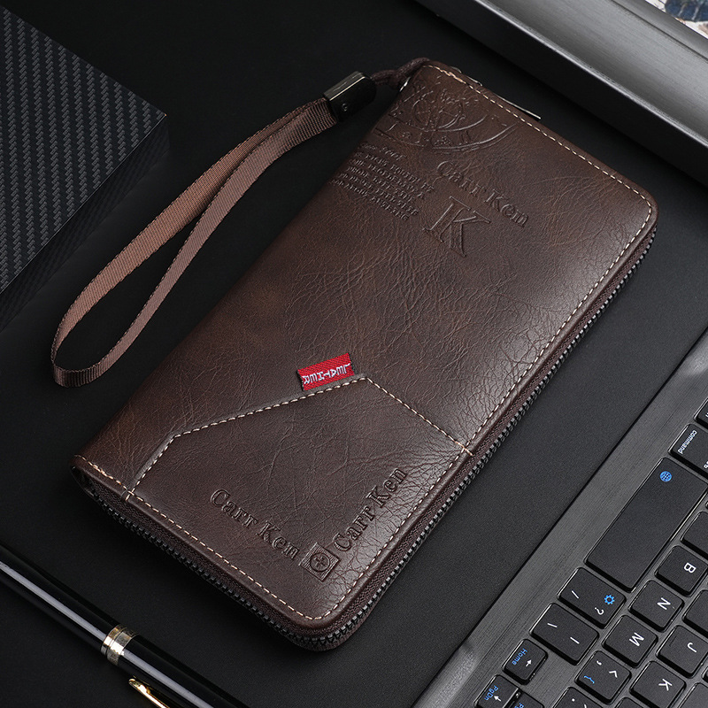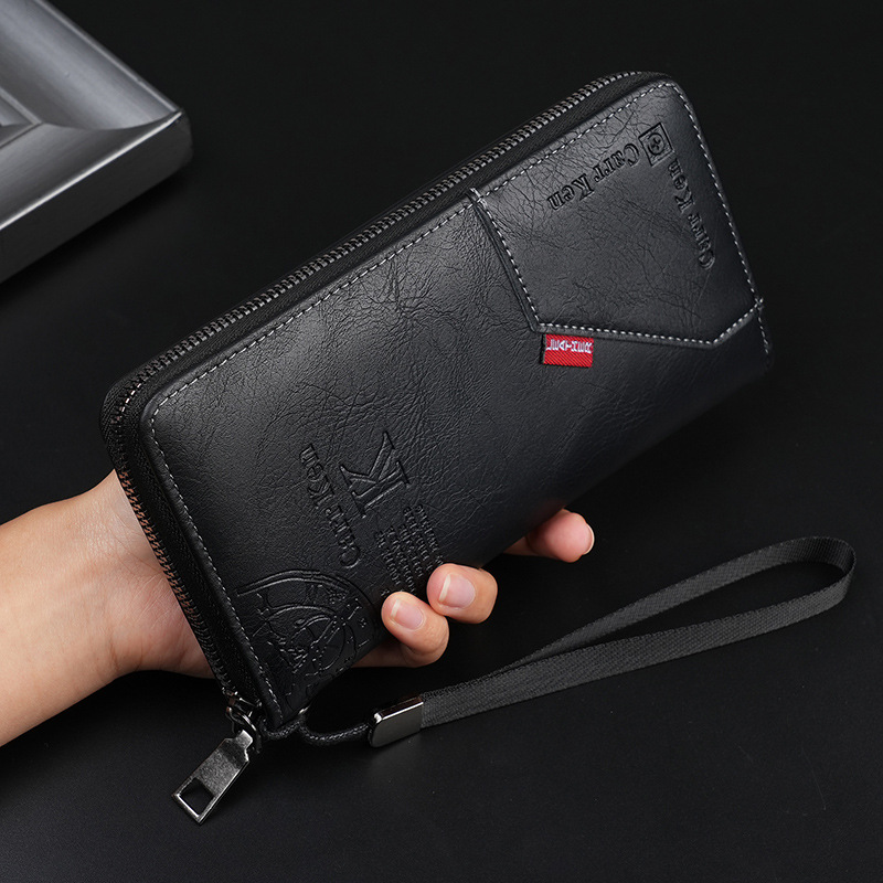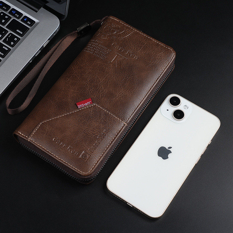 Carrken 새로운 남성 청소년 복고풍 지퍼 긴 지갑 다기능 문자 양각 스티치 클러치 백
