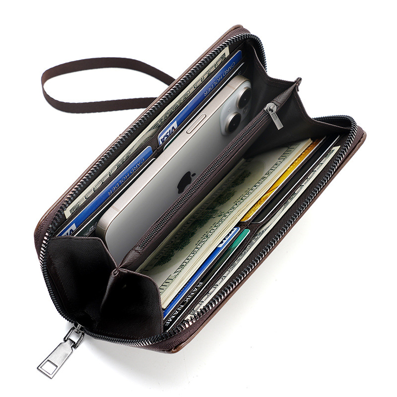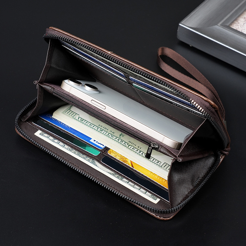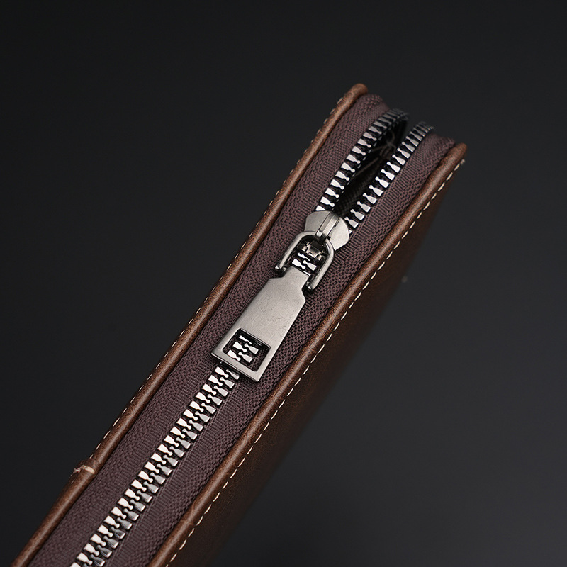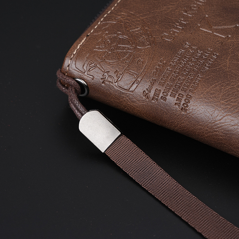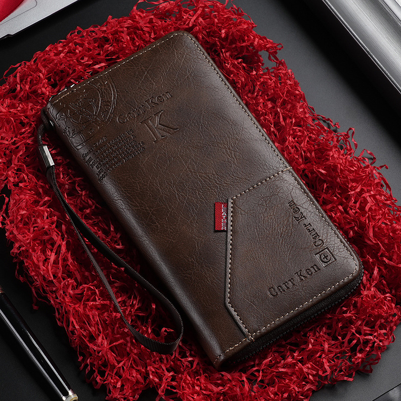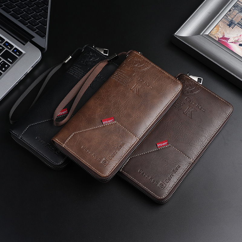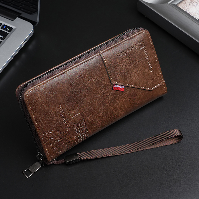 Carrken 새로운 남성 청소년 복고풍 지퍼 긴 지갑 다기능 문자 양각 스티치 클러치 백