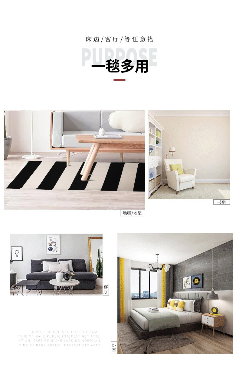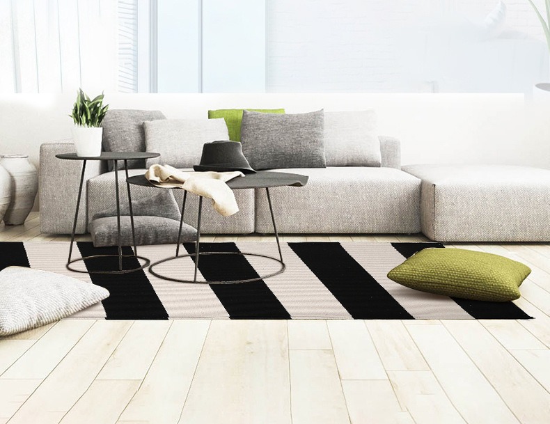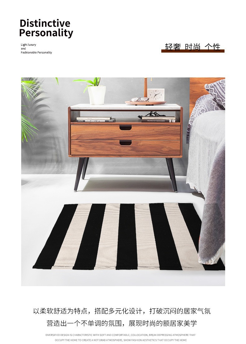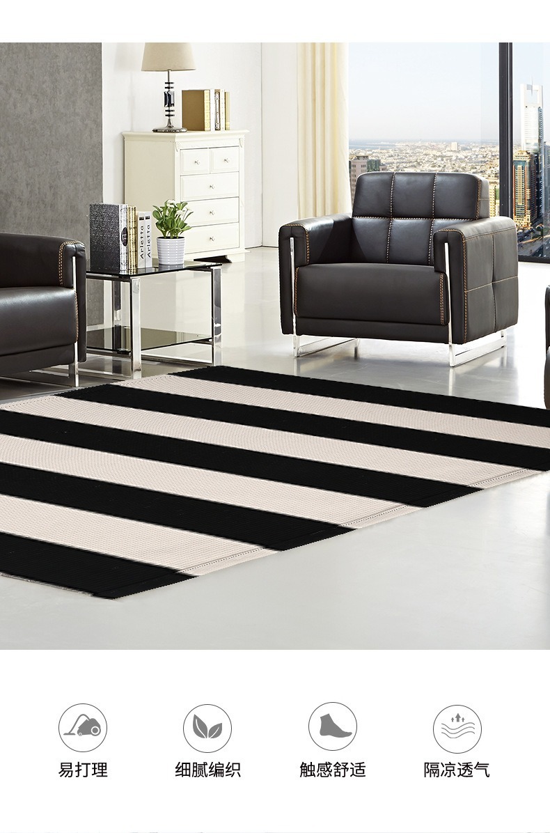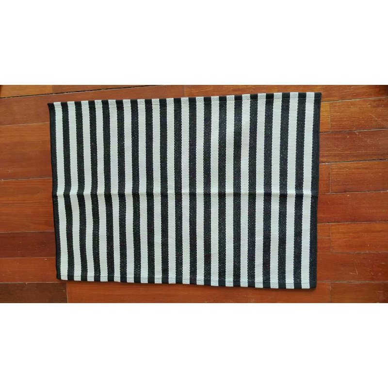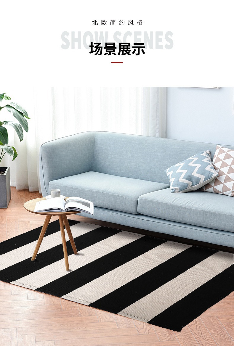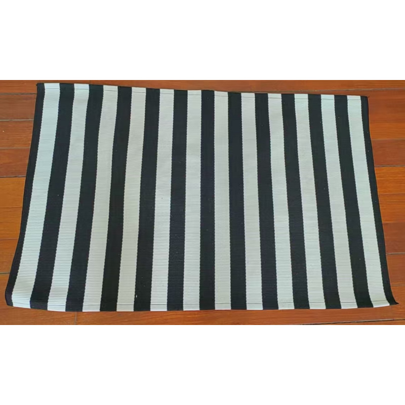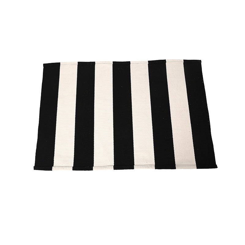 국경 간 면사 짠 바닥 매트 면 및 린넨 줄무늬 카펫 간단한 거실 침실 입구 매트 기계 세탁 가능한 바닥 매트