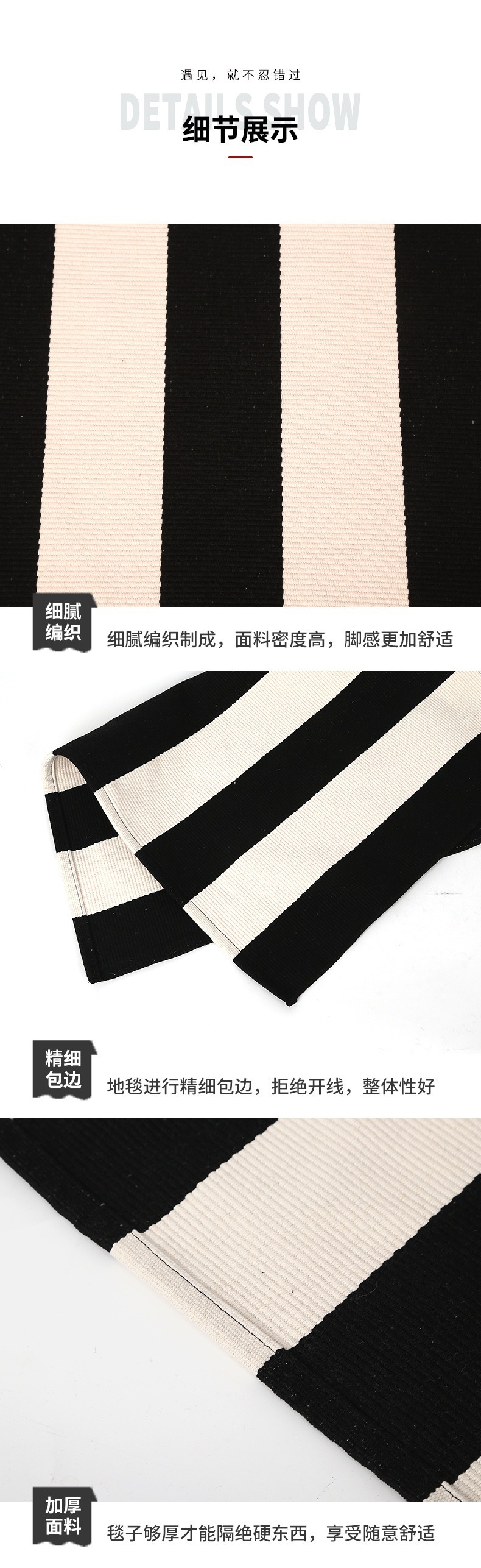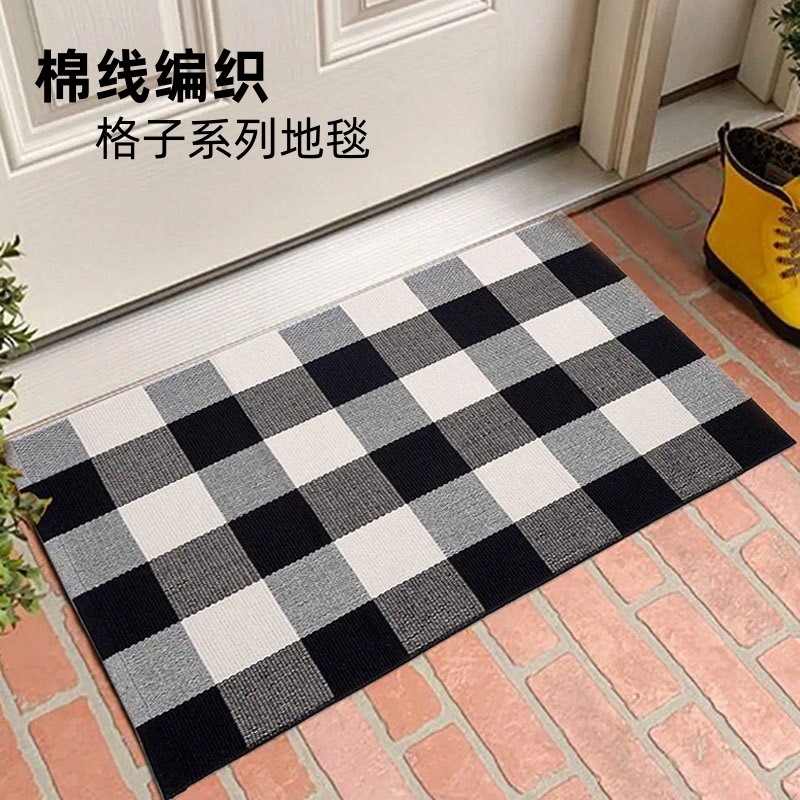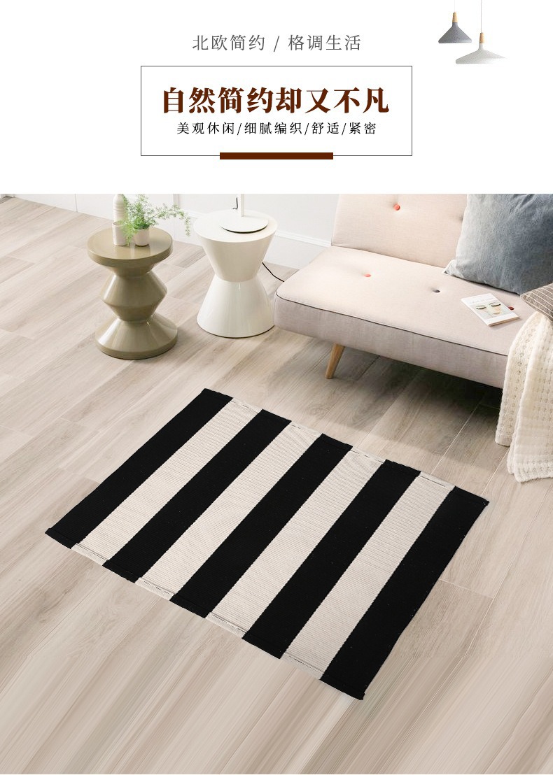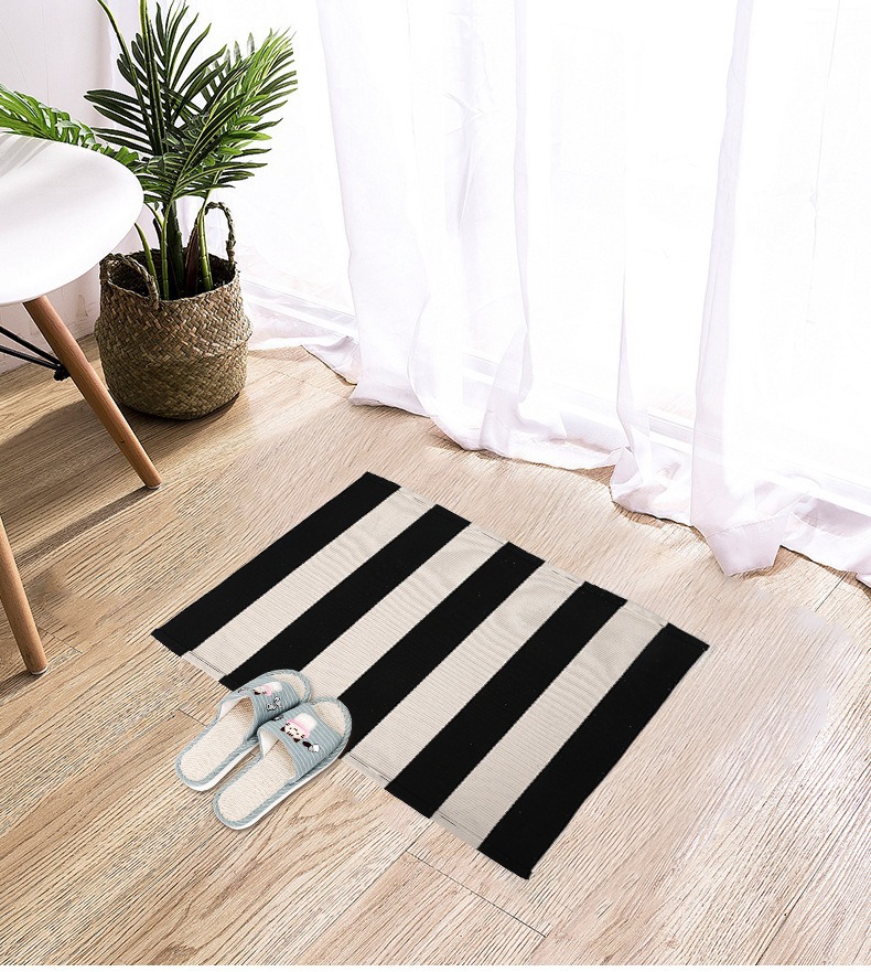 국경 간 면사 짠 바닥 매트 면 및 린넨 줄무늬 카펫 간단한 거실 침실 입구 매트 기계 세탁 가능한 바닥 매트스토어 가기