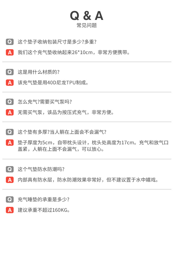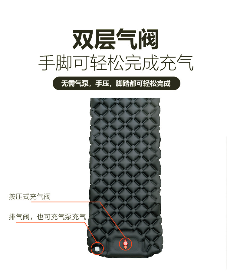 • 사막 노란색(이중 모델)은 팽창 후 길이 190cm, 너비 120cm, 두께 5cm입니다. 발로 밟거나 눌러 팽창할 수 있습니다.