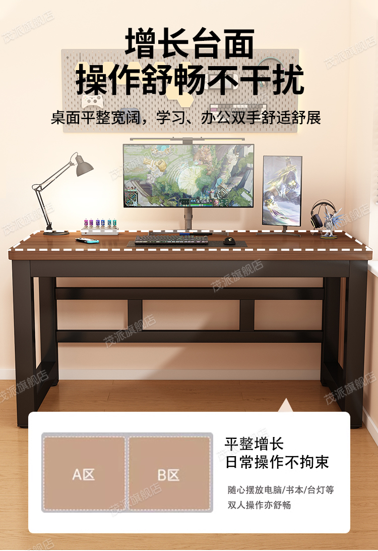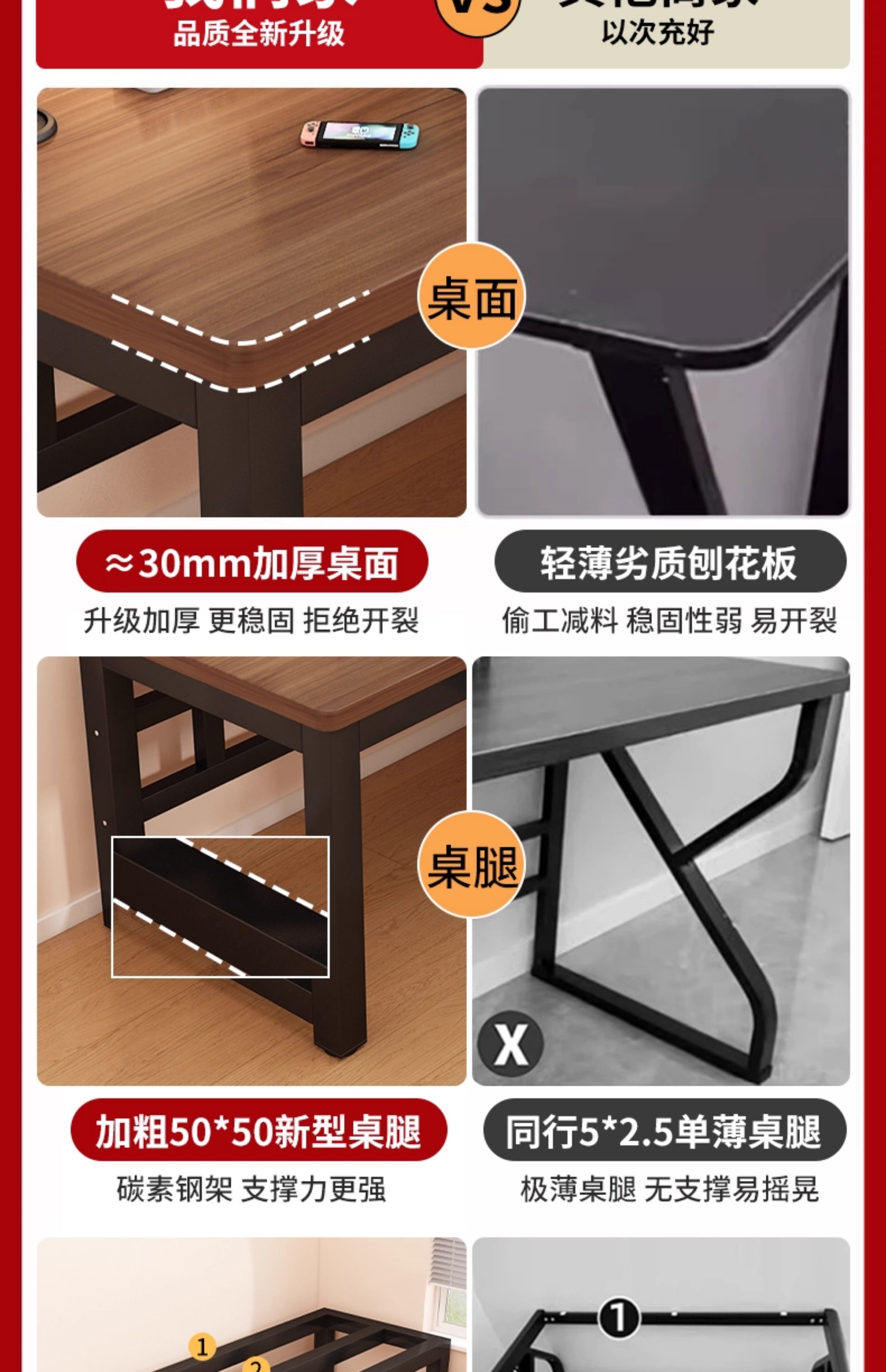 • 짙은 호두나무색 + 블랙 프레임 [두께 25mm 파티클보드 상판] 업그레이드된 이중 지지대 강화