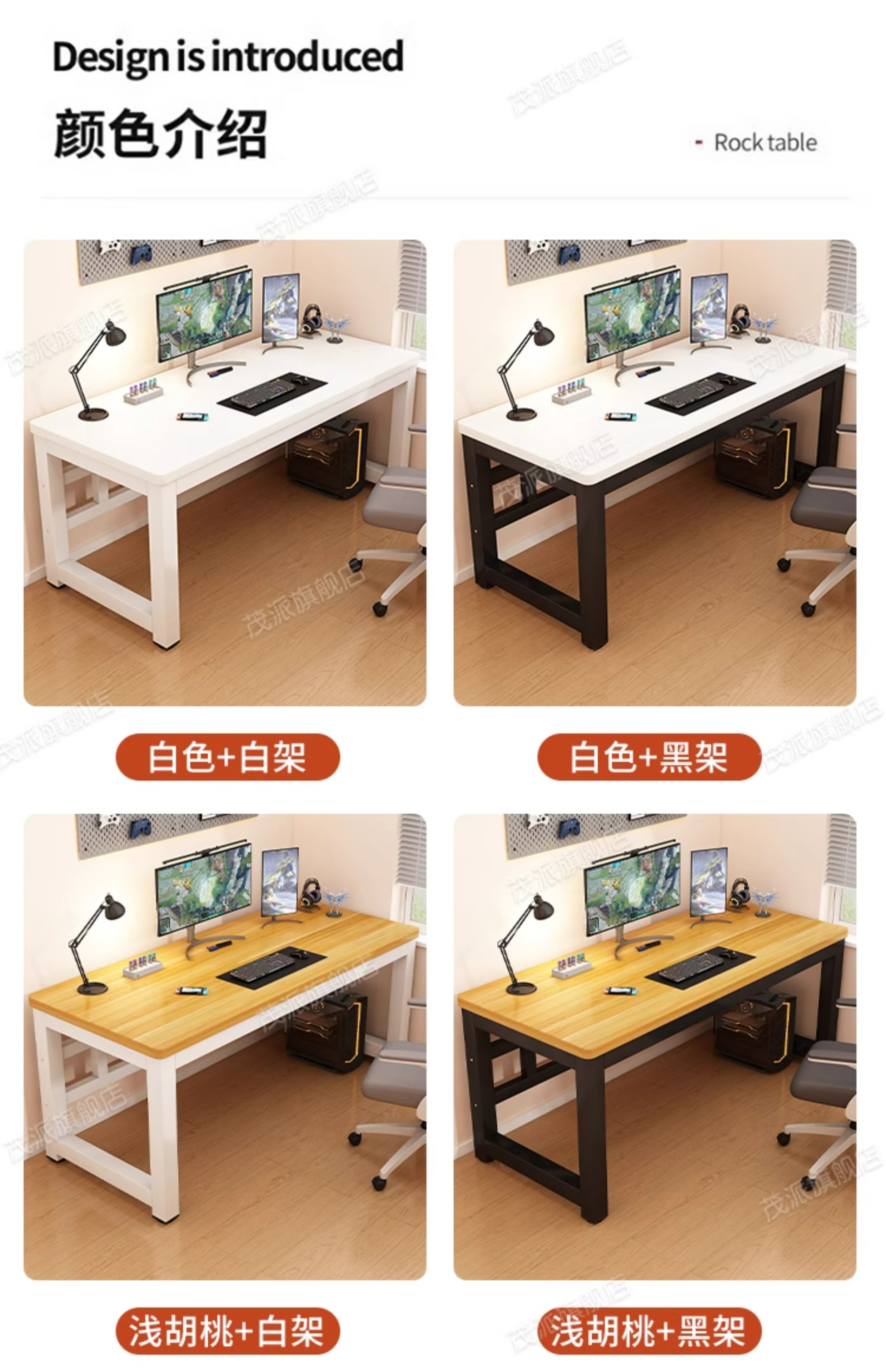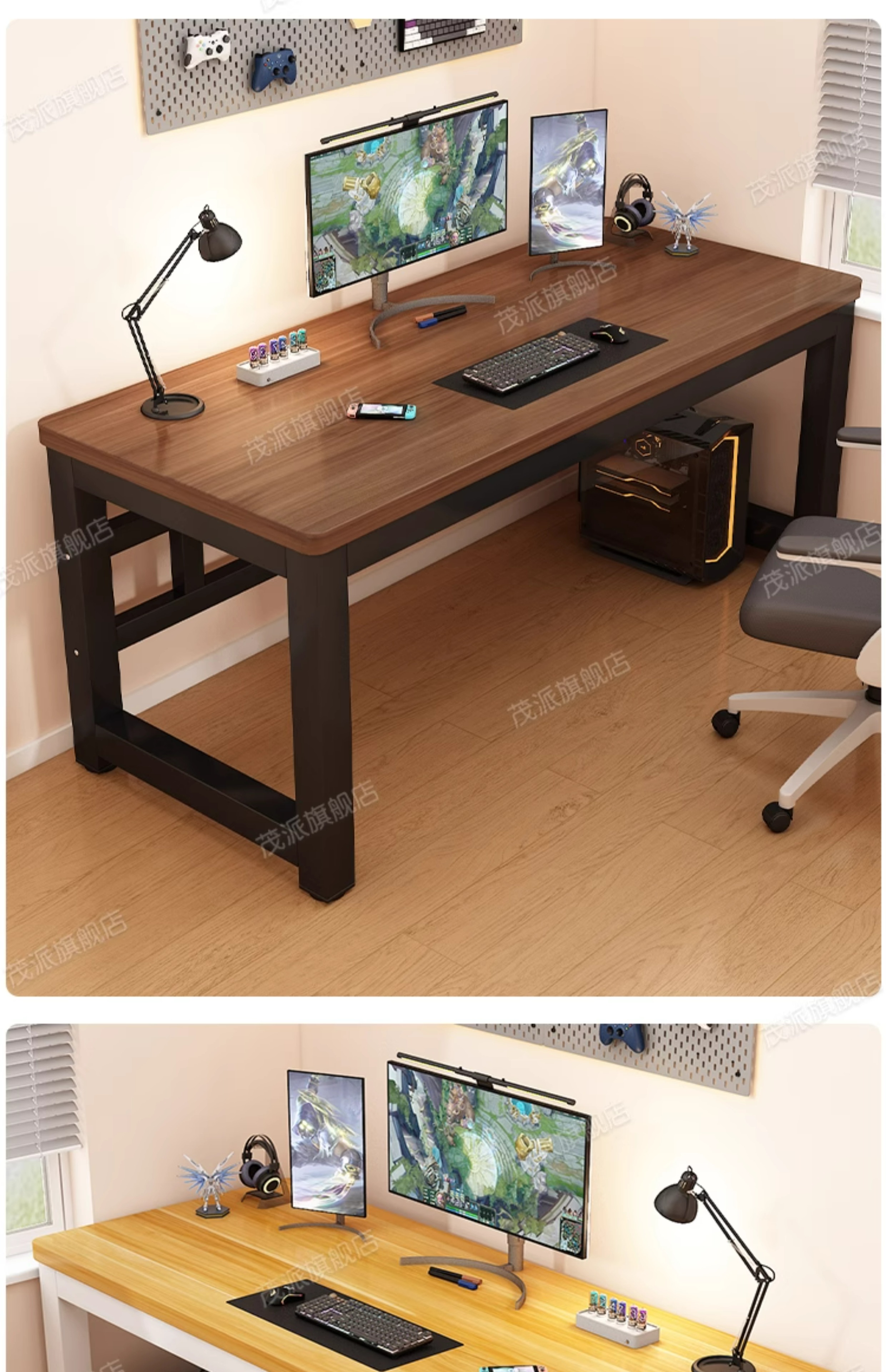 • 라이트월넛 + 화이트 프레임 [두꺼운 25mm 파티클보드 데스크탑] 업그레이드된 이중 타이로드 보강