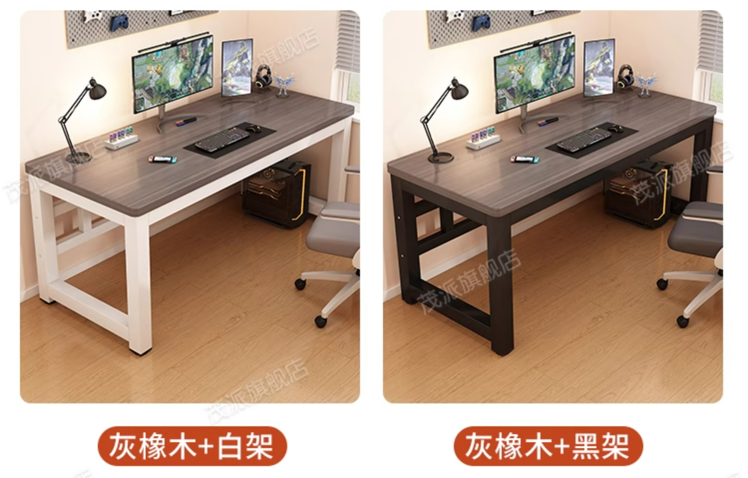 • 그레이 오크 + 블랙 프레임 [두꺼운 25mm 파티클보드 데스크탑] 업그레이드된 이중 타이로드 보강
