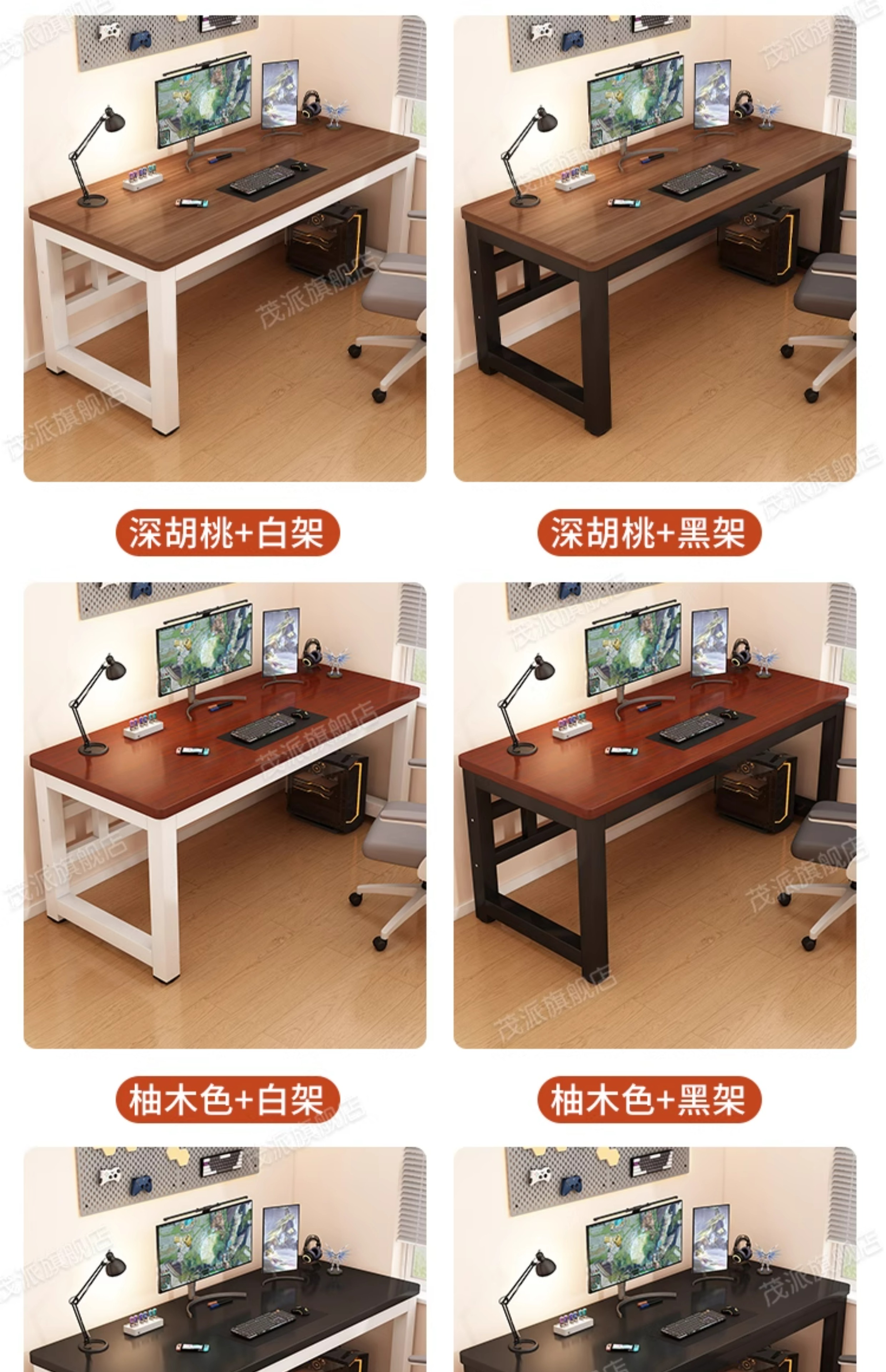 • 짙은 호두나무색 + 화이트 프레임 [두께 25mm 강화 파티클보드 상판] 업그레이드된 이중 지지대 보강