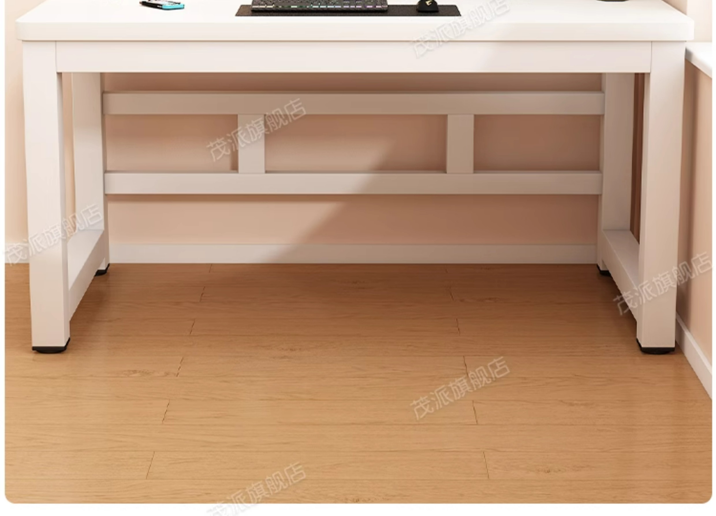 • 화이트 + 화이트 프레임 [두께 25mm 파티클보드 상판] 업그레이드된 이중 지지대 강화
