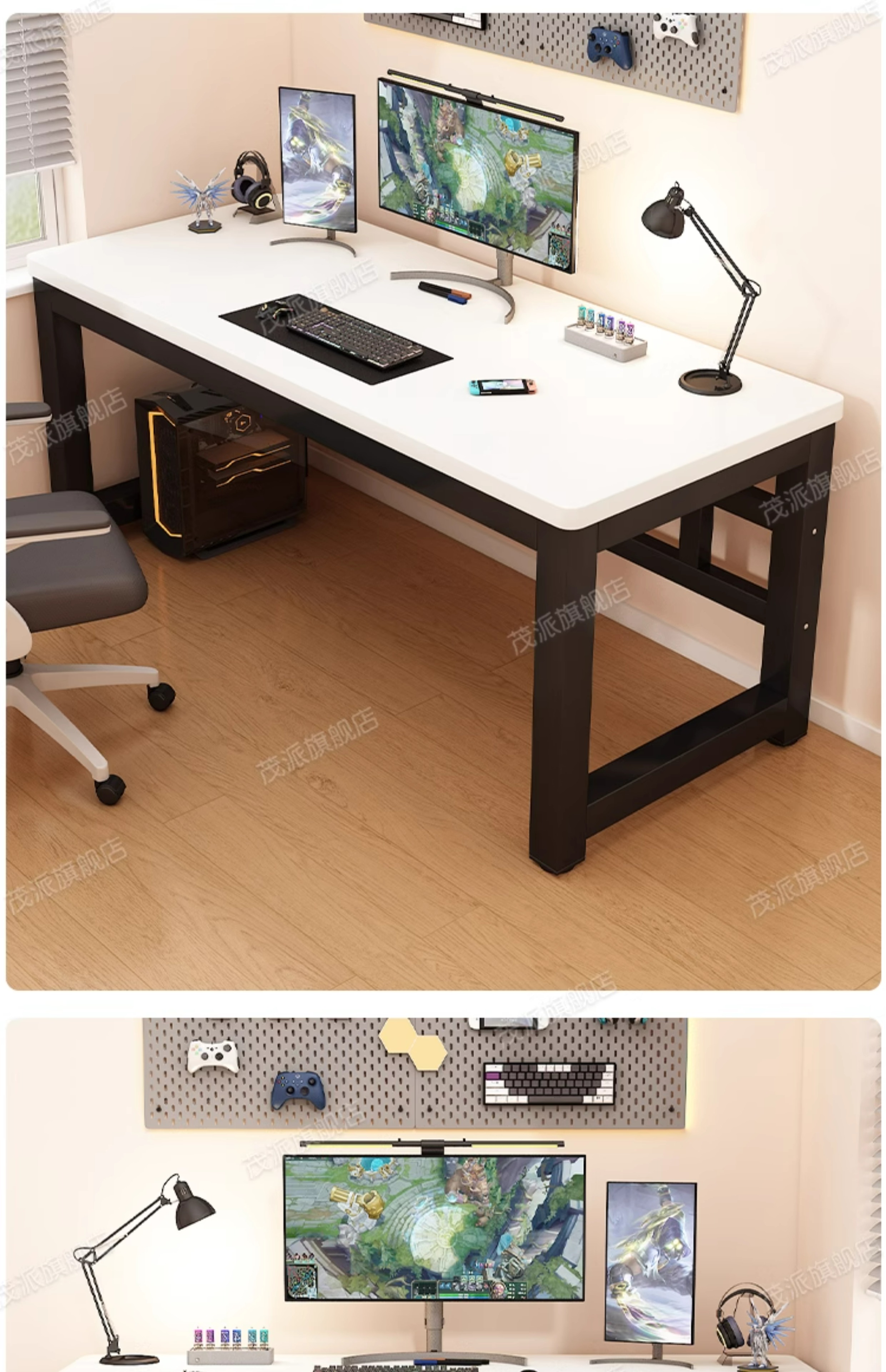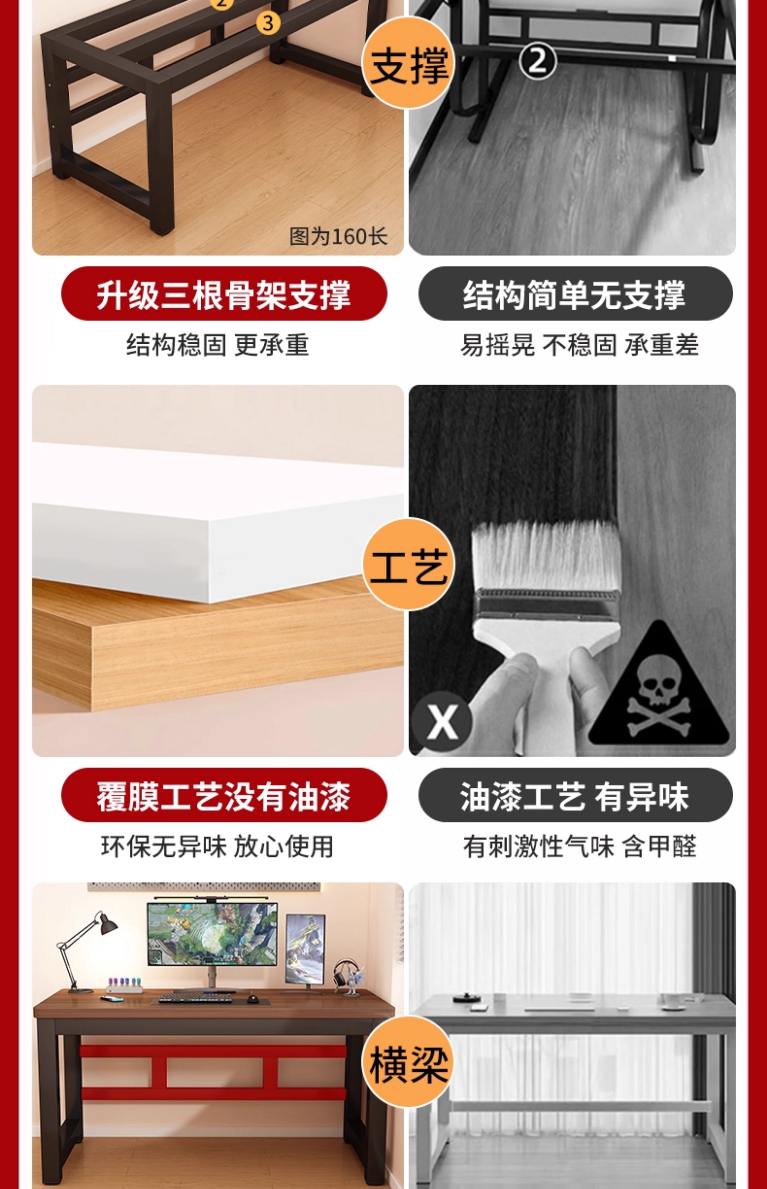 • 블랙 + 화이트 프레임 [두께 25mm 파티클보드 상판] 업그레이드된 이중 지지대 강화