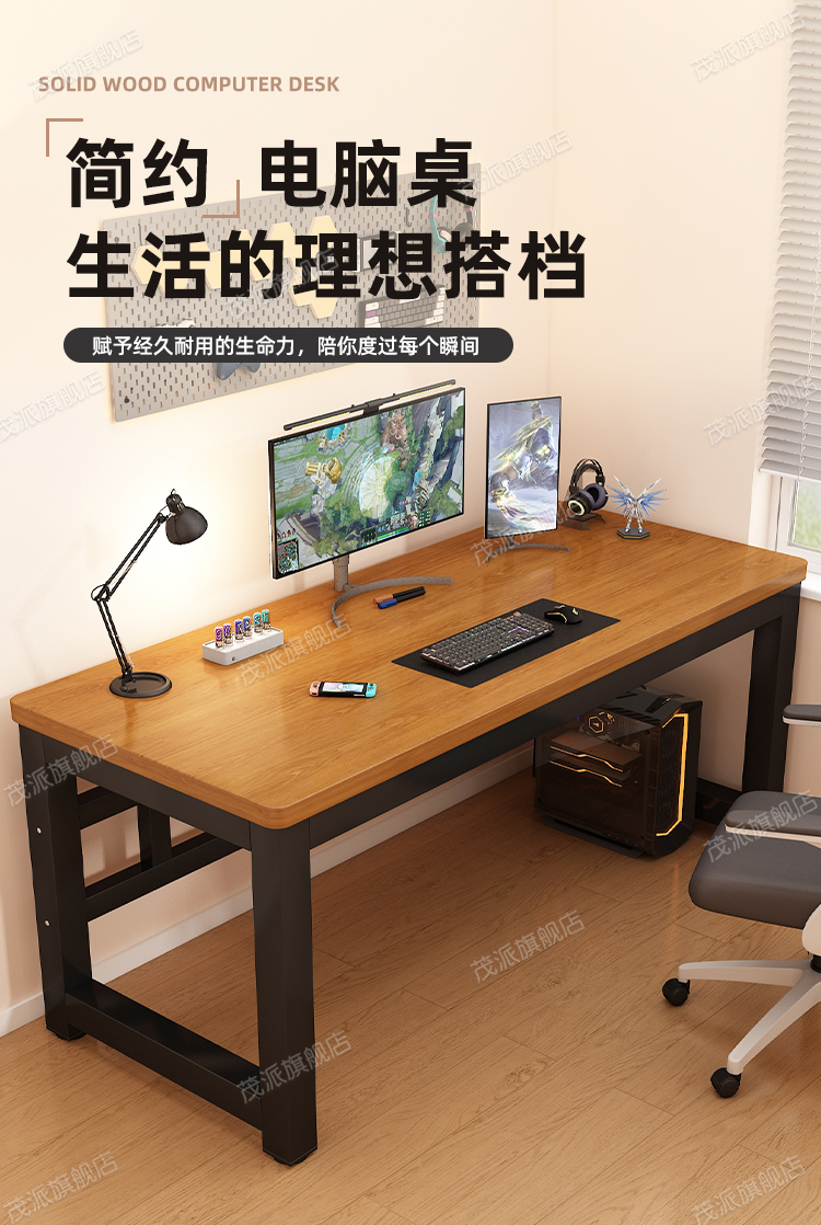 단단한 나무 컴퓨터 책상 데스크탑 책상 긴 테이블 간단한 책상 학생 집 침실 e-스포츠 테이블 작업대스토어 가기