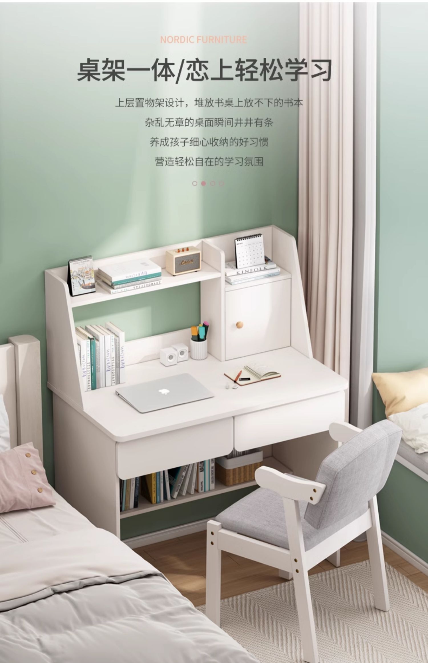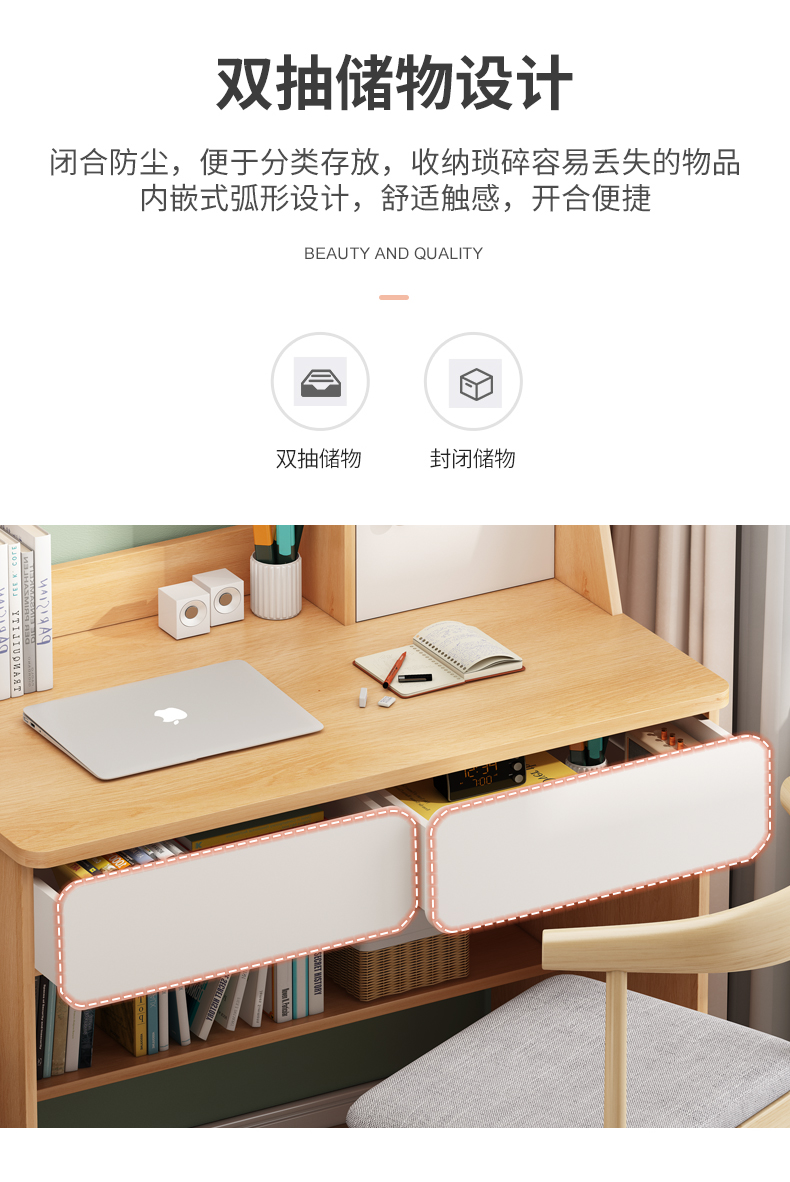 • (桌椅一套)60cm暖白双抽 收货晒图再退10元!