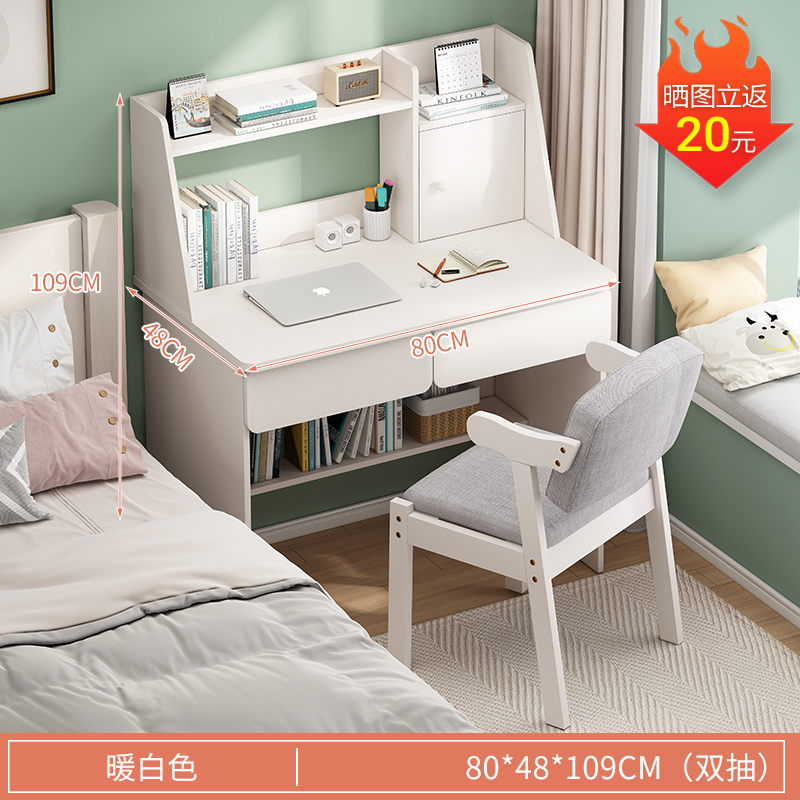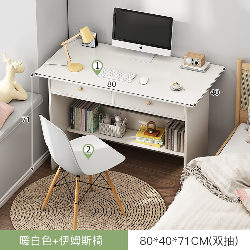 • (桌椅一套)80cm暖白双抽 收货晒图再退10元!