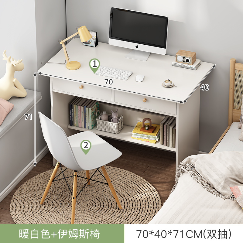 • (桌椅一套)70cm暖白双抽 收货晒图再退10元!