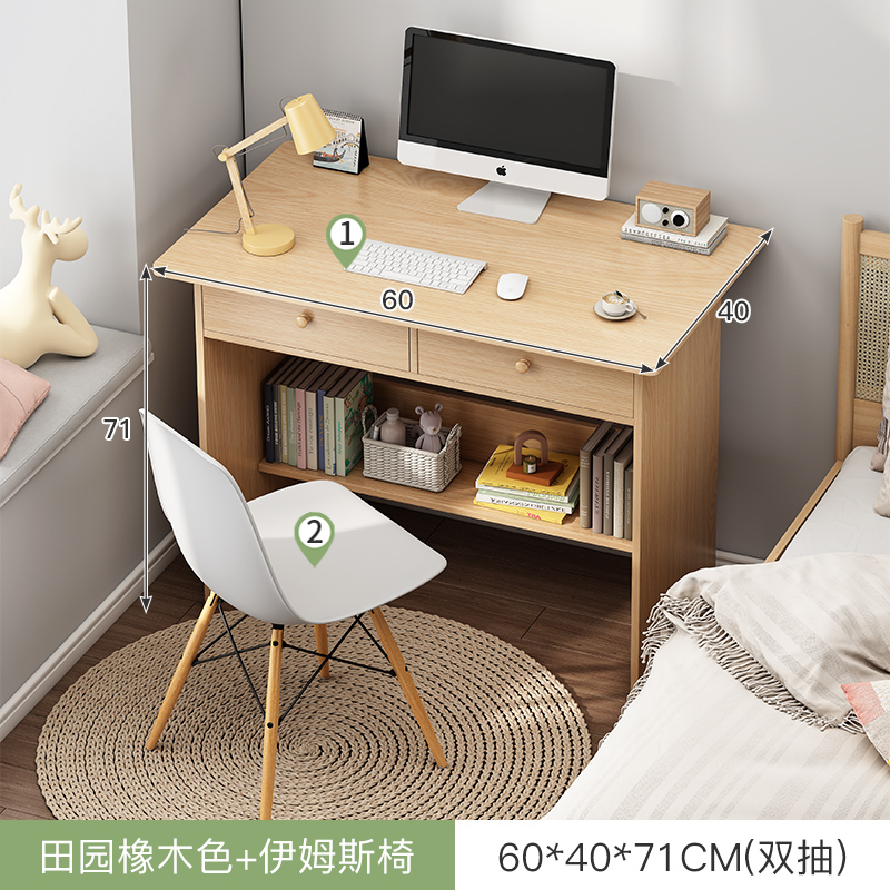 • (桌椅一套)60cm田园橡木双抽 收货晒图再退10元!