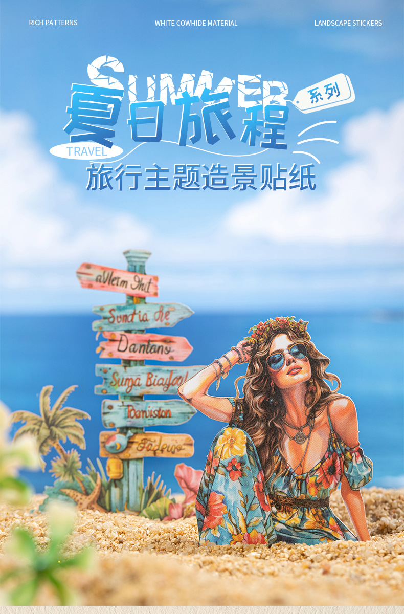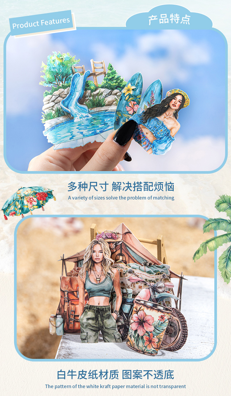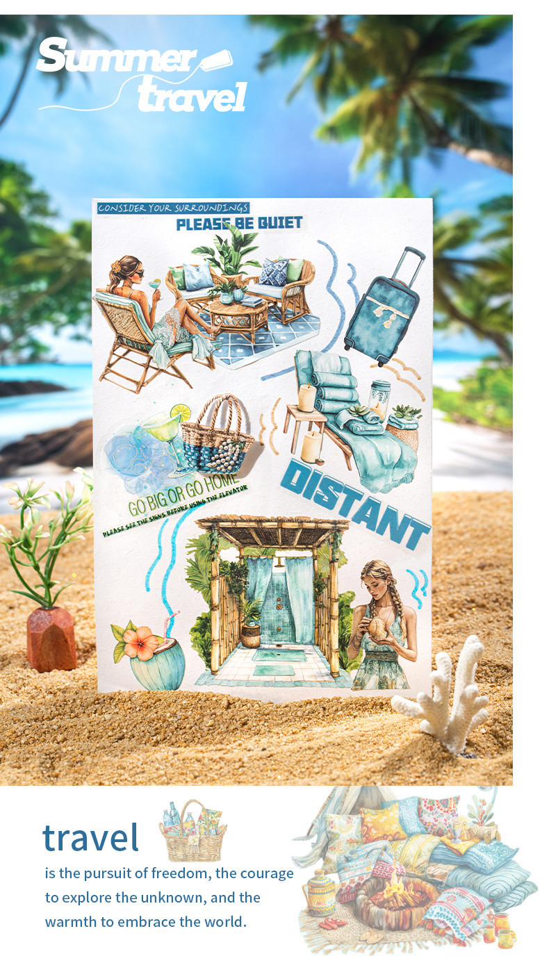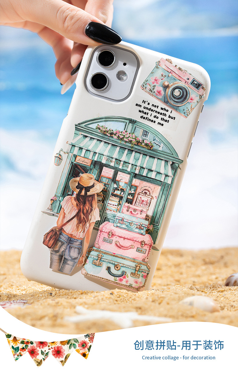 여름 여행 여행 풍경 스티커 캐릭터 휴가 흰색 가장자리 없음 핸드북 장식 절단 콜라주 재료 종이스토어 가기