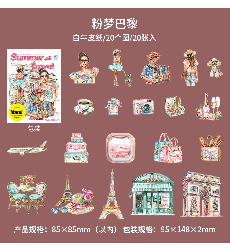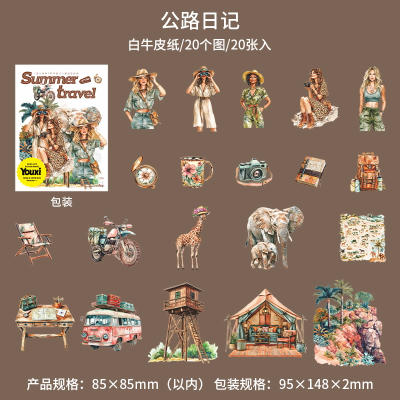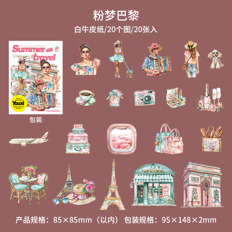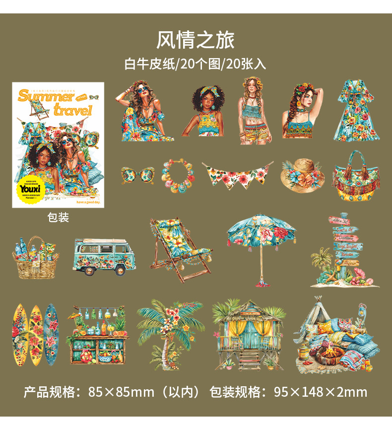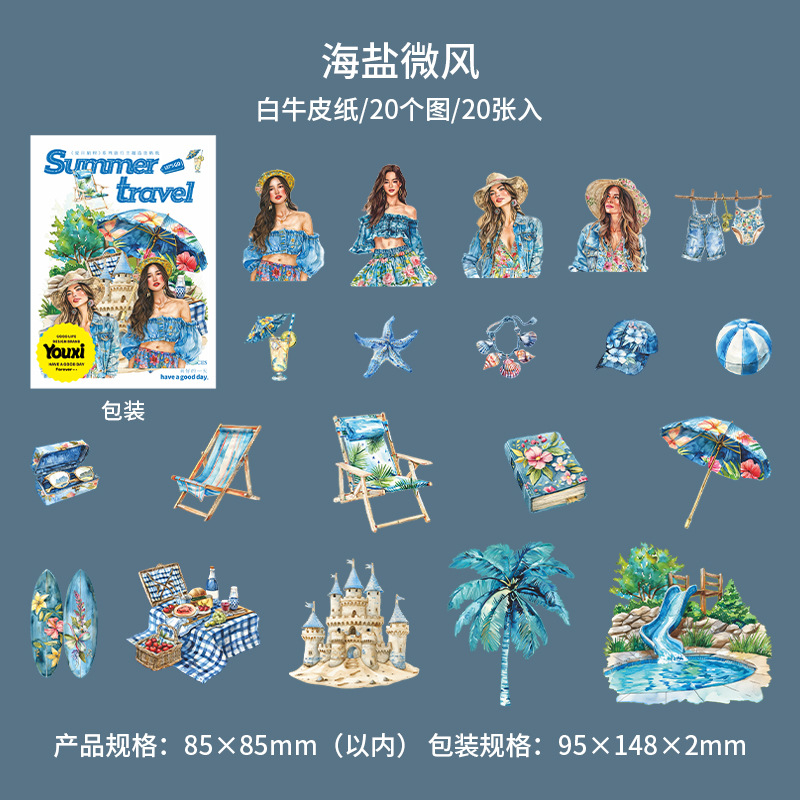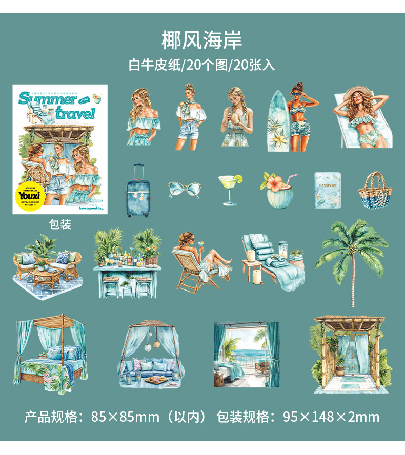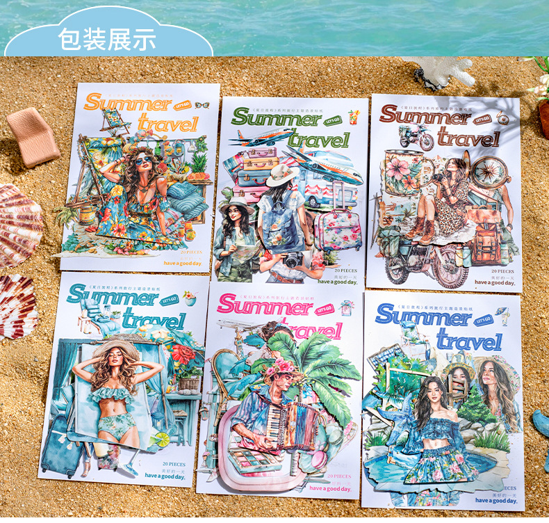 여름 여행 여행 풍경 스티커 캐릭터 휴가 흰색 가장자리 없음 핸드북 장식 절단 콜라주 재료 종이스토어 가기