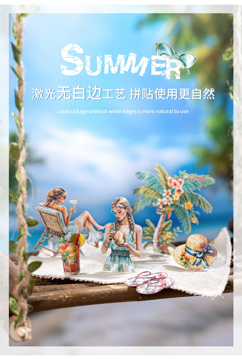 여름 여행 여행 풍경 스티커 캐릭터 휴가 흰색 가장자리 없음 핸드북 장식 절단 콜라주 재료 종이