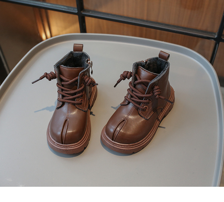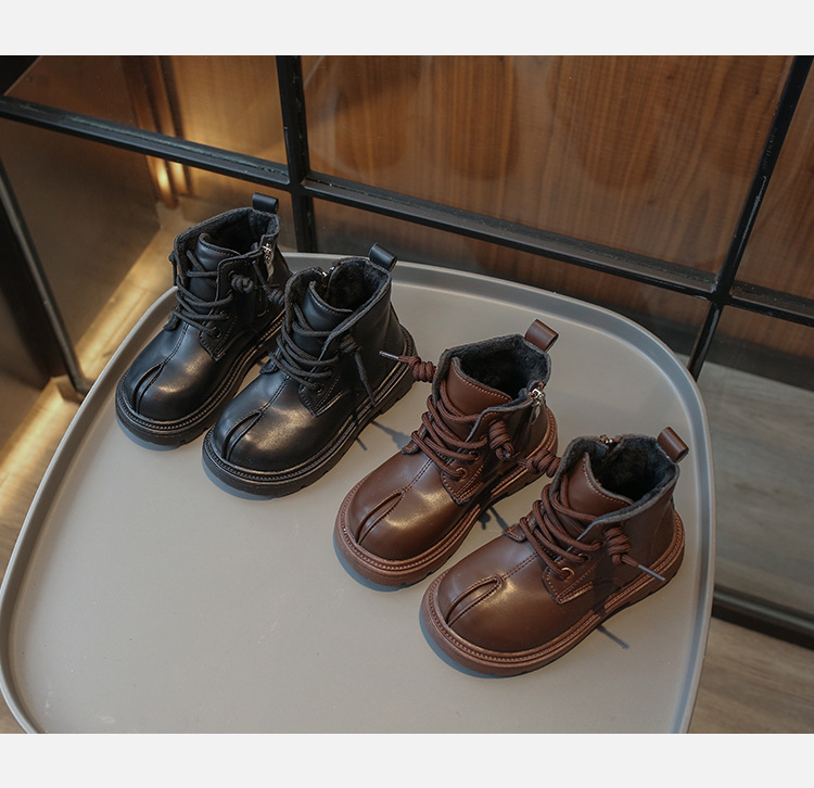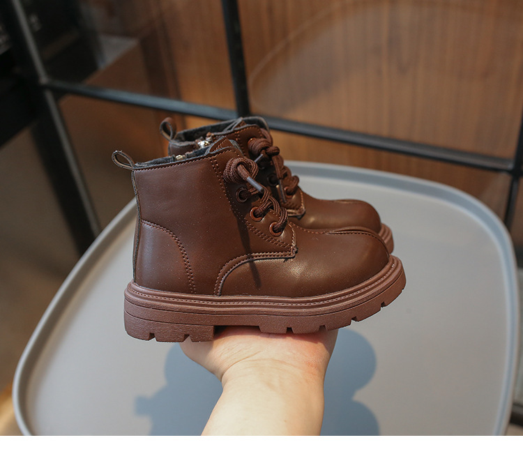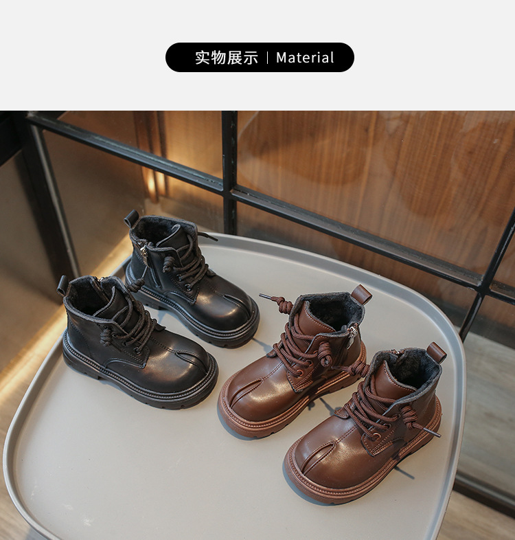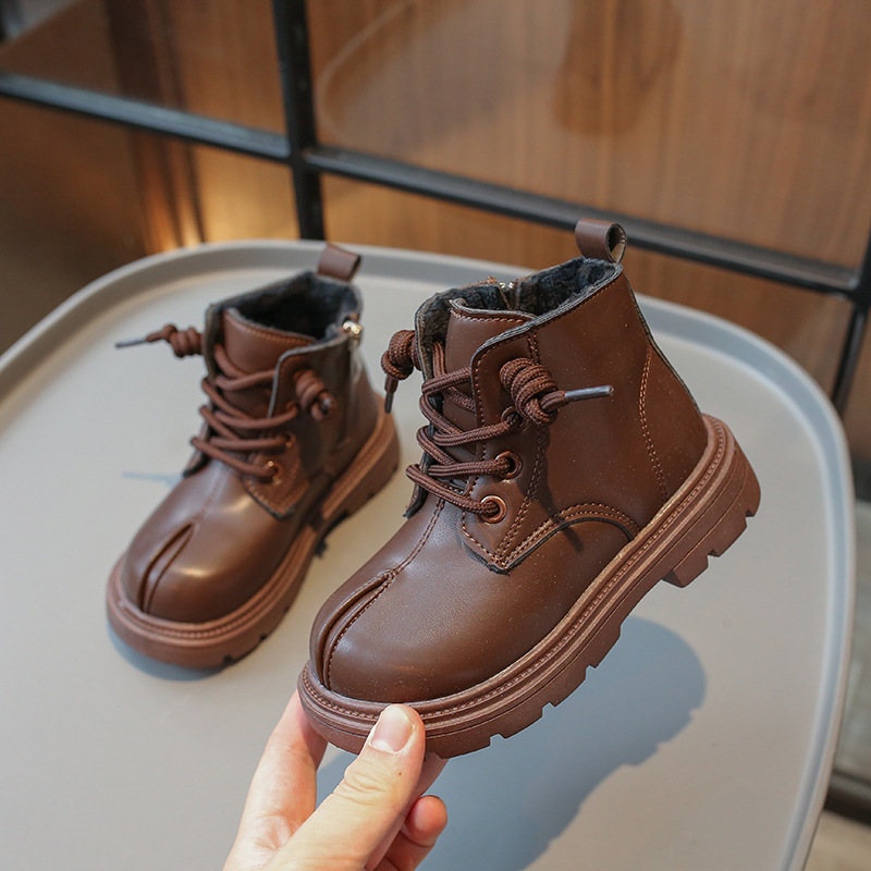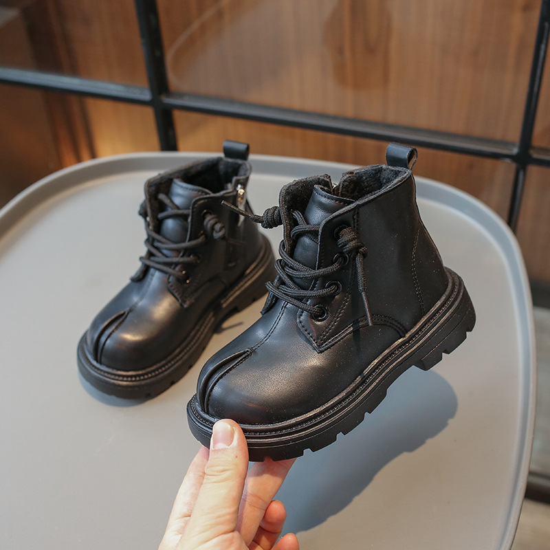 소년 마틴 부츠 2024 한국어 버전 가을 새로운 어린이 벨벳 복고풍 짧은 부츠 소녀 부드러운 밑창 가죽 부츠스토어 가기