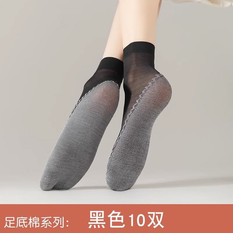 여성용 짧은 스타킹, 얇은 검정색 봄 여름 여성용 초박형 투명 살색 안티 걸림 실크 크리스탈 짧은 스타킹 도매스토어 가기