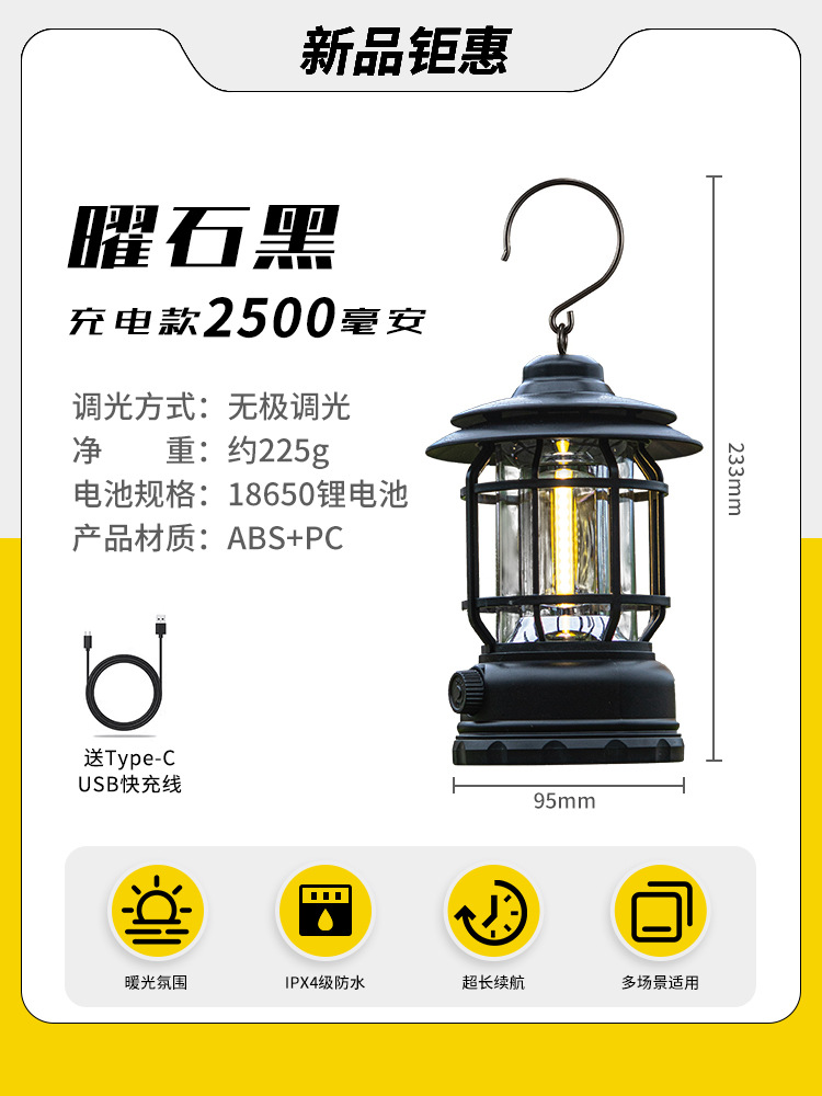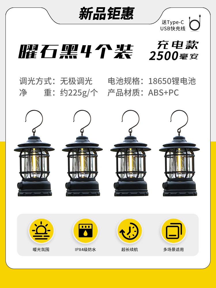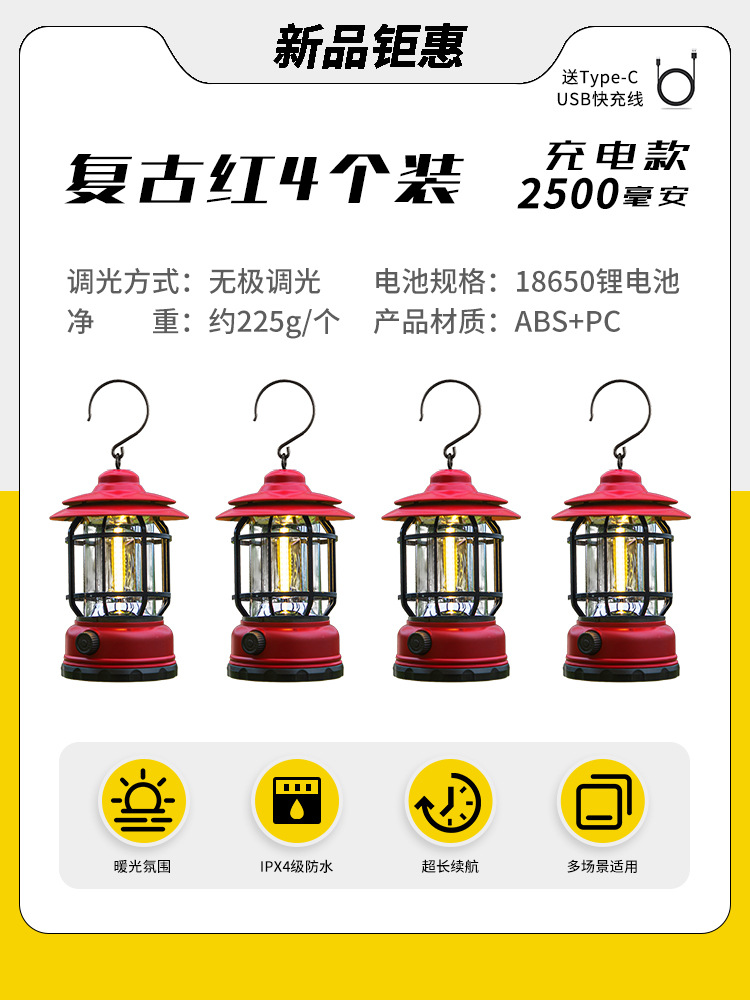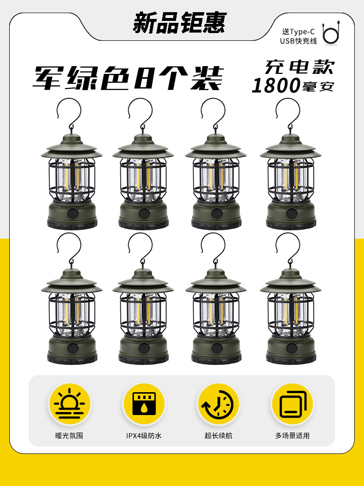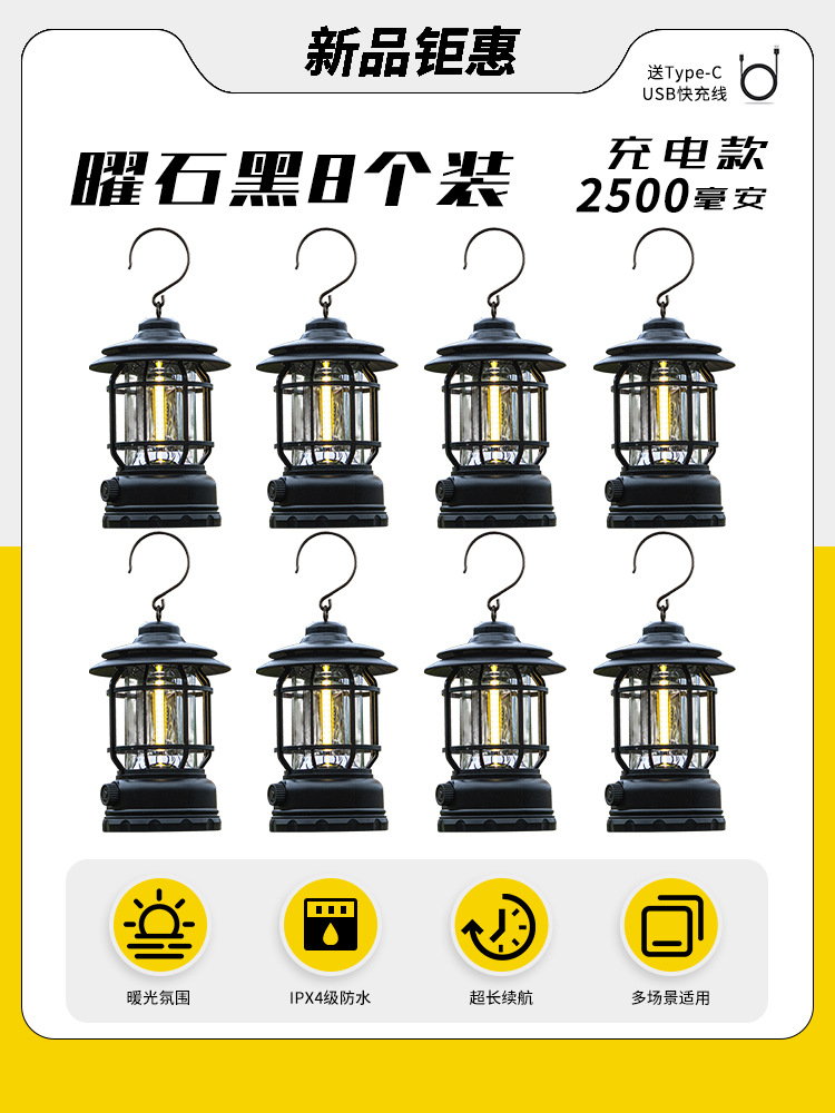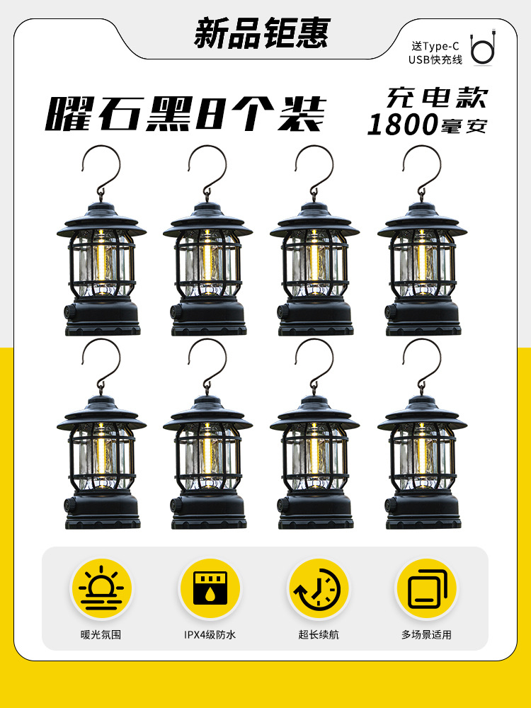 야외 캠핑 조명, 매우 긴 배터리 수명, 충전식 조명, 캠핑 조명, 말 조명, 캠프 분위기 조명, 다기능 텐트 조명