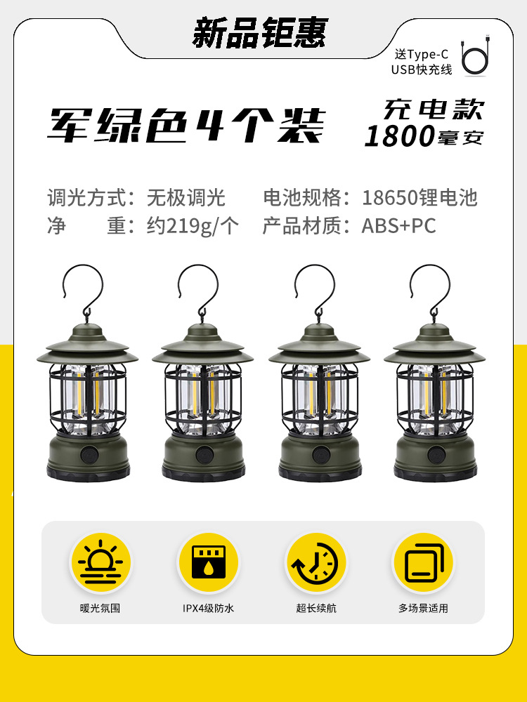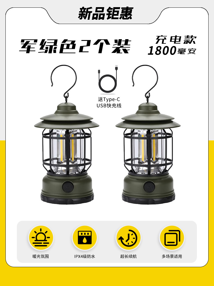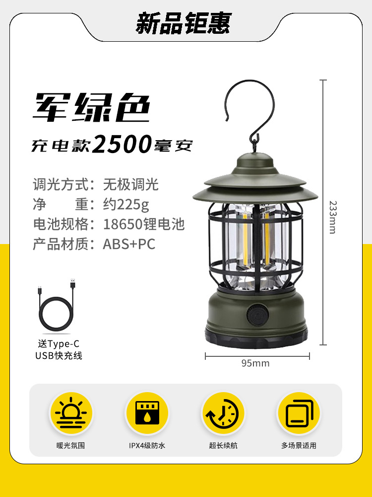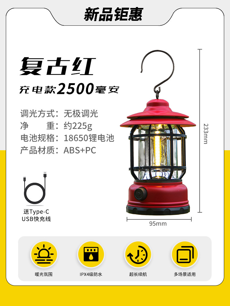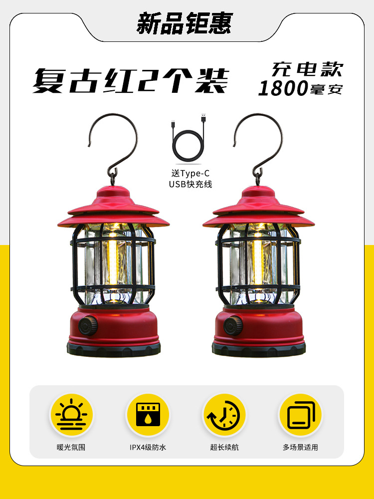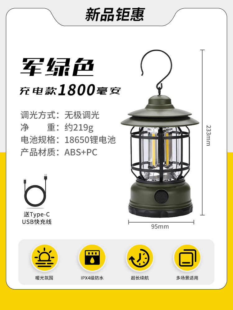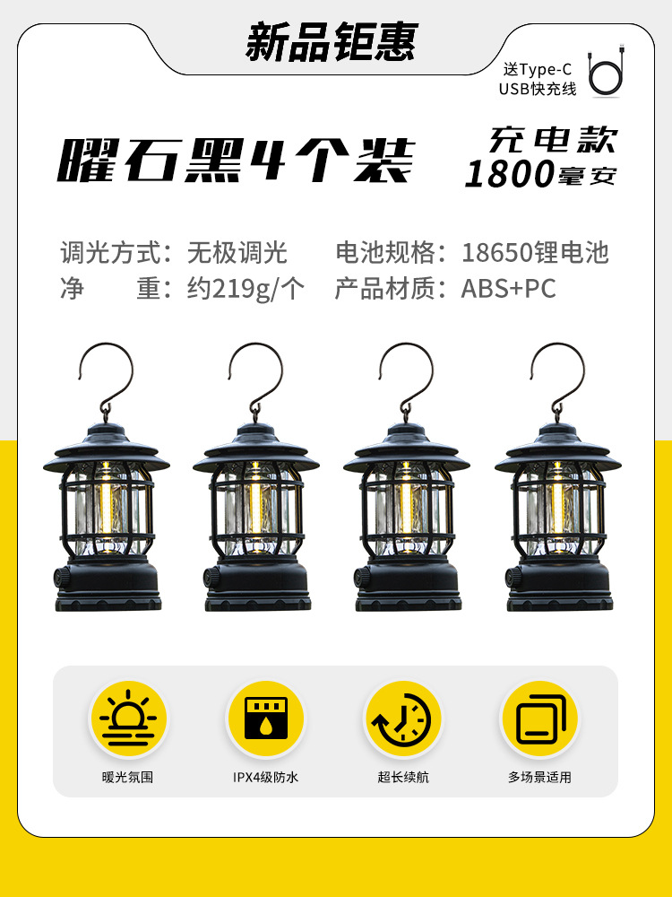 야외 캠핑 조명, 매우 긴 배터리 수명, 충전식 조명, 캠핑 조명, 말 조명, 캠프 분위기 조명, 다기능 텐트 조명