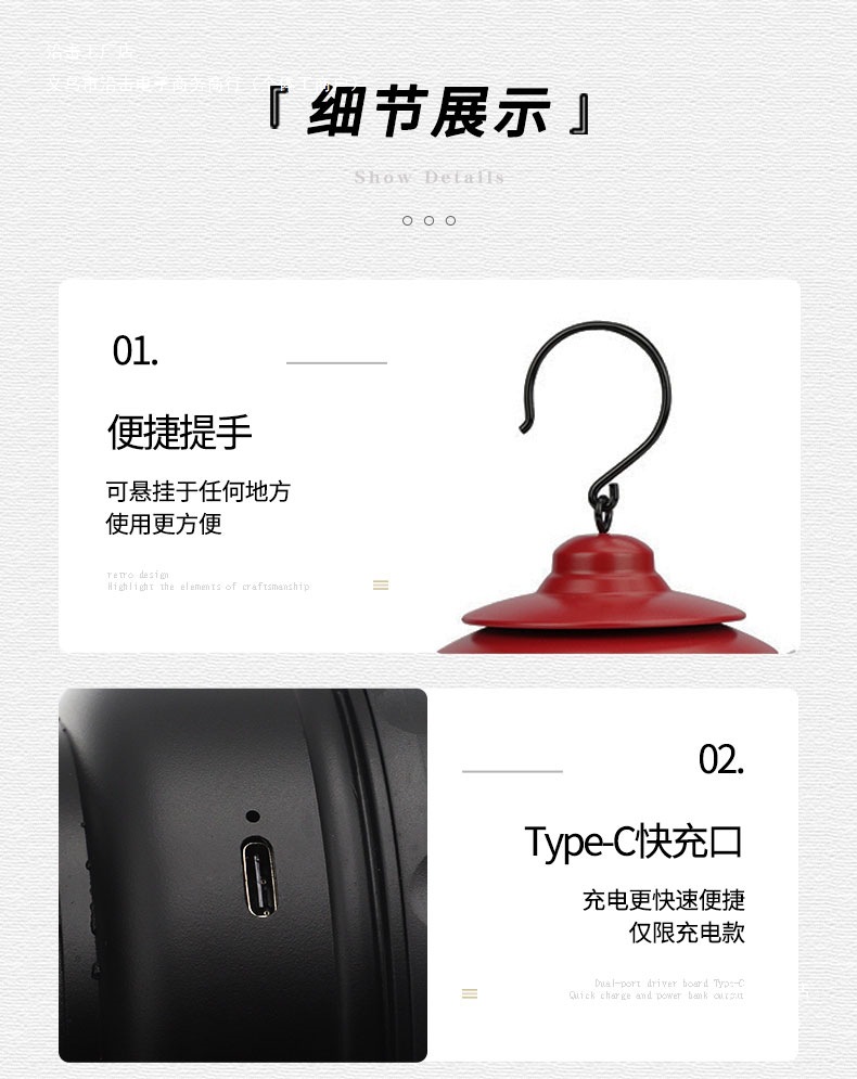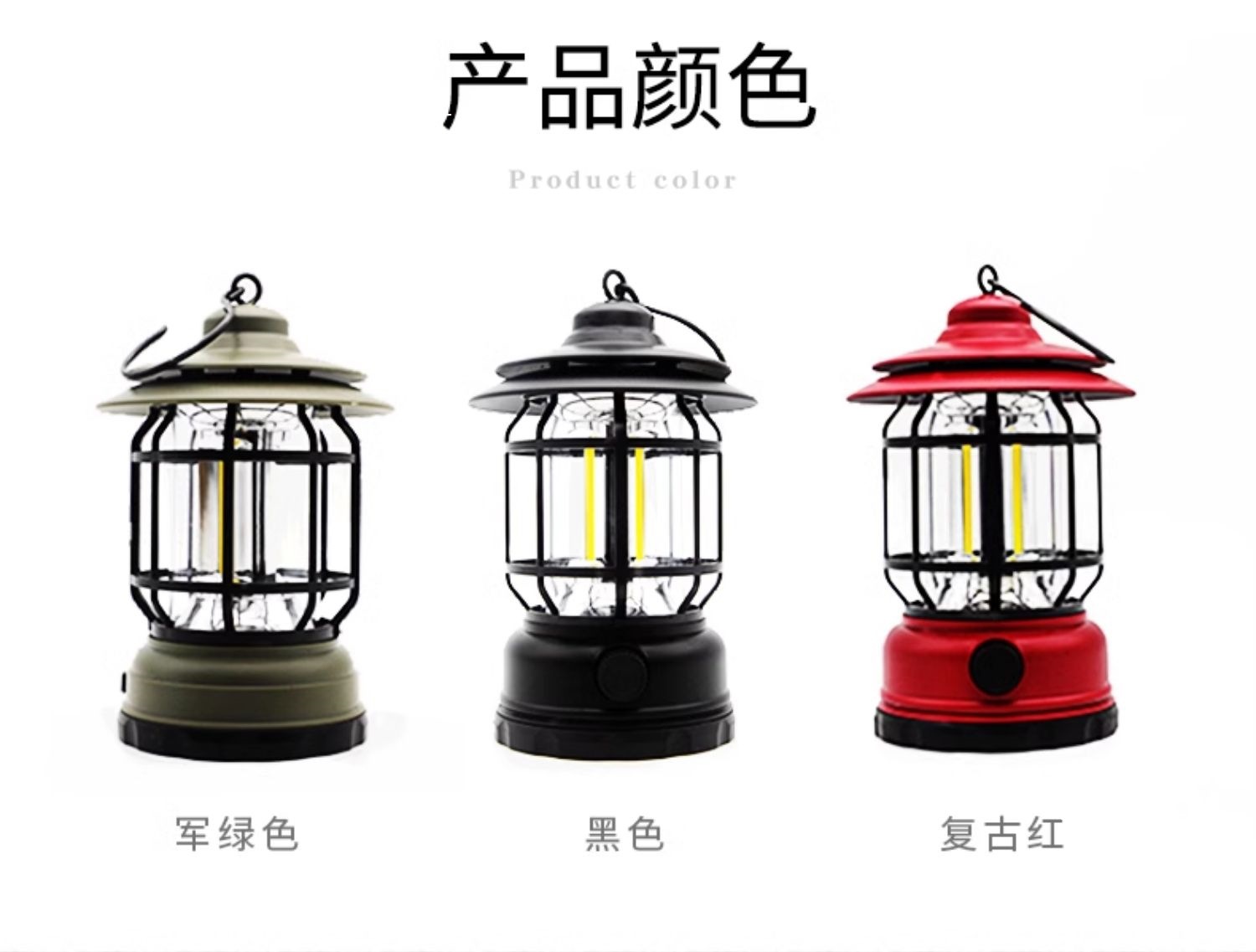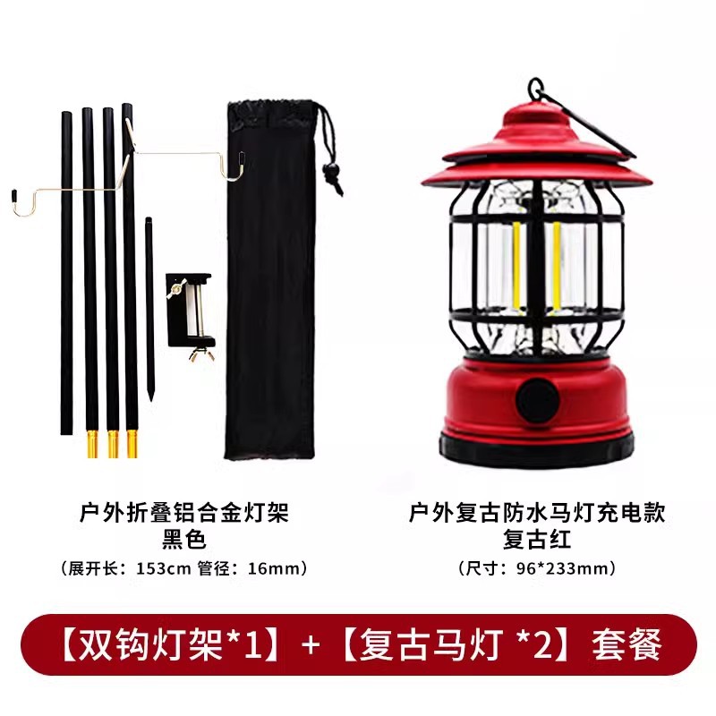 • 더블 후크 램프 스탠드 + 레트로 레드 말 랜턴 충전식 모델