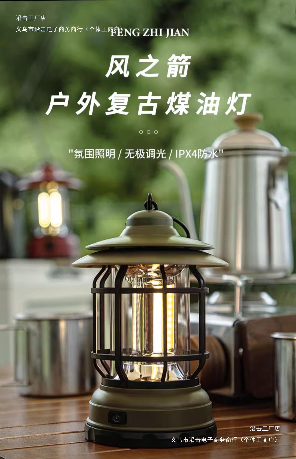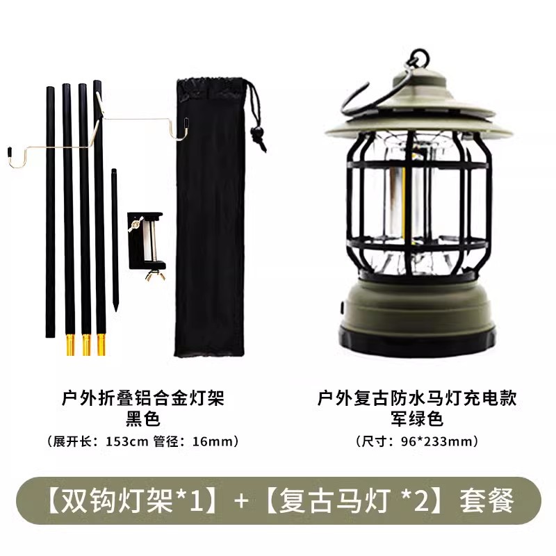 • 더블 후크 램프 스탠드 + 밀리터리 그린 말 랜턴 충전식 모델