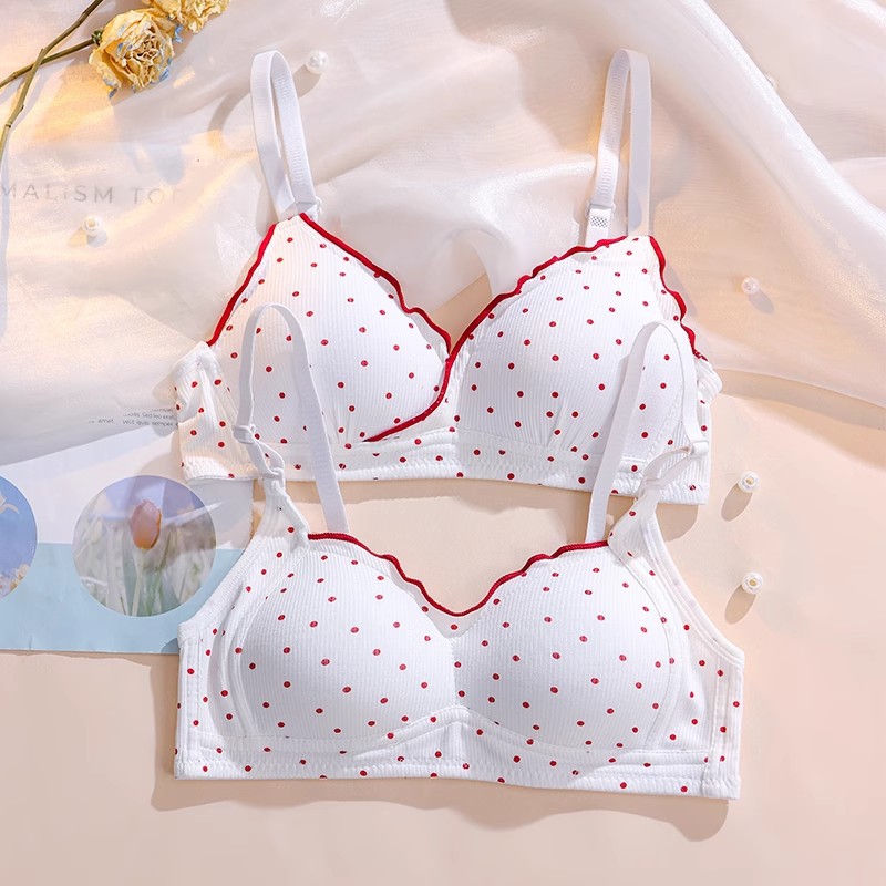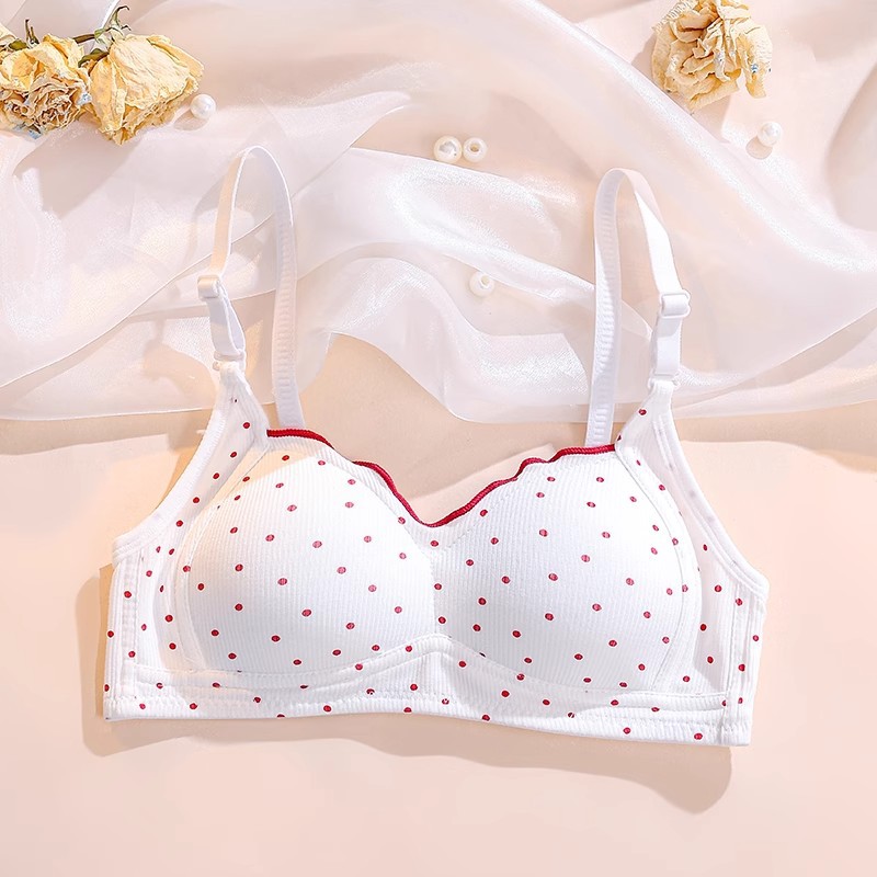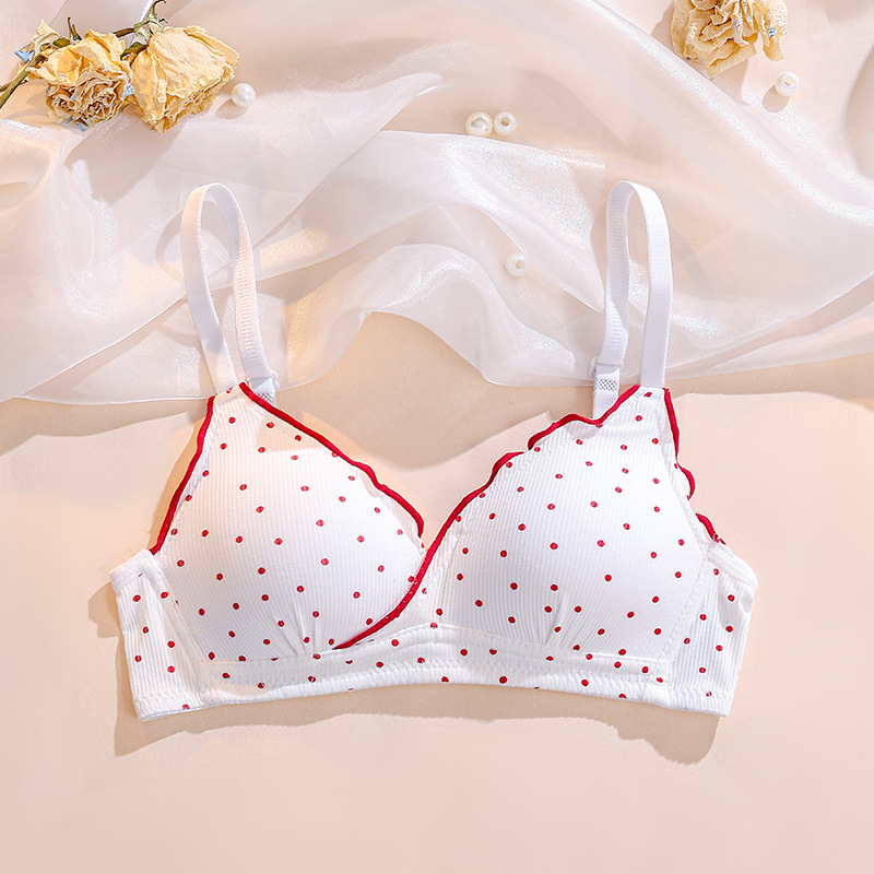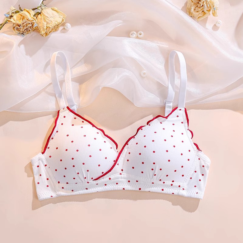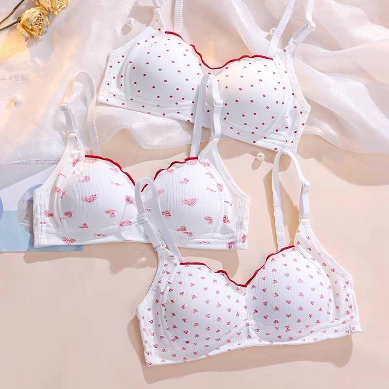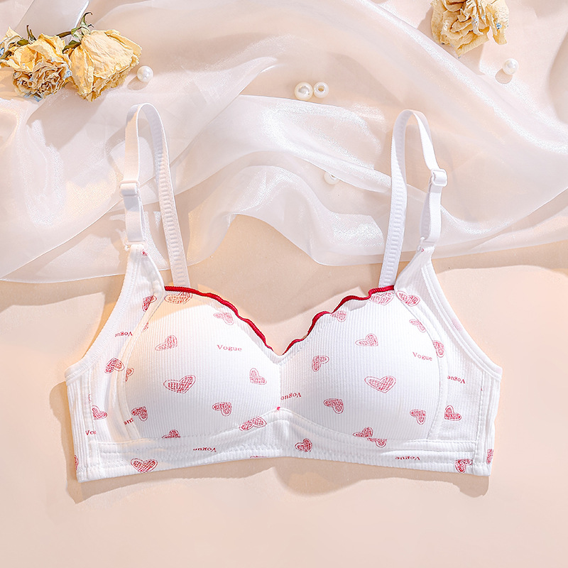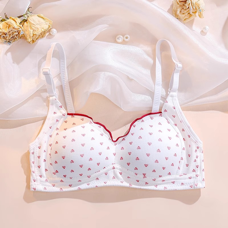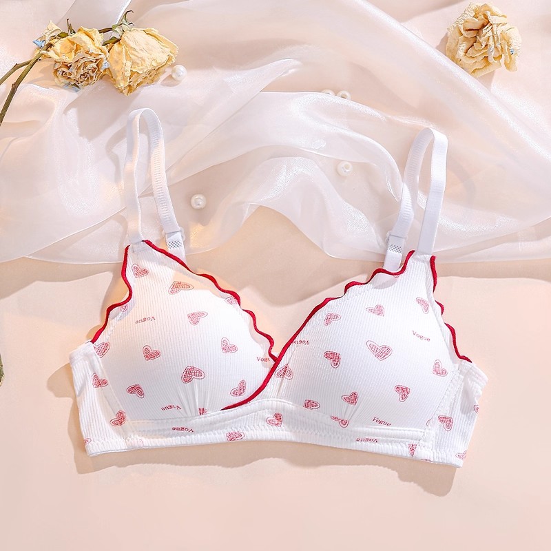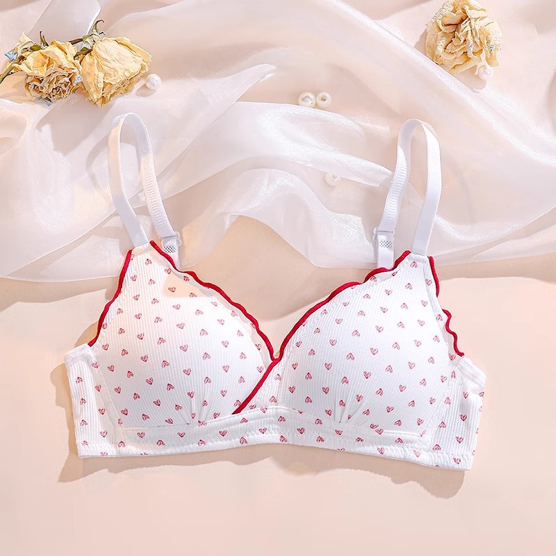 여성용 달콤한 러브 속옷, 와이어 없음, 작은 가슴, 푸쉬업, 얇은, 통기성 삼각 컵 브라, 학생 및 고등학생용스토어 가기
