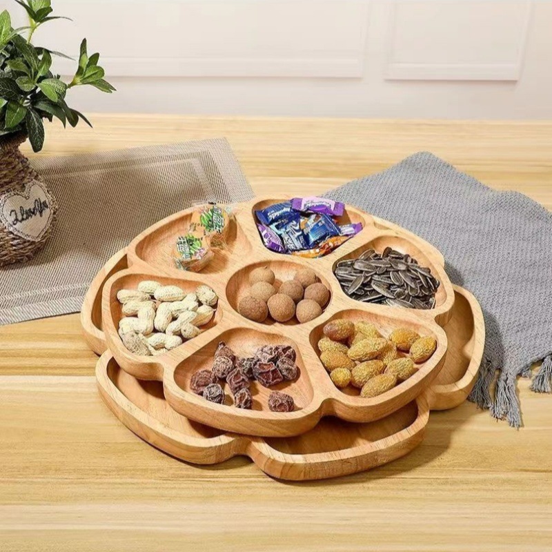 나무 스낵 트레이 과일 스낵 트레이 가정용 둥근 단단한 나무 말린 과일 사탕 트레이