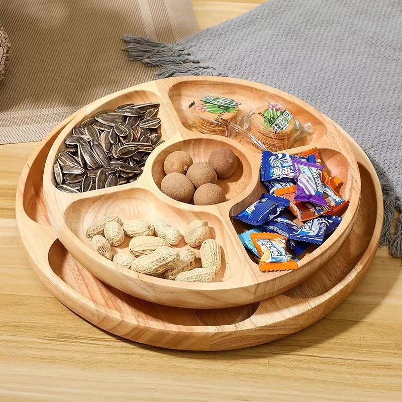 나무 스낵 트레이 과일 스낵 트레이 가정용 둥근 단단한 나무 말린 과일 사탕 트레이스토어 가기