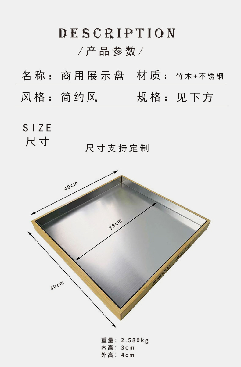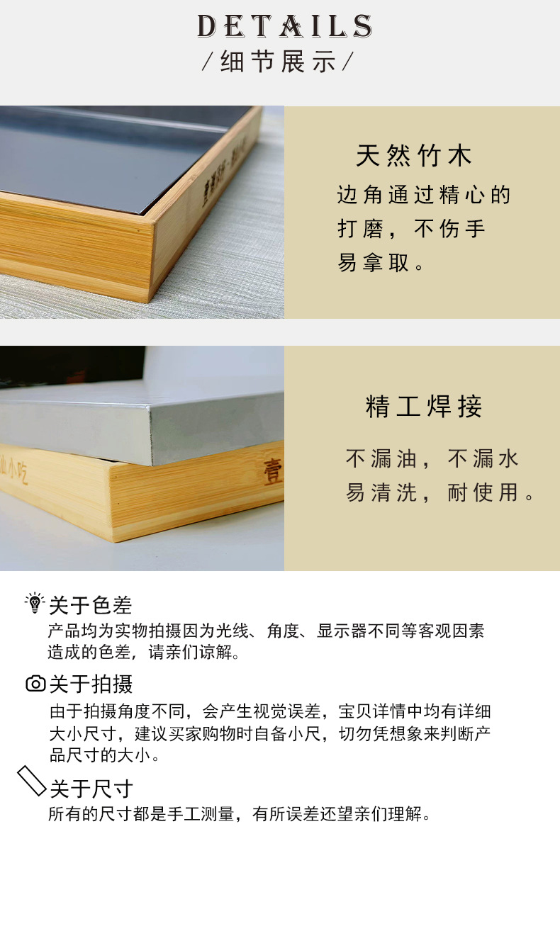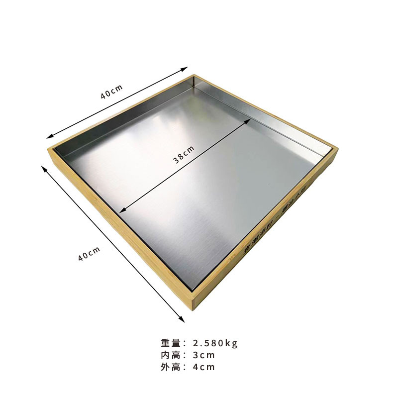 스테인레스 스틸 사각 접시, 초대형 조리 접시, 두꺼운 사각형 대나무 바닥 트레이, 상업용 201 스테인레스 스틸 접시, 캔틴스토어 가기