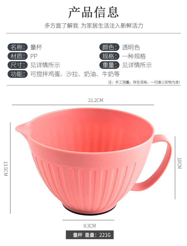 국경 간 인기 판매 북유럽 뾰족한 입 대용량 PP 측정 컵 가정용 온도 방지 손잡이 샐러드 믹싱 베이킹 계란 그릇