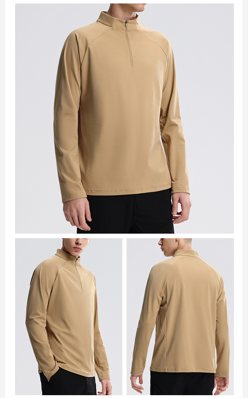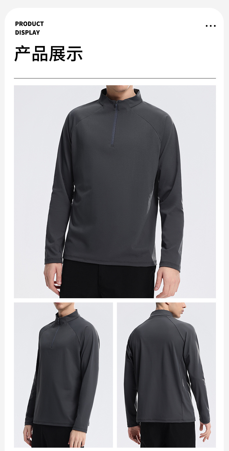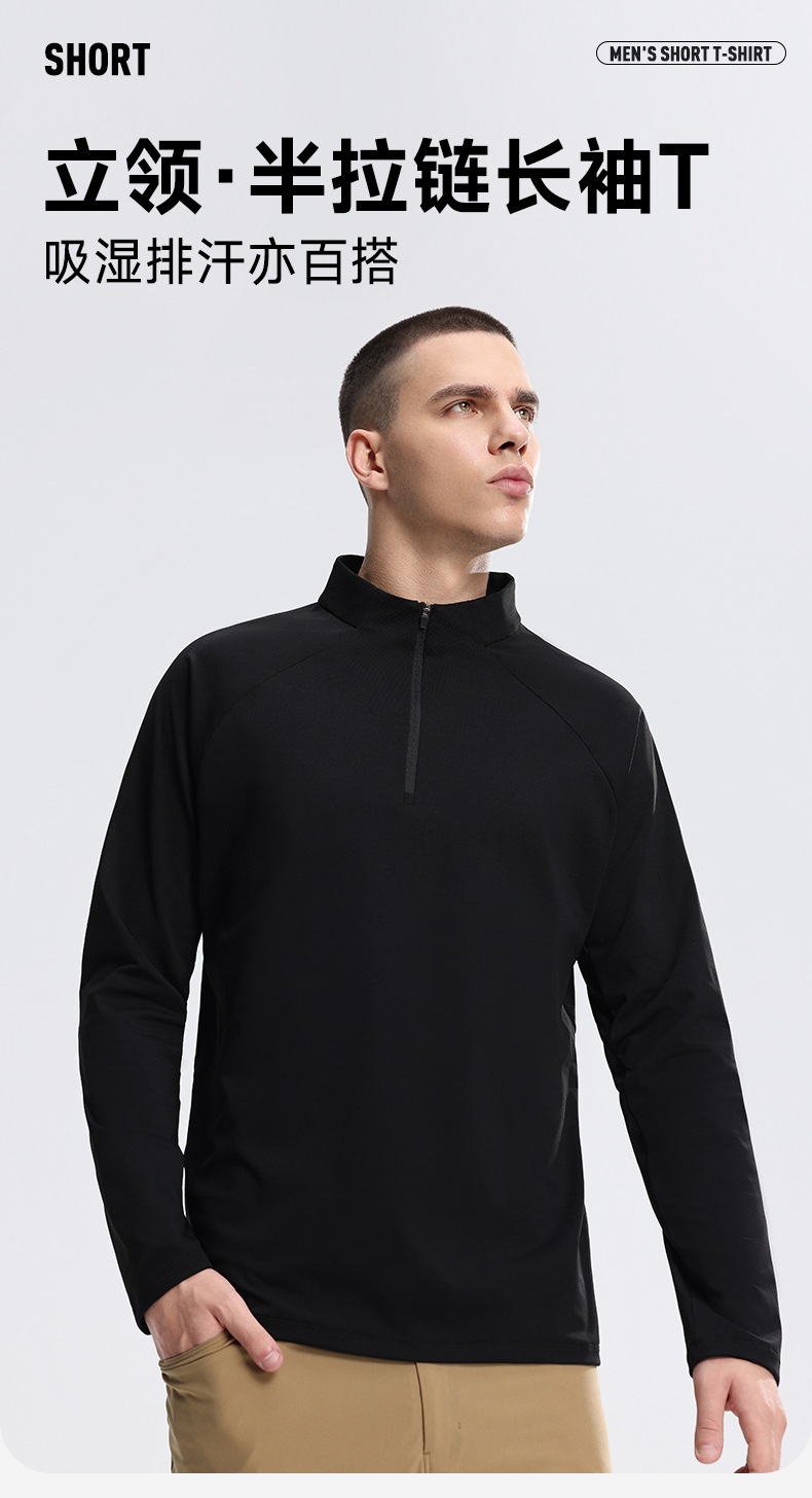 디자인과 동일한 야외용 봄가을 남성용 스탠드 칼라 반지퍼 긴팔 티셔츠, 속건성 고탄력 피트니스 스포츠웨어스토어 가기